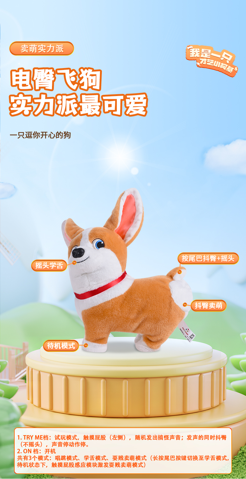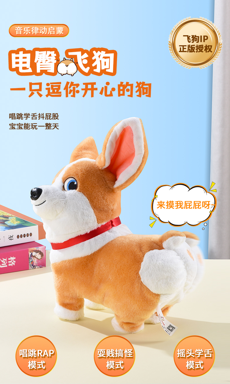 【趣巢】电臀飞狗玩具正版授权抖臀耍贱搞怪摇头学舌毛绒潮玩电动玩偶