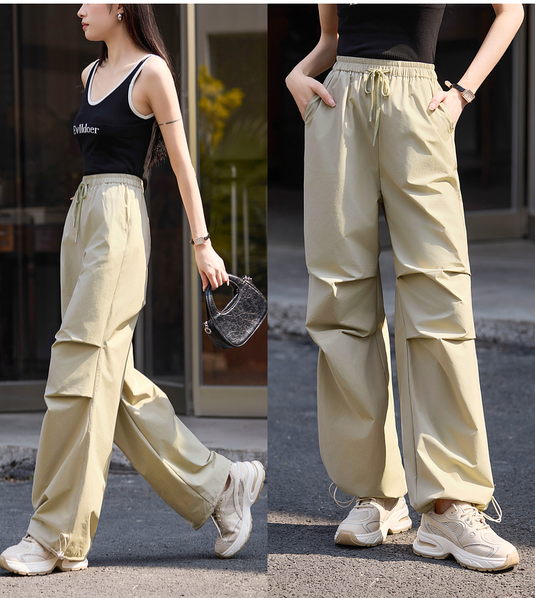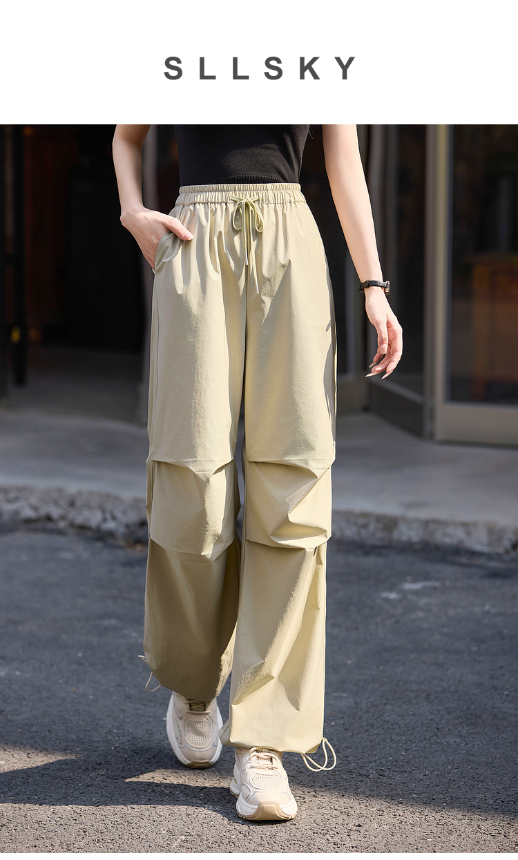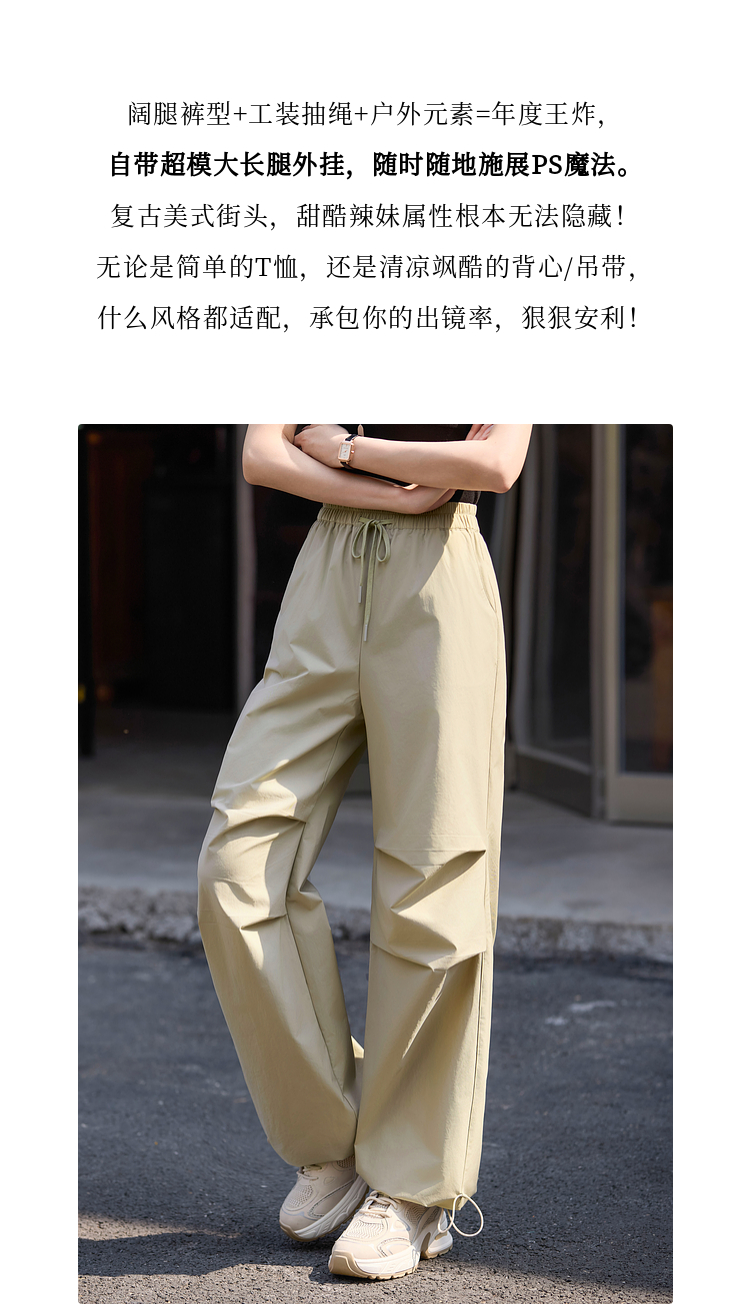 【专属特价】熙世界户外工装伞兵裤女夏季薄款2025年新款休闲运动阔腿直筒裤子