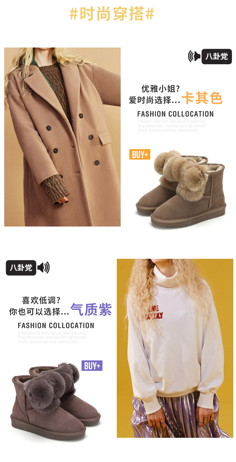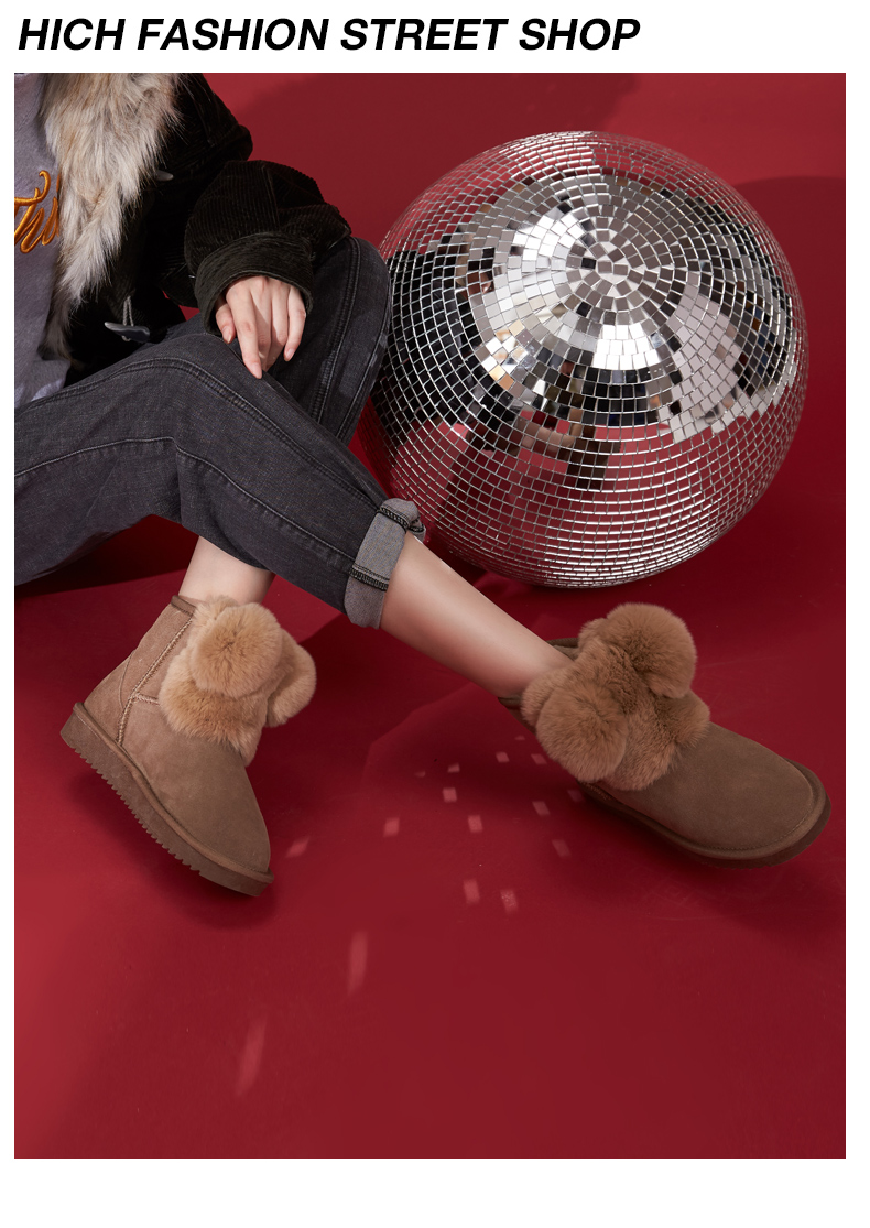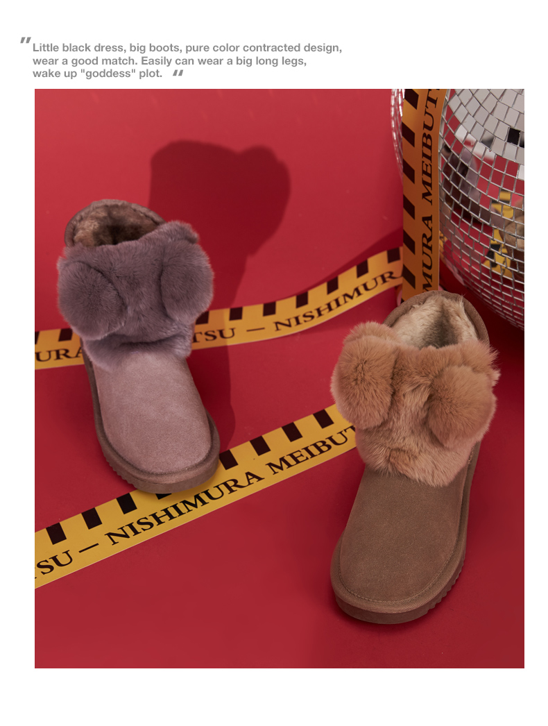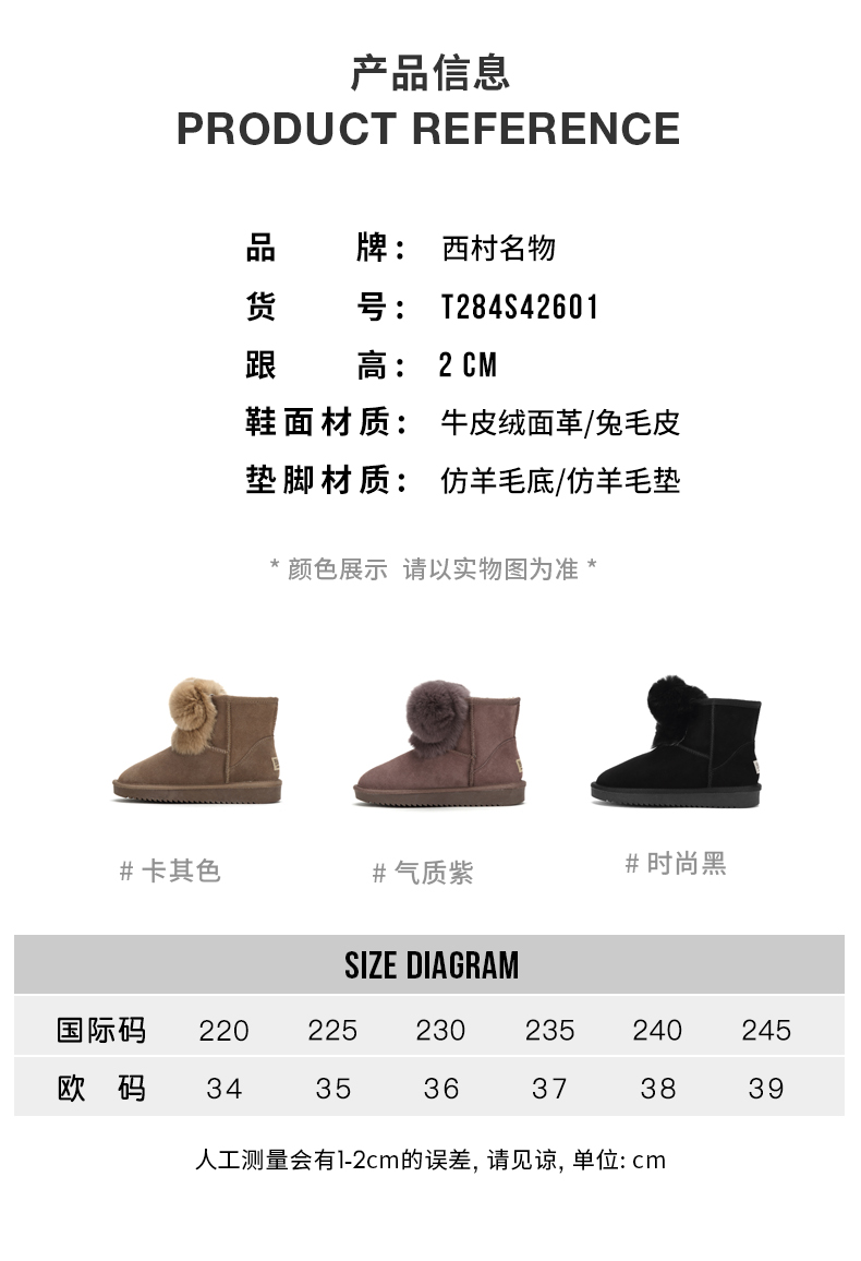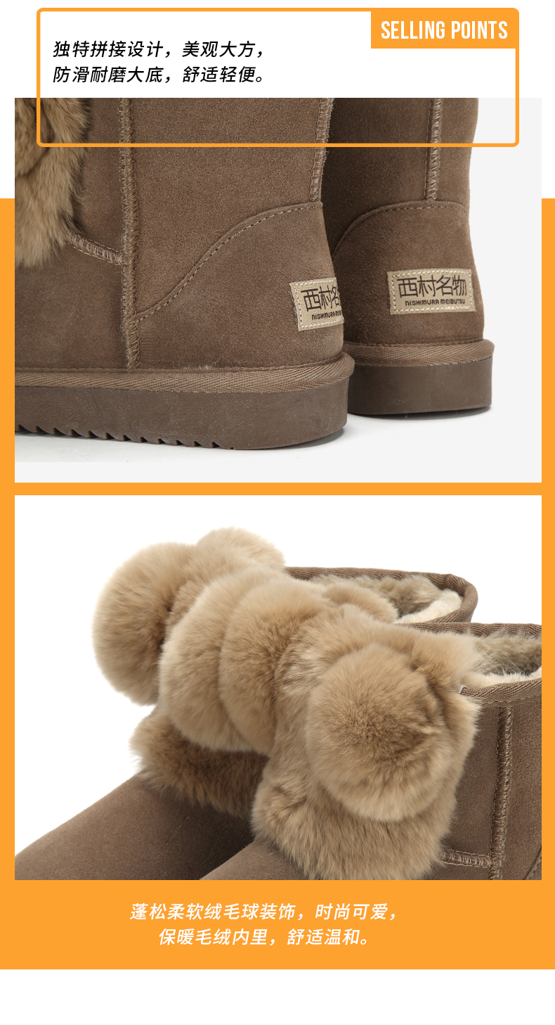 西村名物加厚雪地靴秋冬新款毛毛女士短靴平底耐磨防滑T284S42601