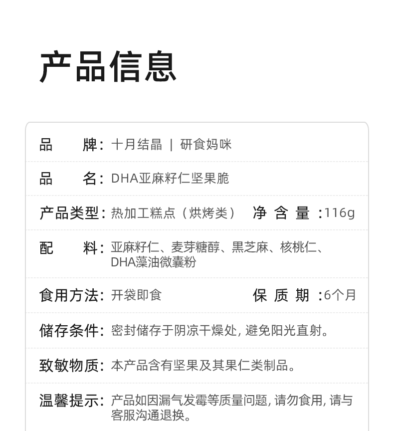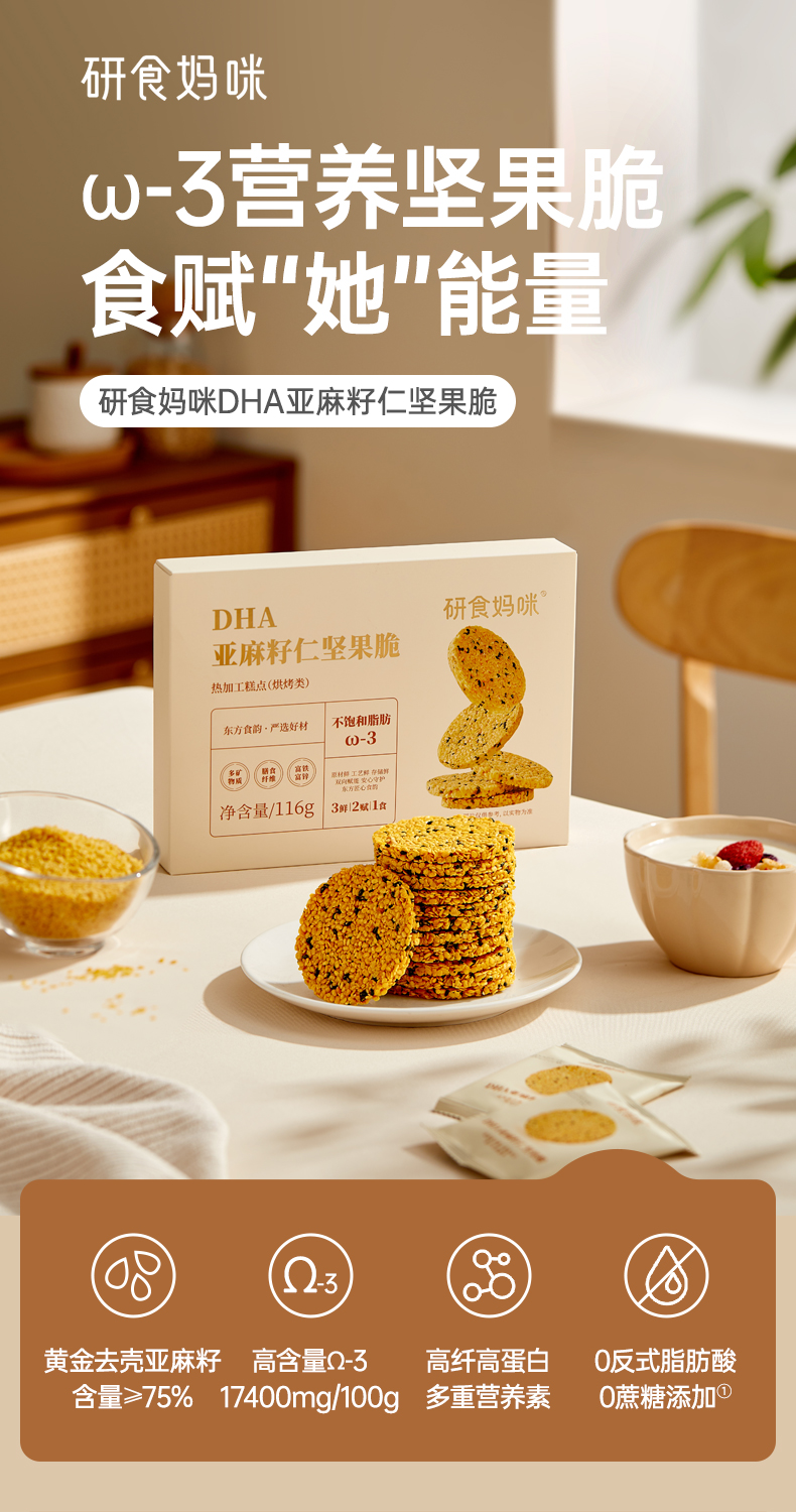 研食妈咪亚麻籽仁坚果脆DHA海藻油孕妇零食孕期营养小吃