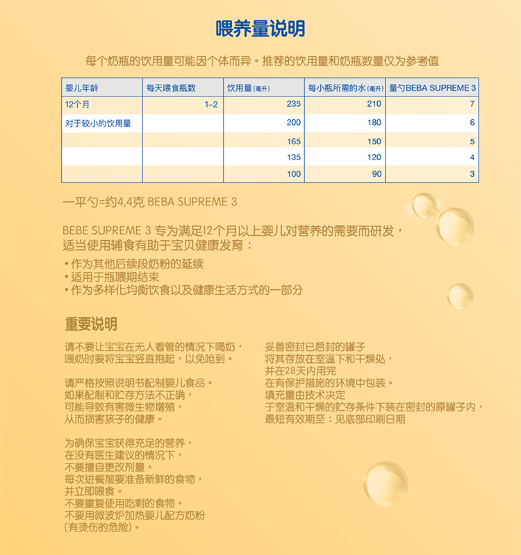 【跨境进口】 3段| 新版6种HMO | 泸州仓韵达发 效期27.1| 德国雀巢NestléBEBA版SUPREME婴幼儿奶粉3段 830g/罐| 报关后不支持退换货(每单限拍6罐 超出需分开下单)