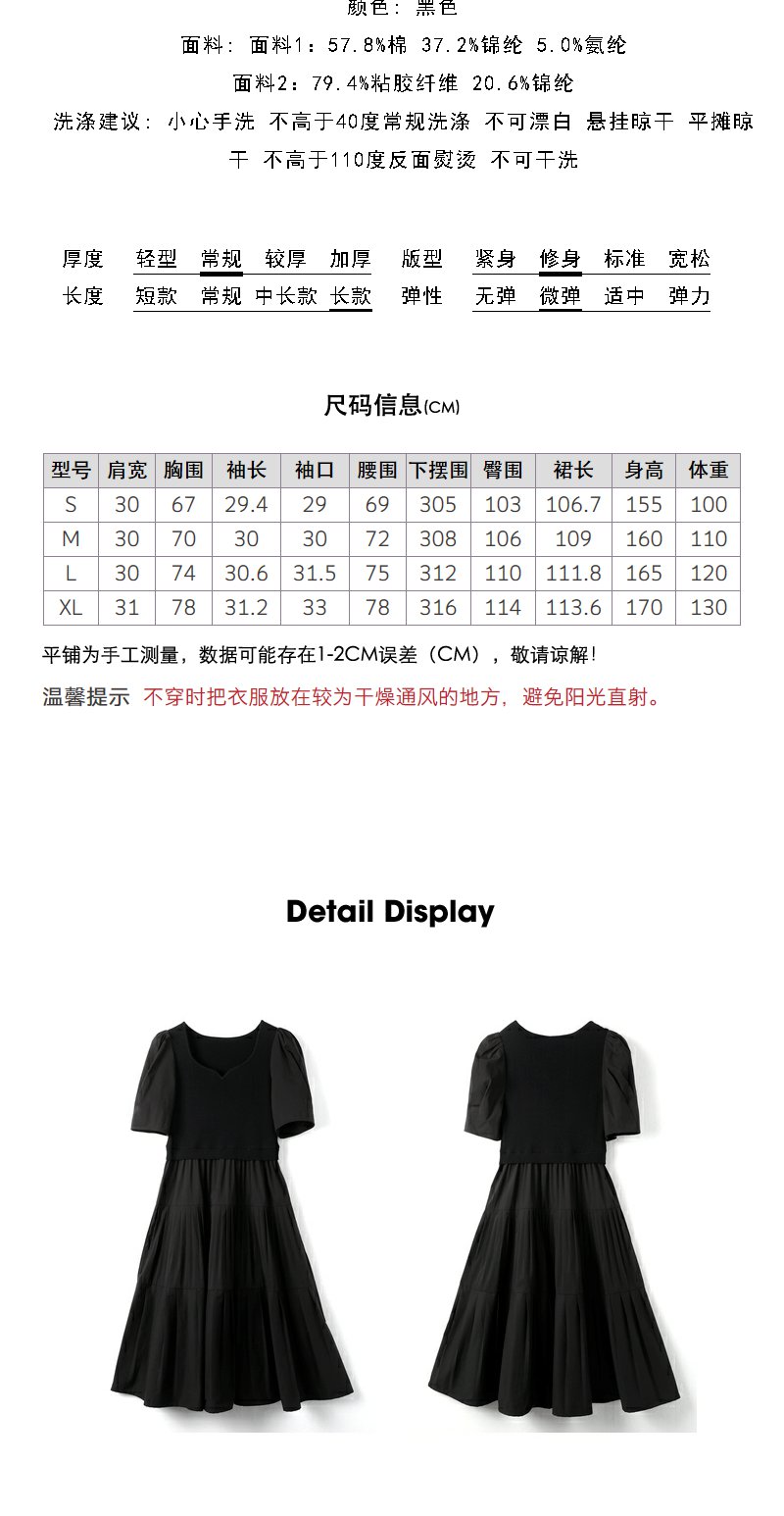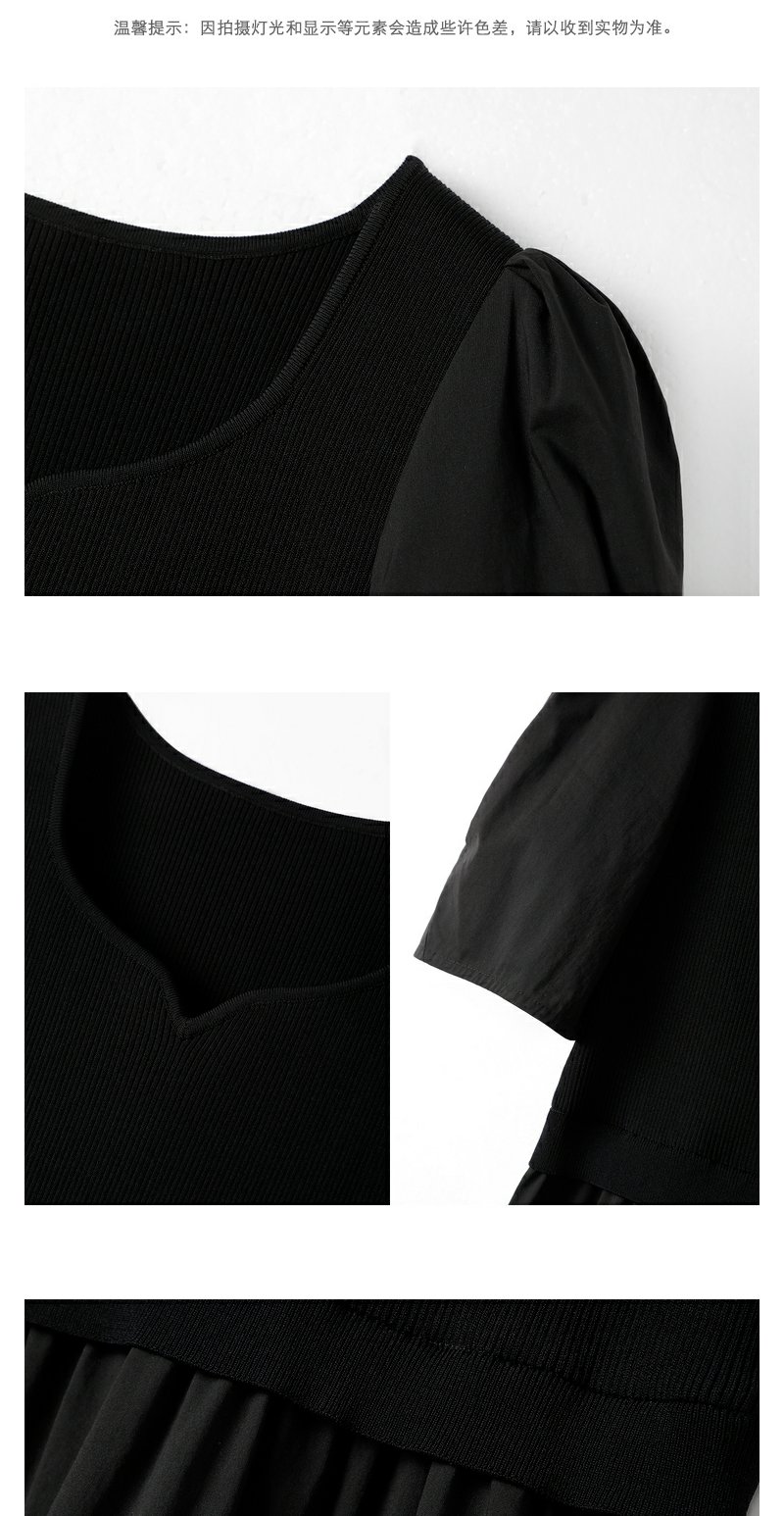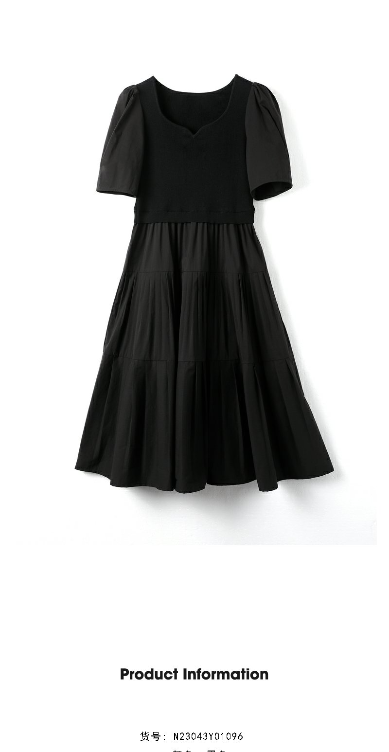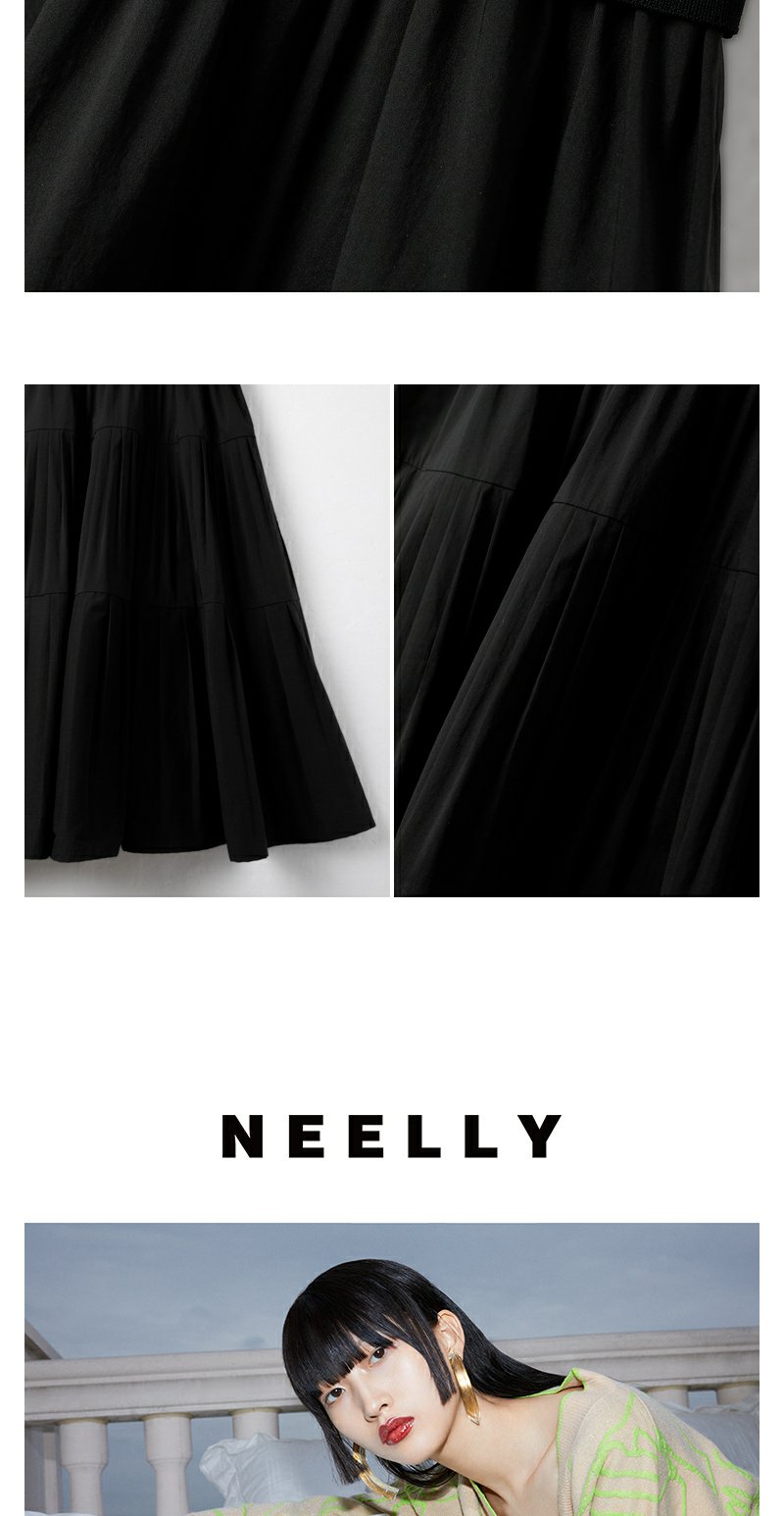 NEELLY纳俪商场同款针织拼接连衣裙女泡泡袖中长款A字大摆裙夏季N23043Y01096