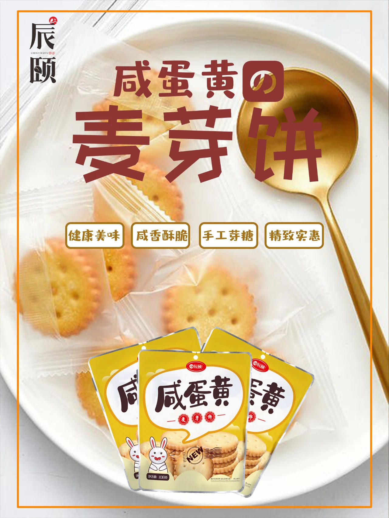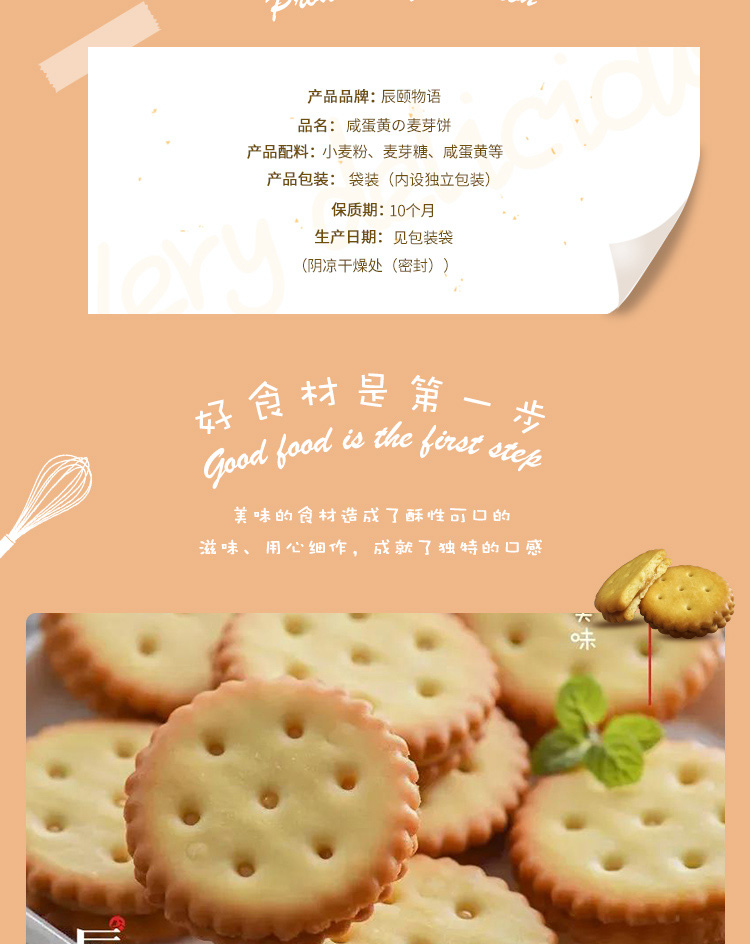 麦芽饼干咸蛋黄夹心8袋108g现做网红日式小圆点零食包邮