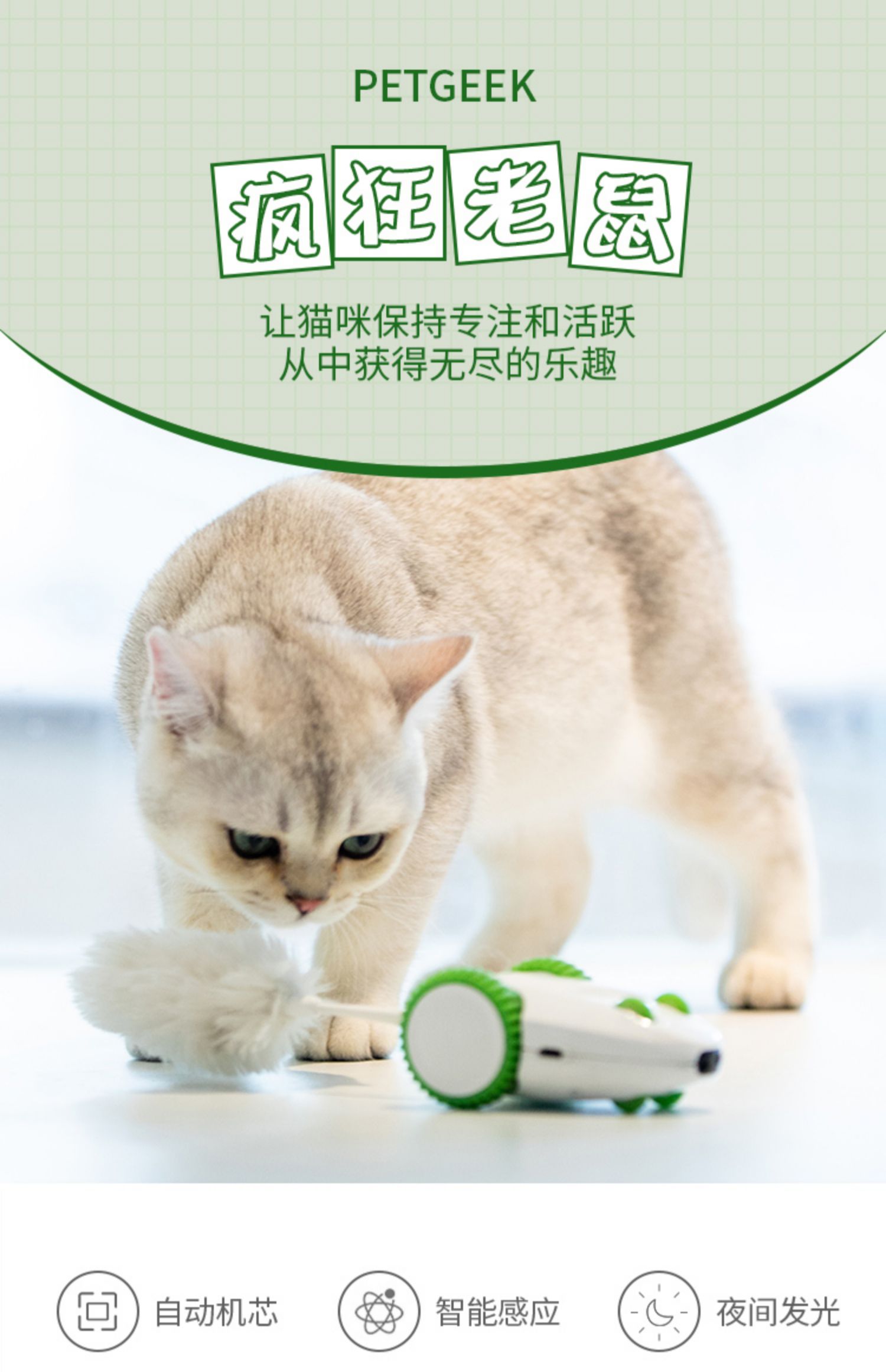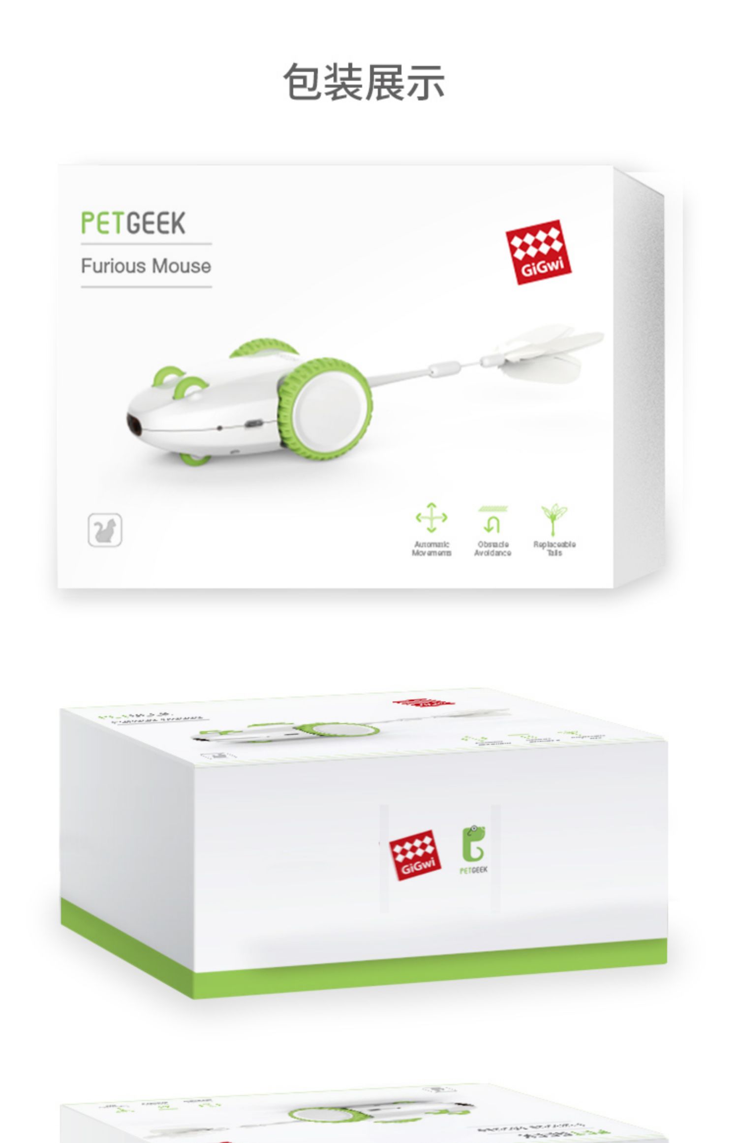 GiGwi贵为疯狂老鼠猫咪用品发声发光仿真老鼠玩具毛绒羽毛猫玩具