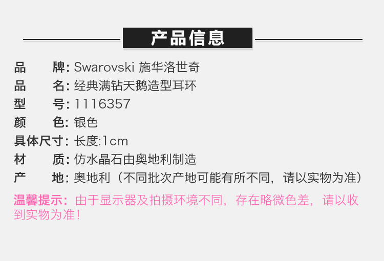 Swarovski/施华洛世奇 经典满钻天鹅造型耳环 1116357