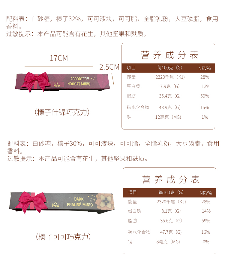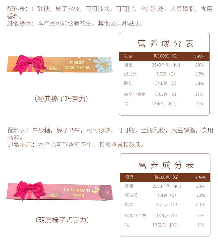德国Viba榛子系列巧克力30g 经典榛子/双层榛子/榛子可可/榛子什锦小巧造型携带方便 044319/044318/044320/044322
