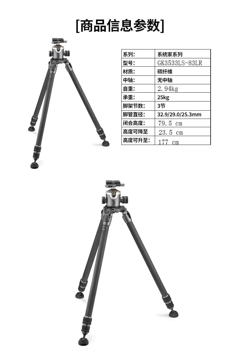 狼族优选丨捷信(GITZO)系统家无中轴拍鸟摄像摄影碳纤维三脚架带球型云台 GK3533LS-83LR / GK4543LS-83LR / GK5543LS-83LR套装