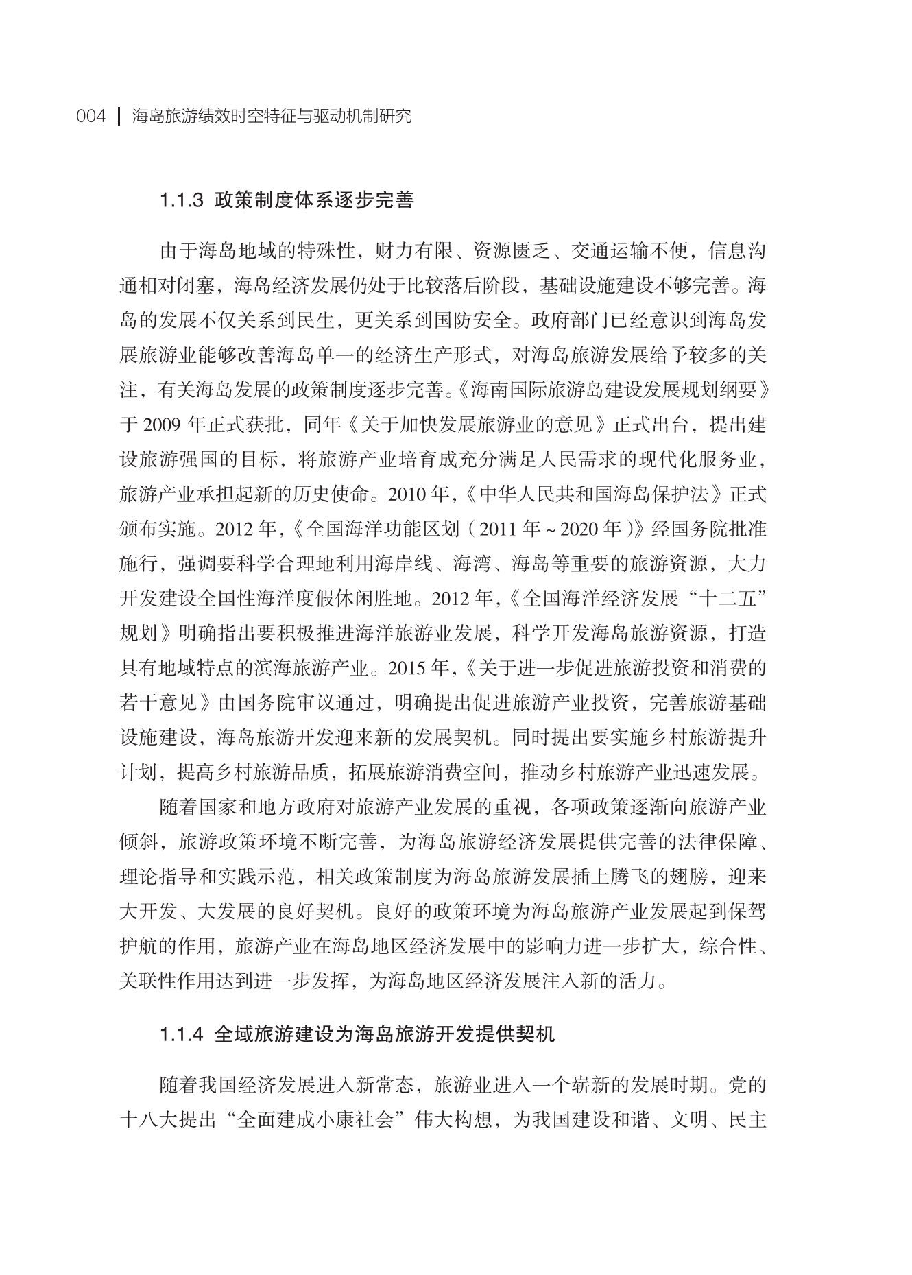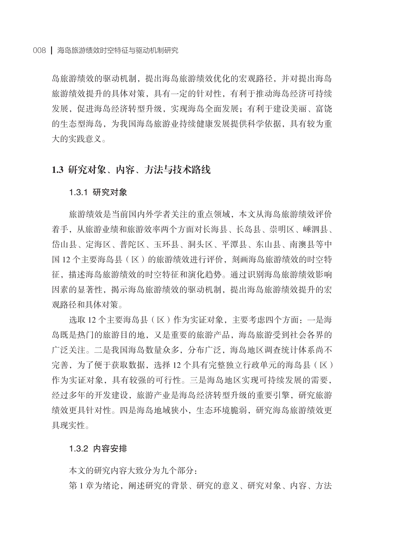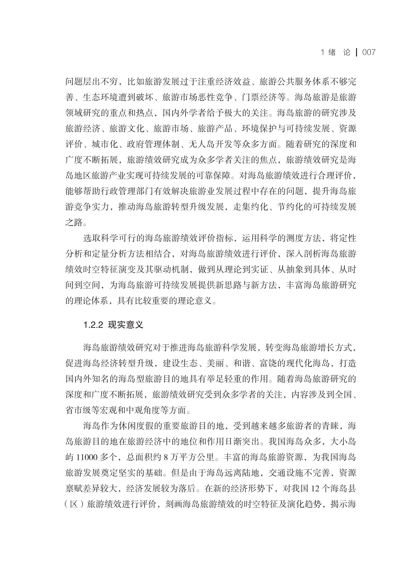 本书以中国12个海岛县(区)为例进行研究,虽具有一定的代表性,但是由于海岛所处地理位置、地区经济、交通、资源等条件差异,要做的研究工作还有很多。