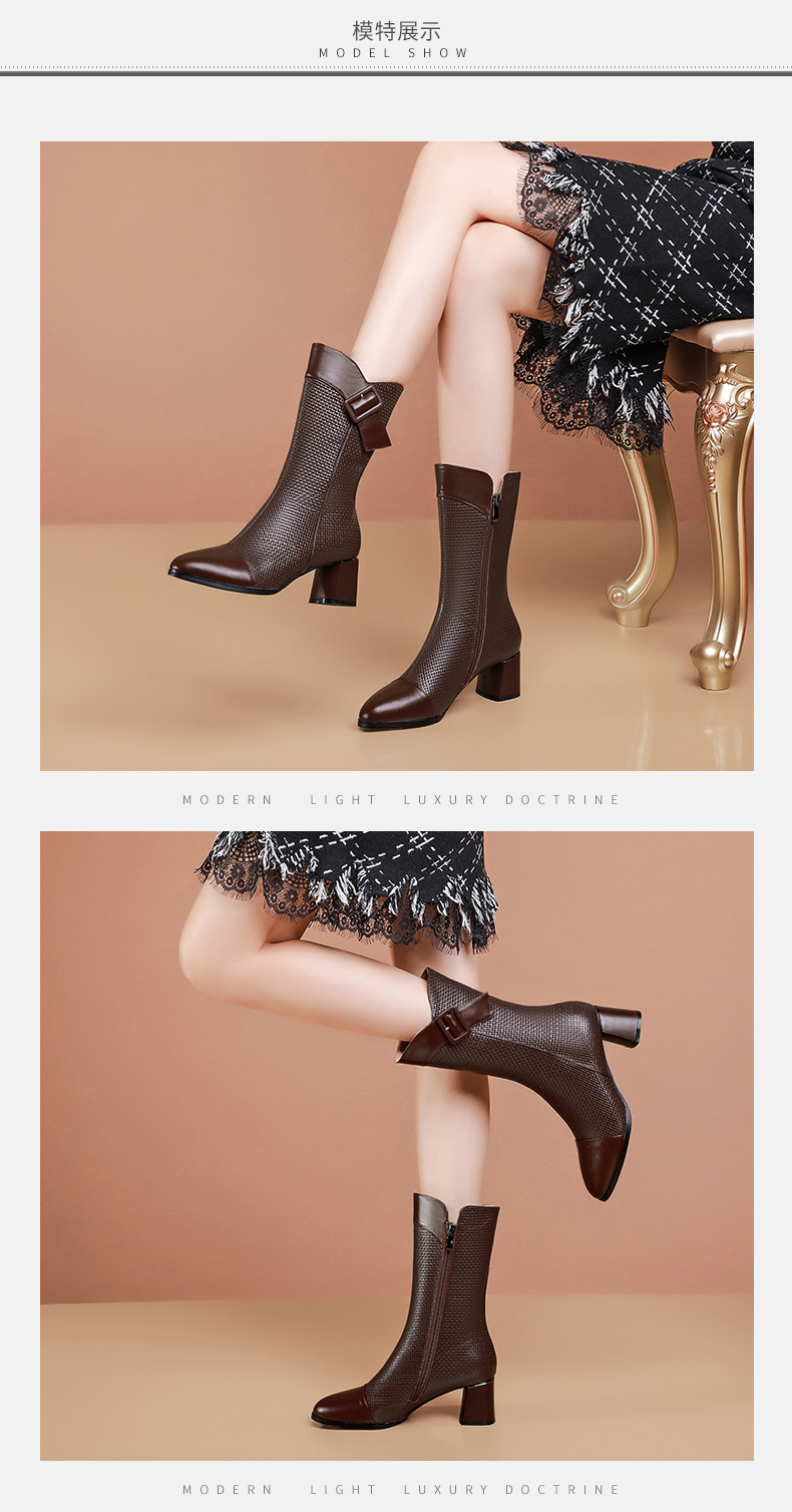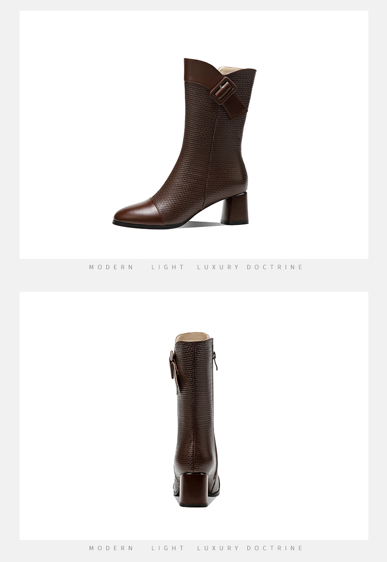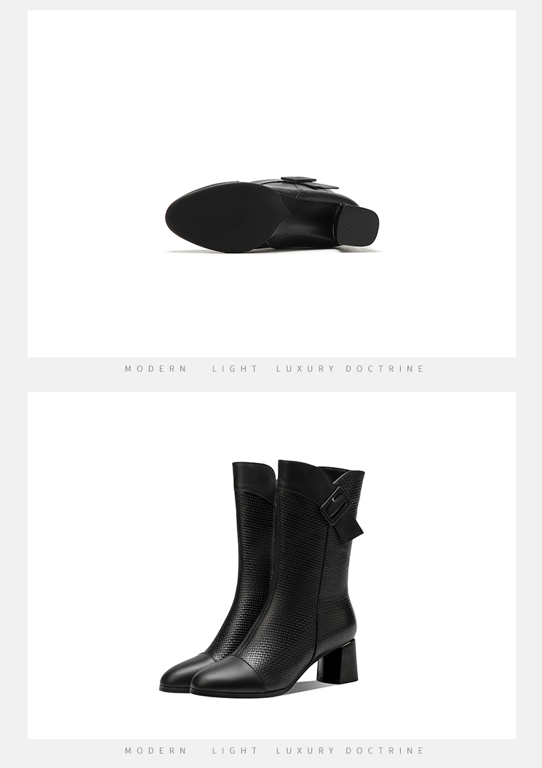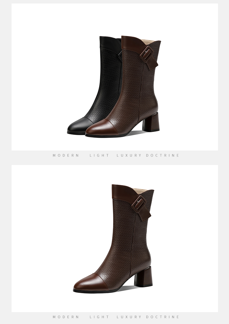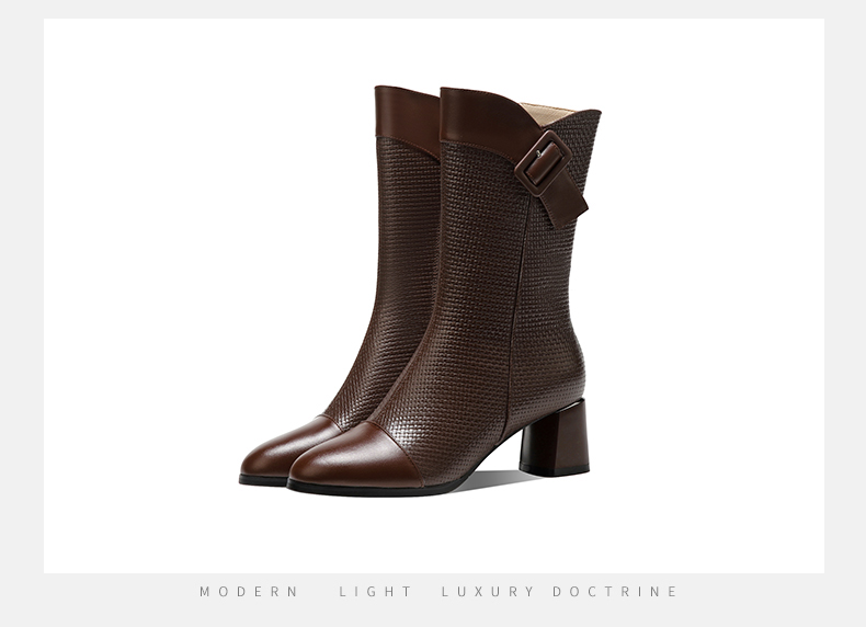 复古百搭,粗跟格子中筒靴TFJC-W82