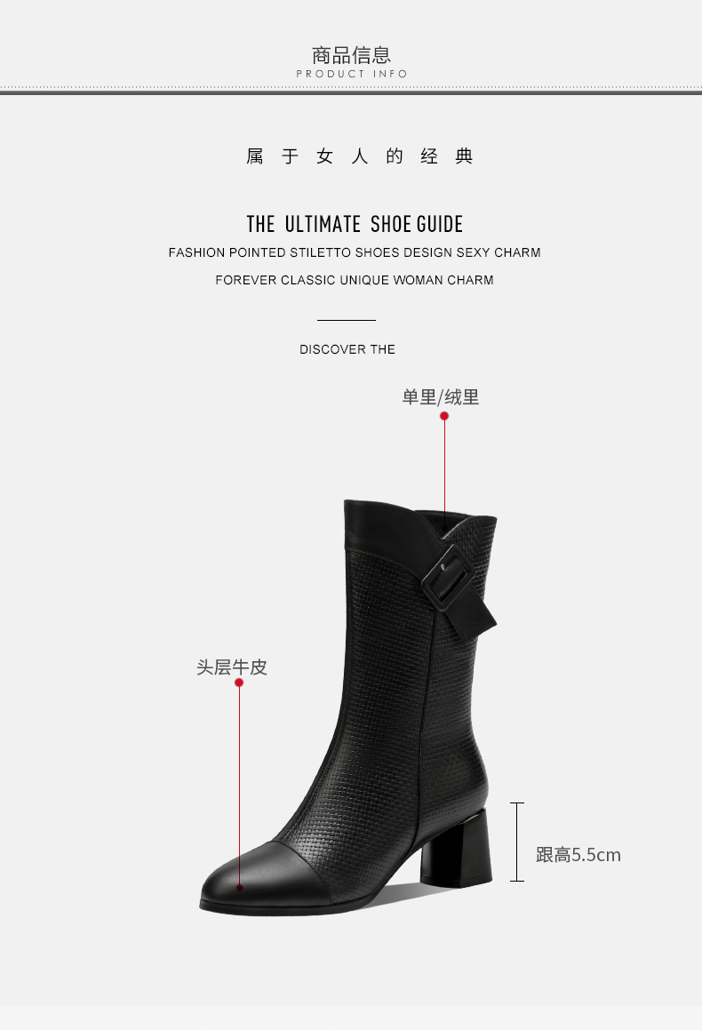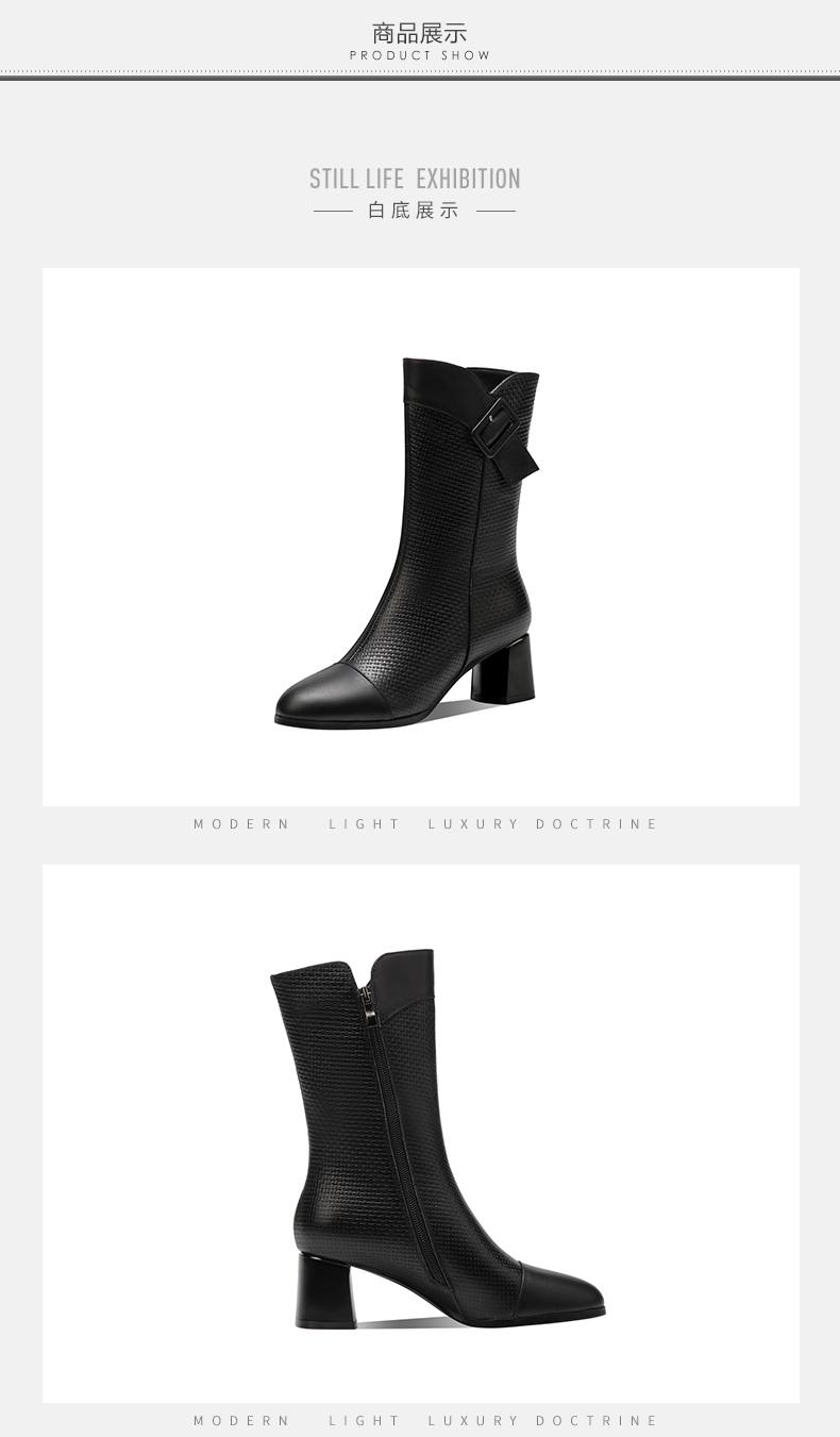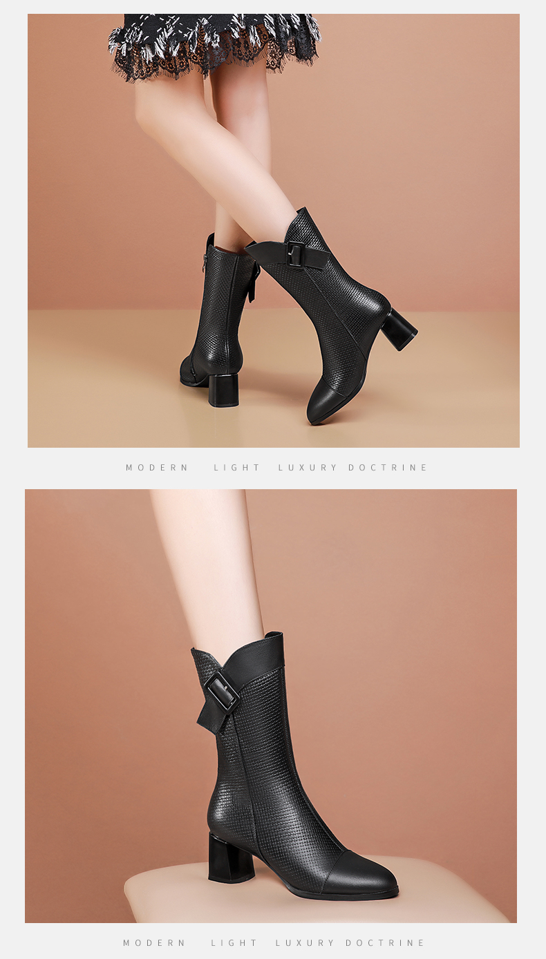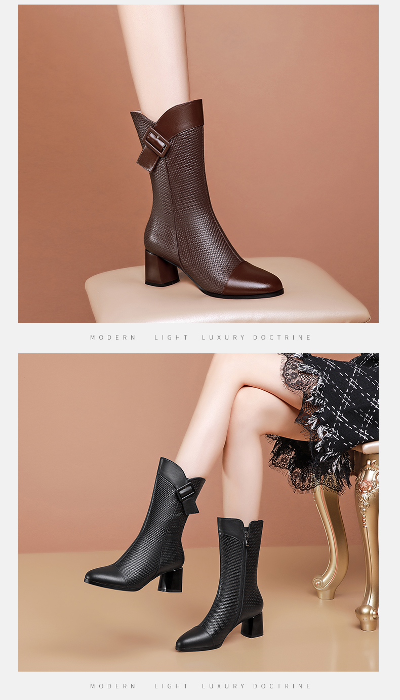 复古百搭,粗跟格子中筒靴TFJC-W82