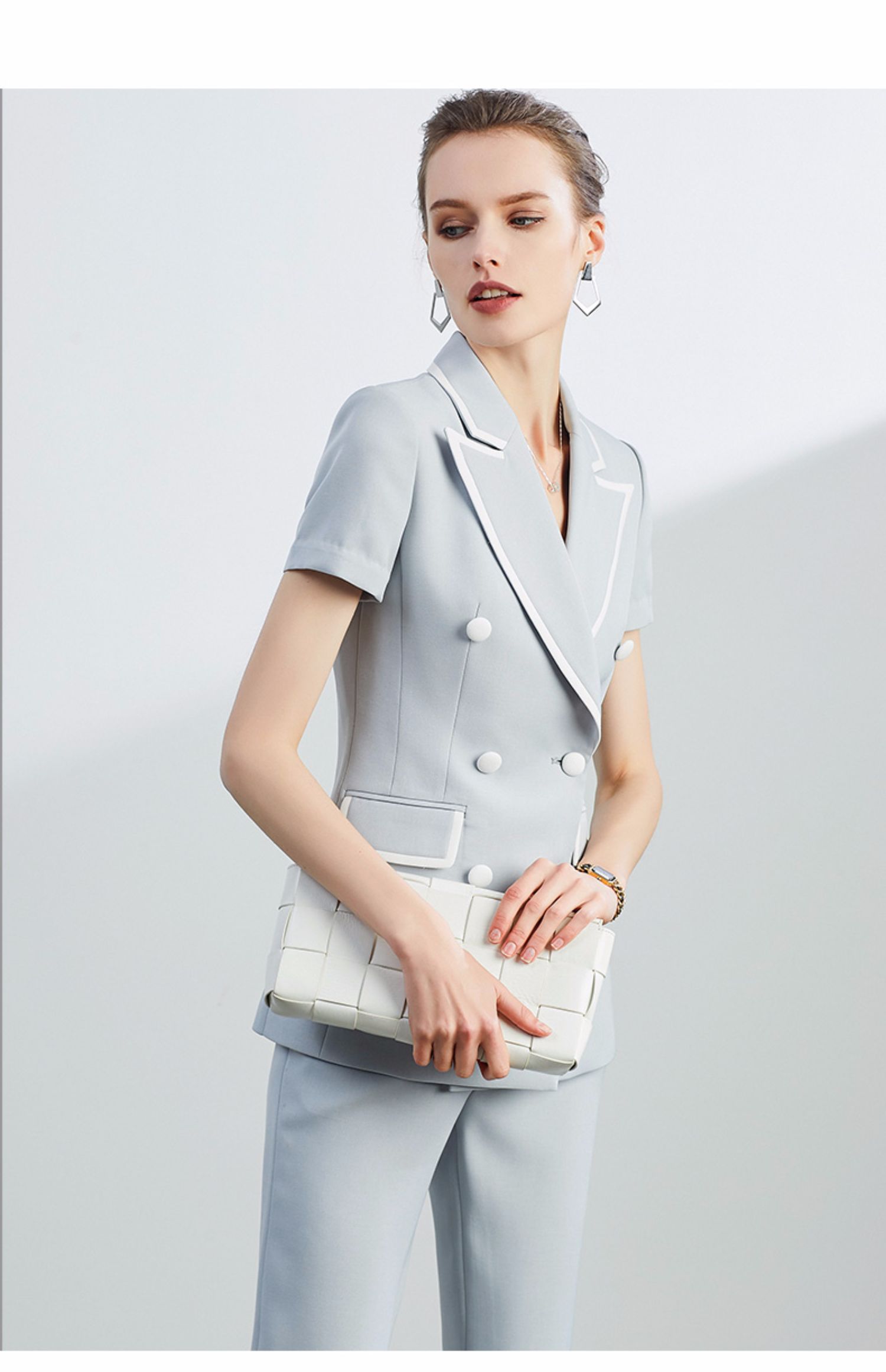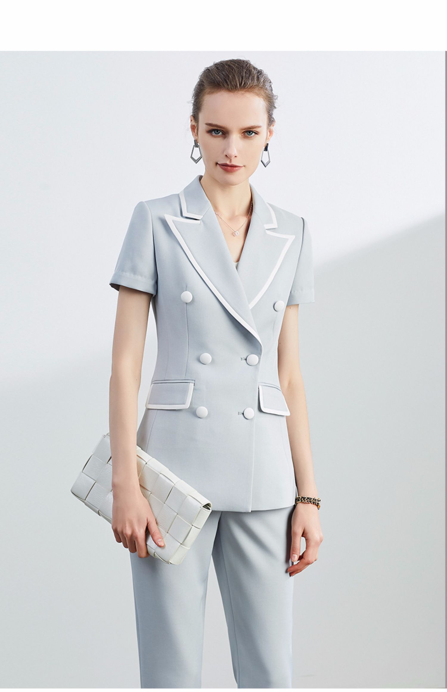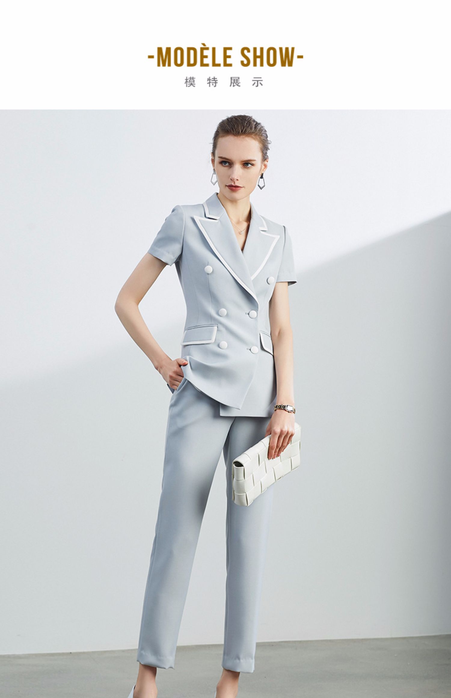 IWY/蓝色高端职业套装女时尚气质休闲短袖西装正装通勤工作西服 CP1167