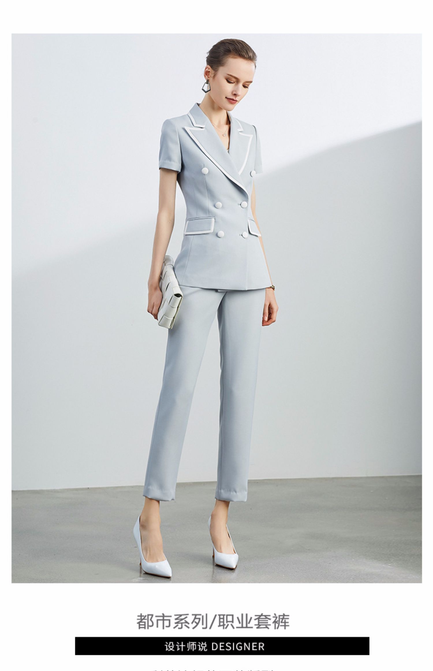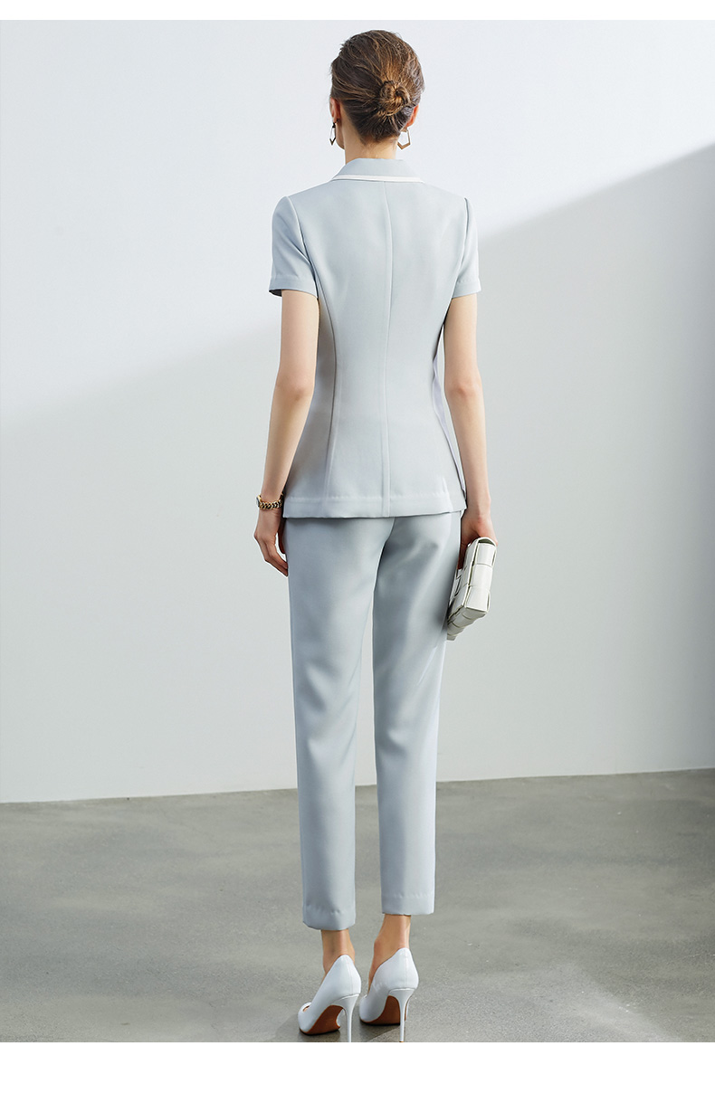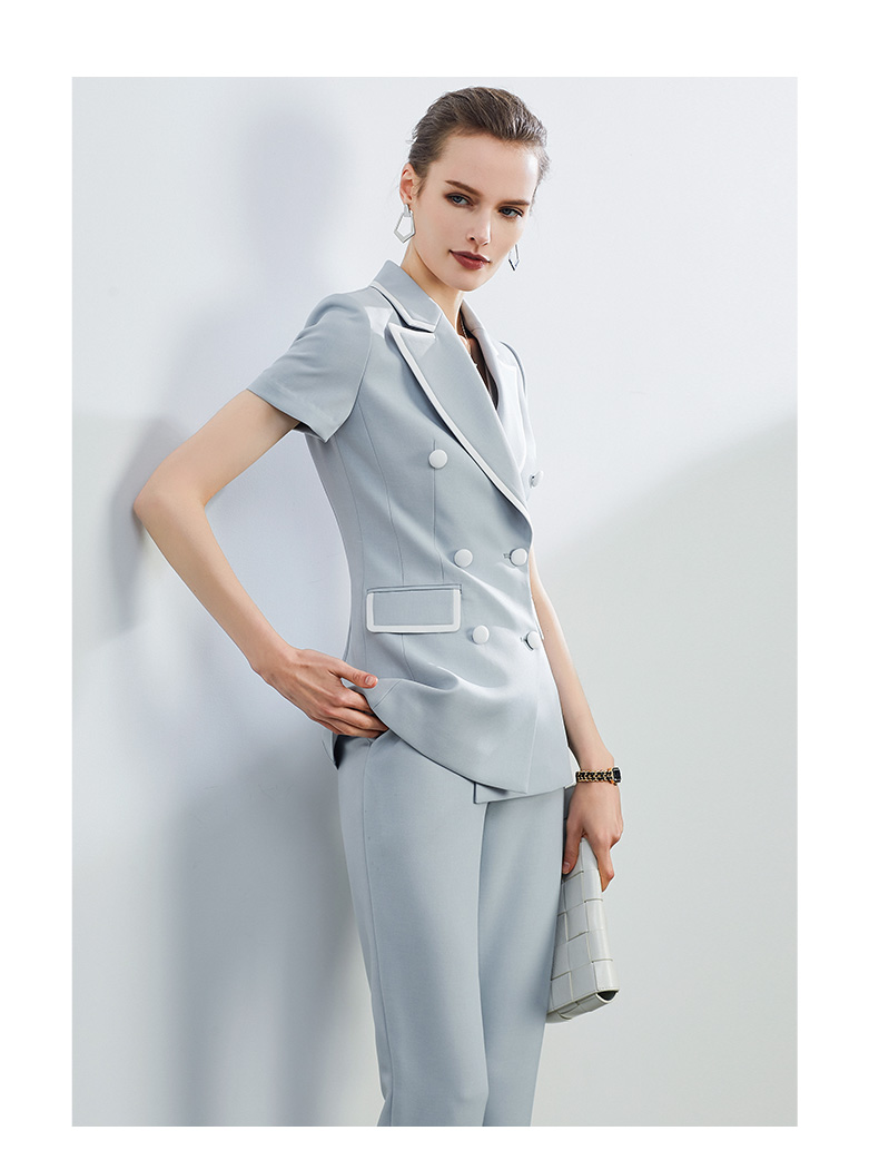 IWY/蓝色高端职业套装女时尚气质休闲短袖西装正装通勤工作西服 CP1167