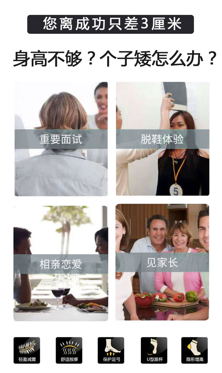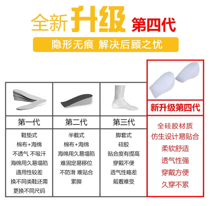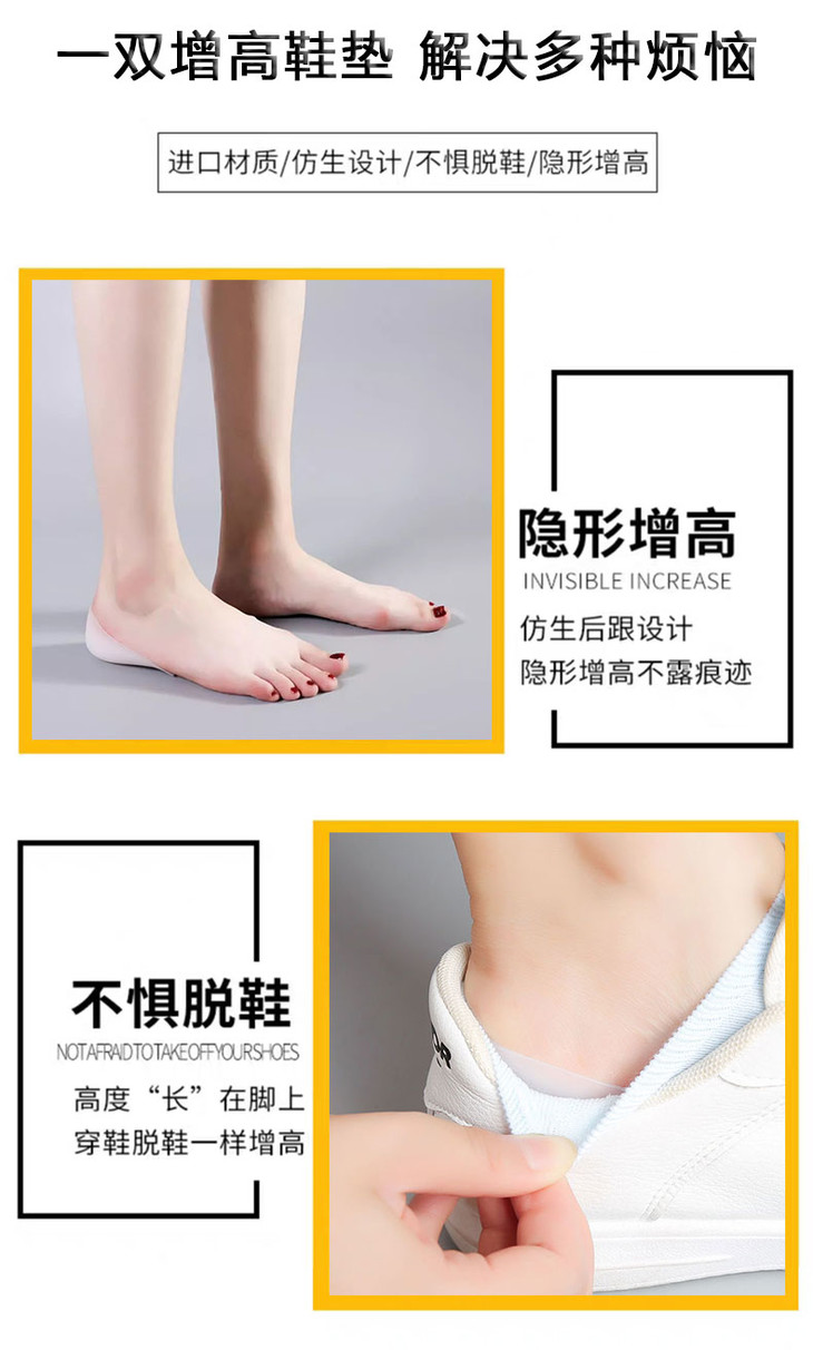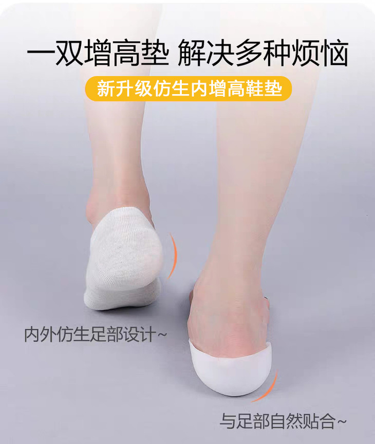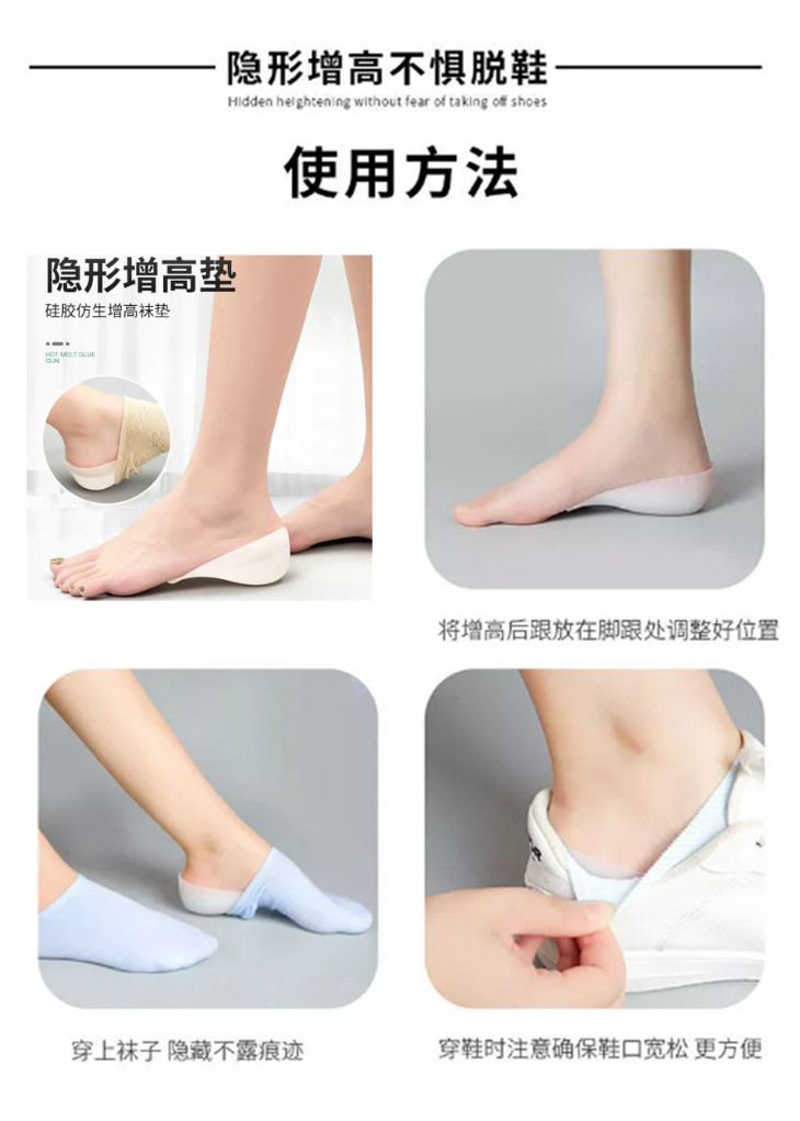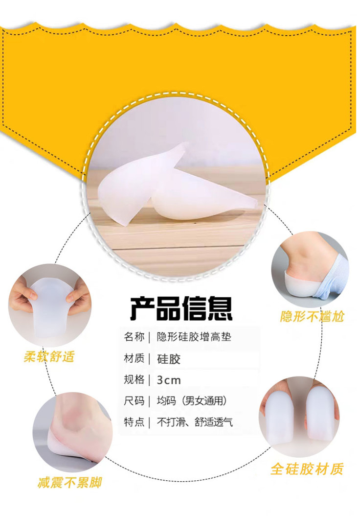 【身高瞬间增加3厘米!穿在袜子里的隐形增高】好评如潮 仿生设计 硅胶材质 柔软舒适 贴合脚跟 不惧脱鞋 久穿不累 3厘米隐形增高鞋垫 “长”在脚上的增高