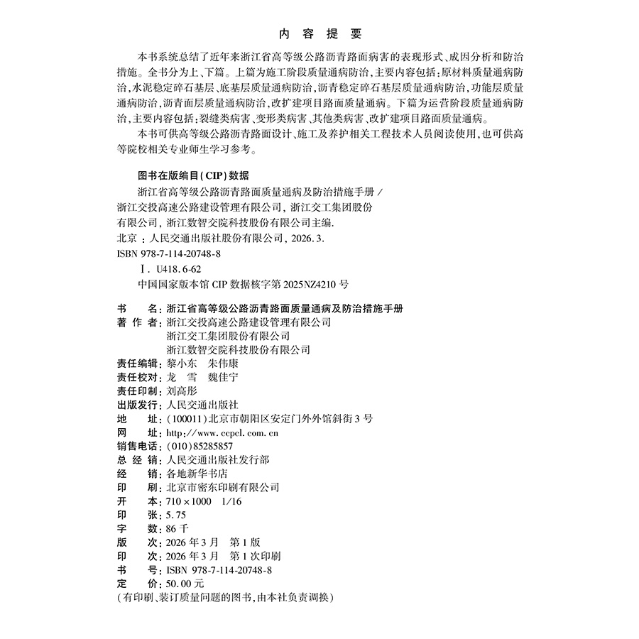 书名:浙江省高等级公路沥青路面质量通病及防治措施手册