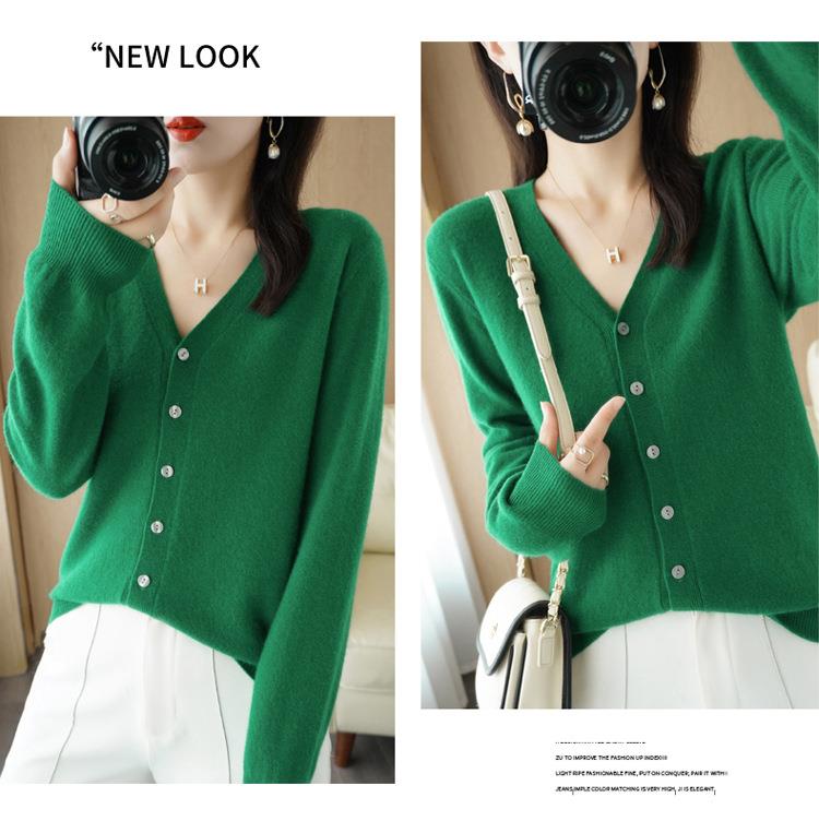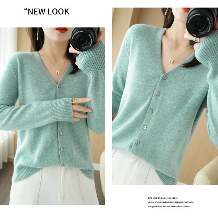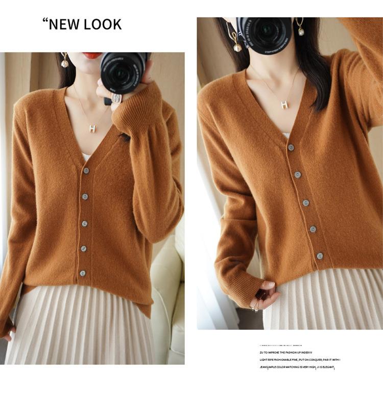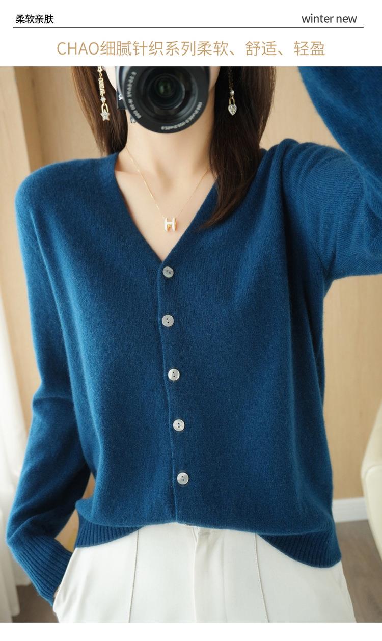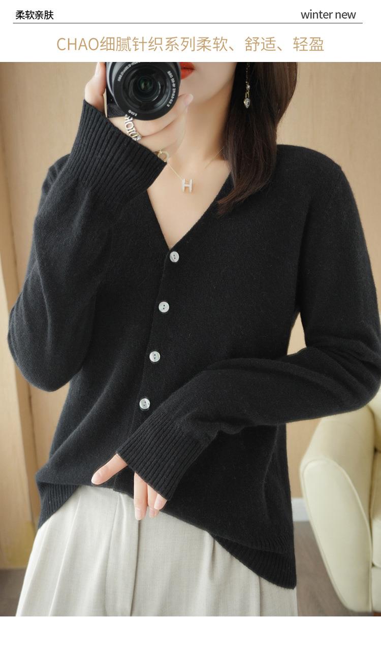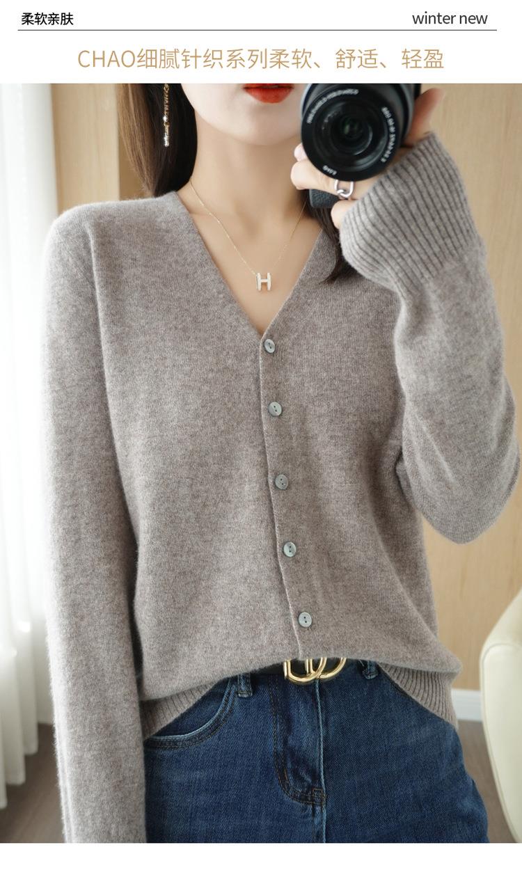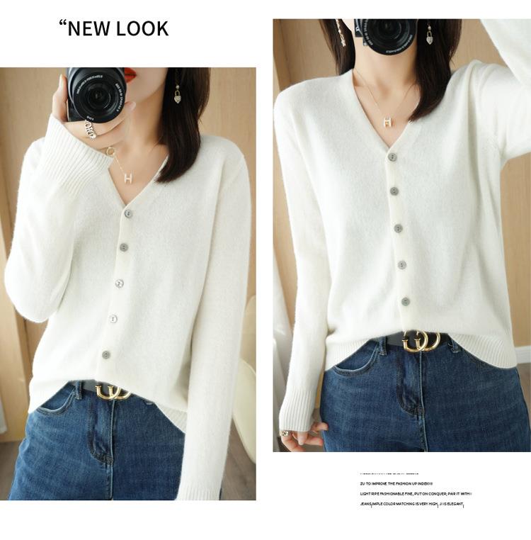 开衫外套女针织打底衫V领长袖2023年春季季新款外搭毛衣女装韩版