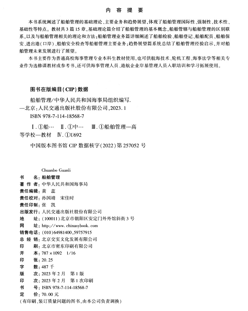 船舶管理 海事管理核心教材 中华人民共和国海事局编