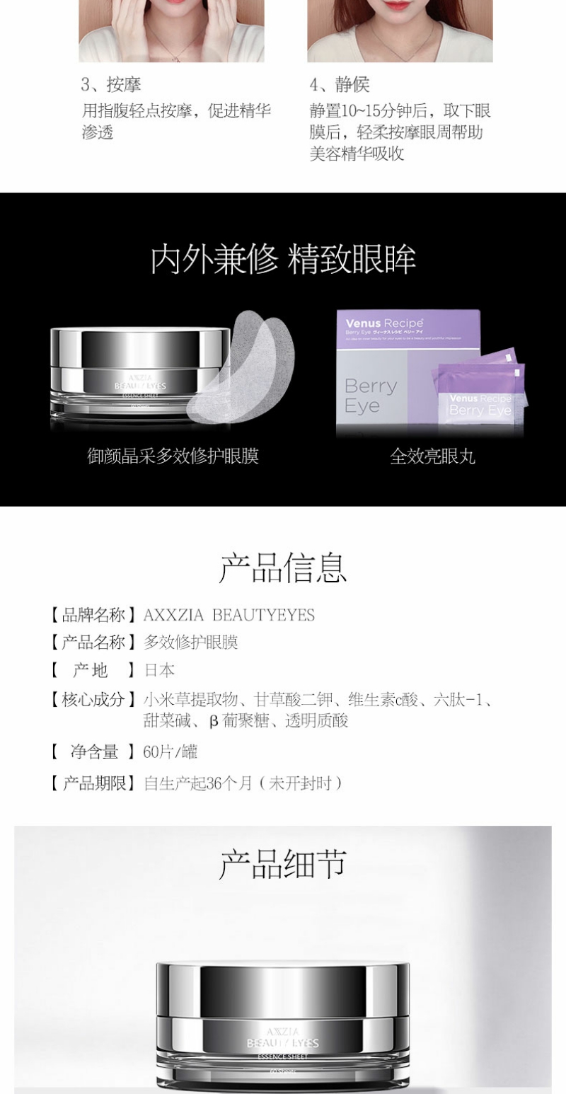 【YZ】AXXZIA日本AXXZIA晓姿多效修护眼膜紧致保湿淡化黑眼圈60片/盒