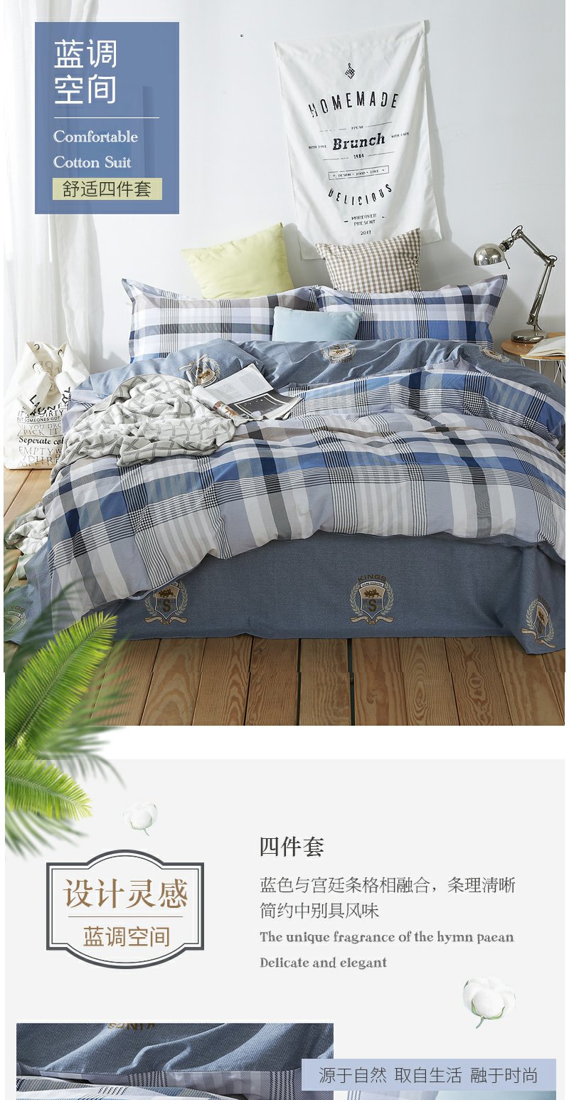 恒源祥TBK2018蓝调空间四件套2米100%棉