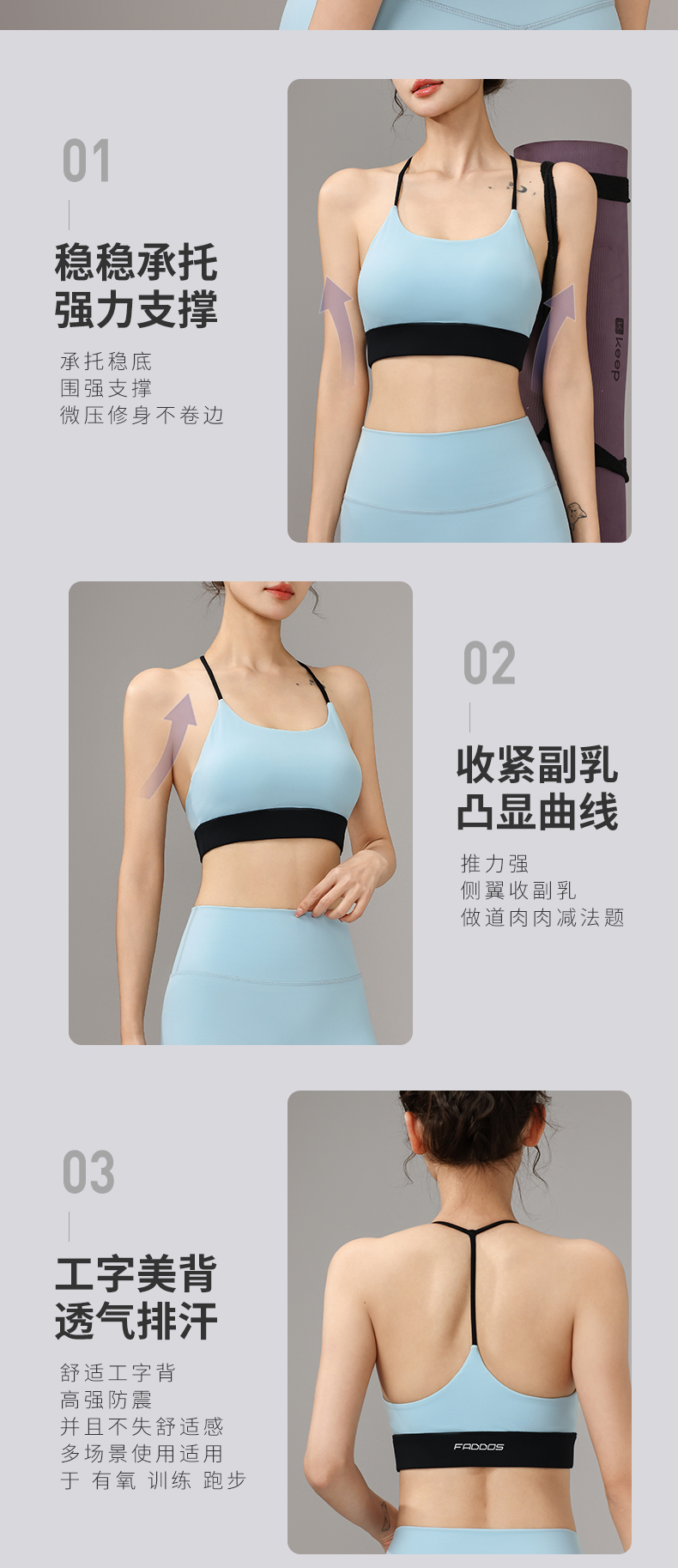 梵蒂欧(FADDOS)25新款拼色高强度瑜伽背心一体杯F2023762