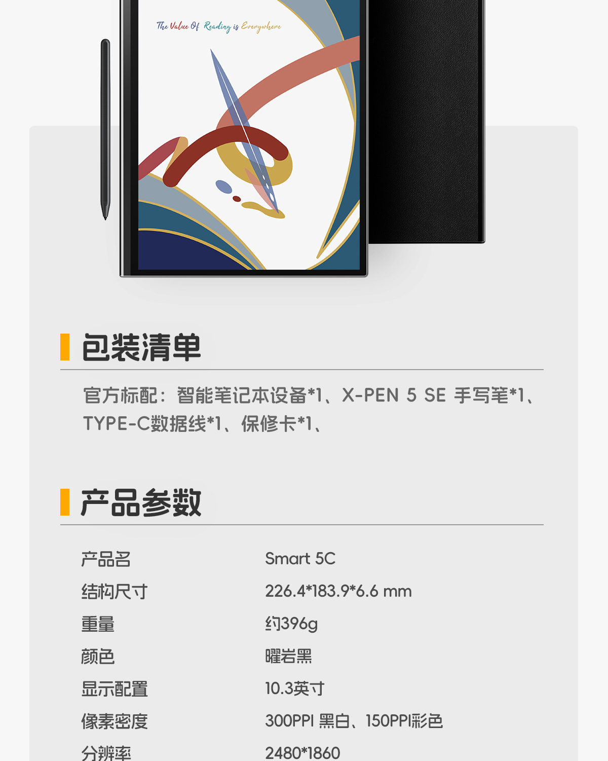 【春日优惠价】Smart5C 10.3英寸彩色墨水屏智能办公本 电子书阅读器 8+128G