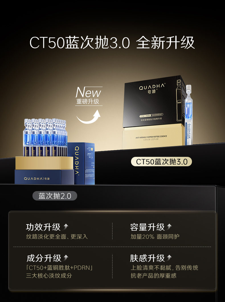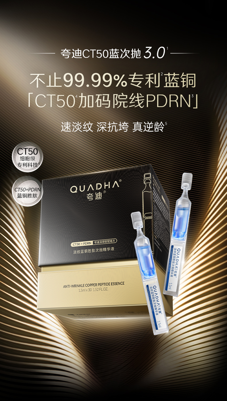 【夸迪】夸迪淡纹蓝铜胜肽次抛精华液3.0 1.5m*30支 买45ml至高享52.5ml 速淡纹 深抗垮 真逆龄
