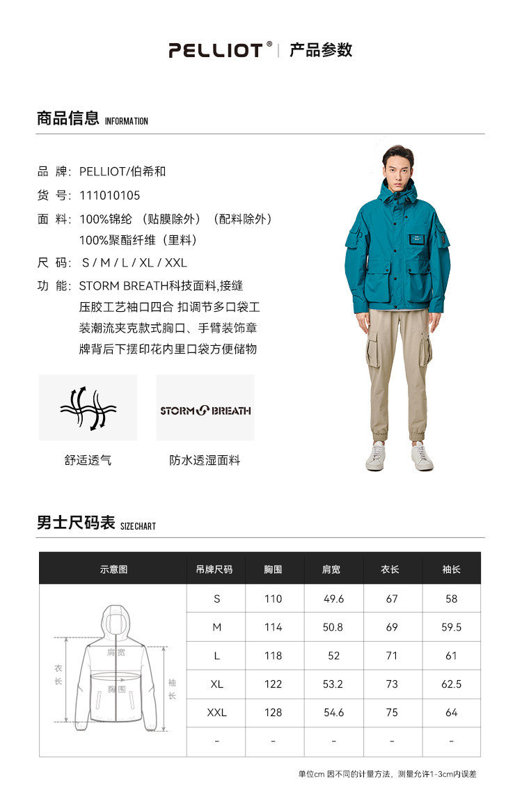 伯希和户外单层冲锋衣 2020年款男士工装风夹克休闲旅行风衣外套111010105