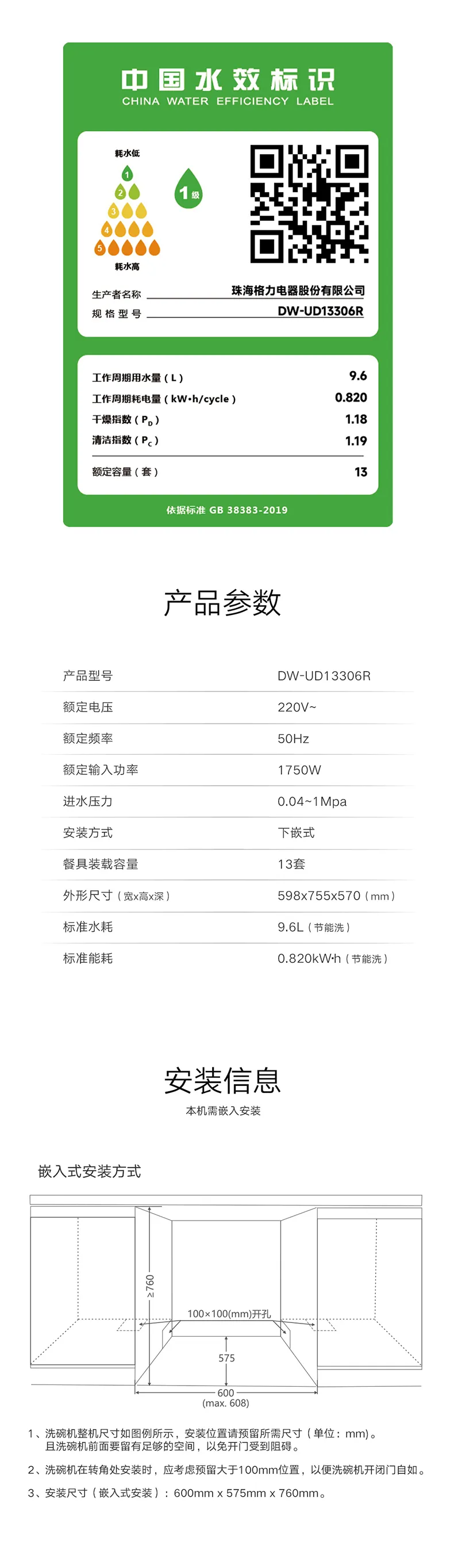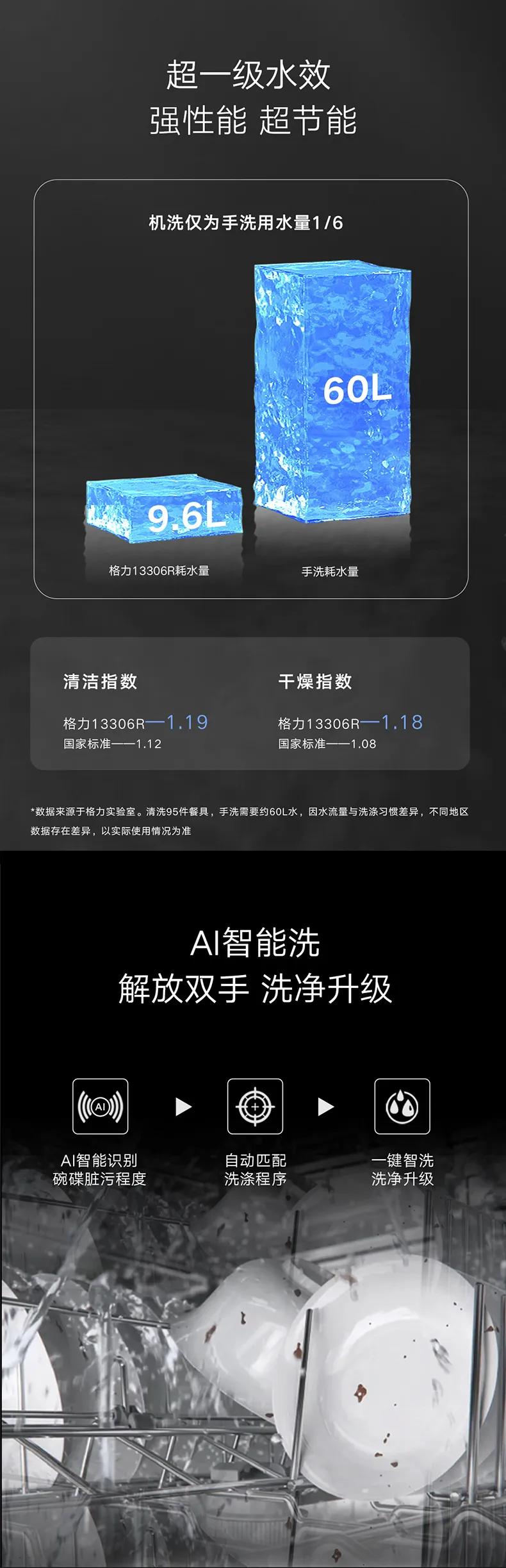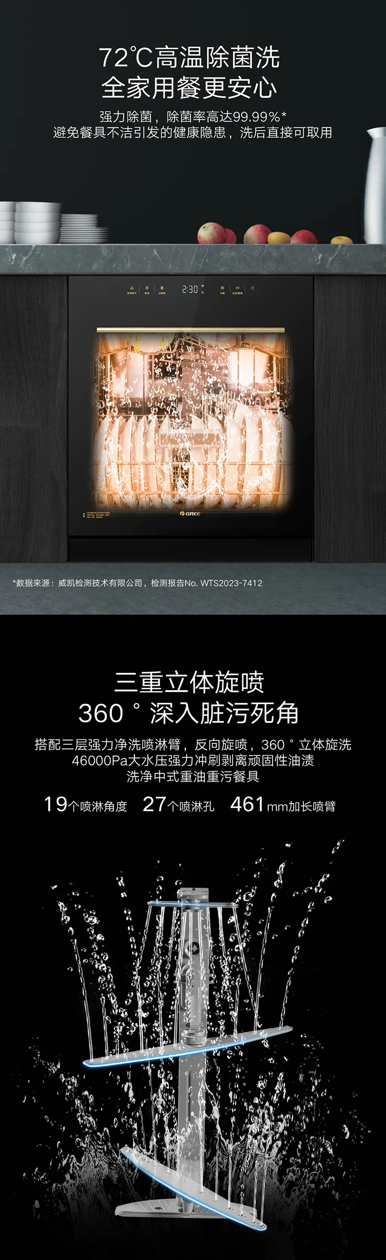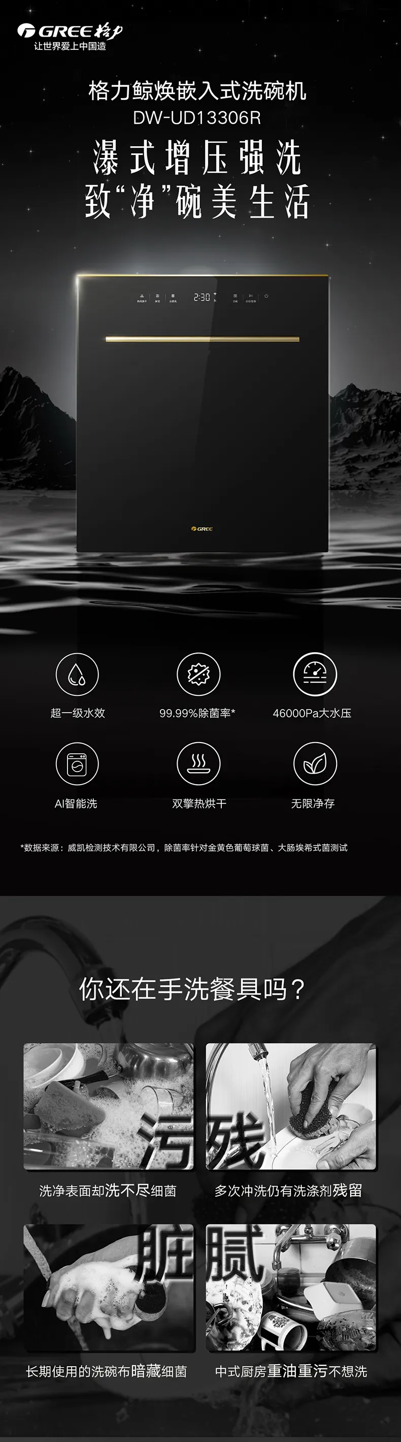 【预售】格力·洗碗机 鲸焕系列 下嵌式 13套 DW-UD13306R 黑色