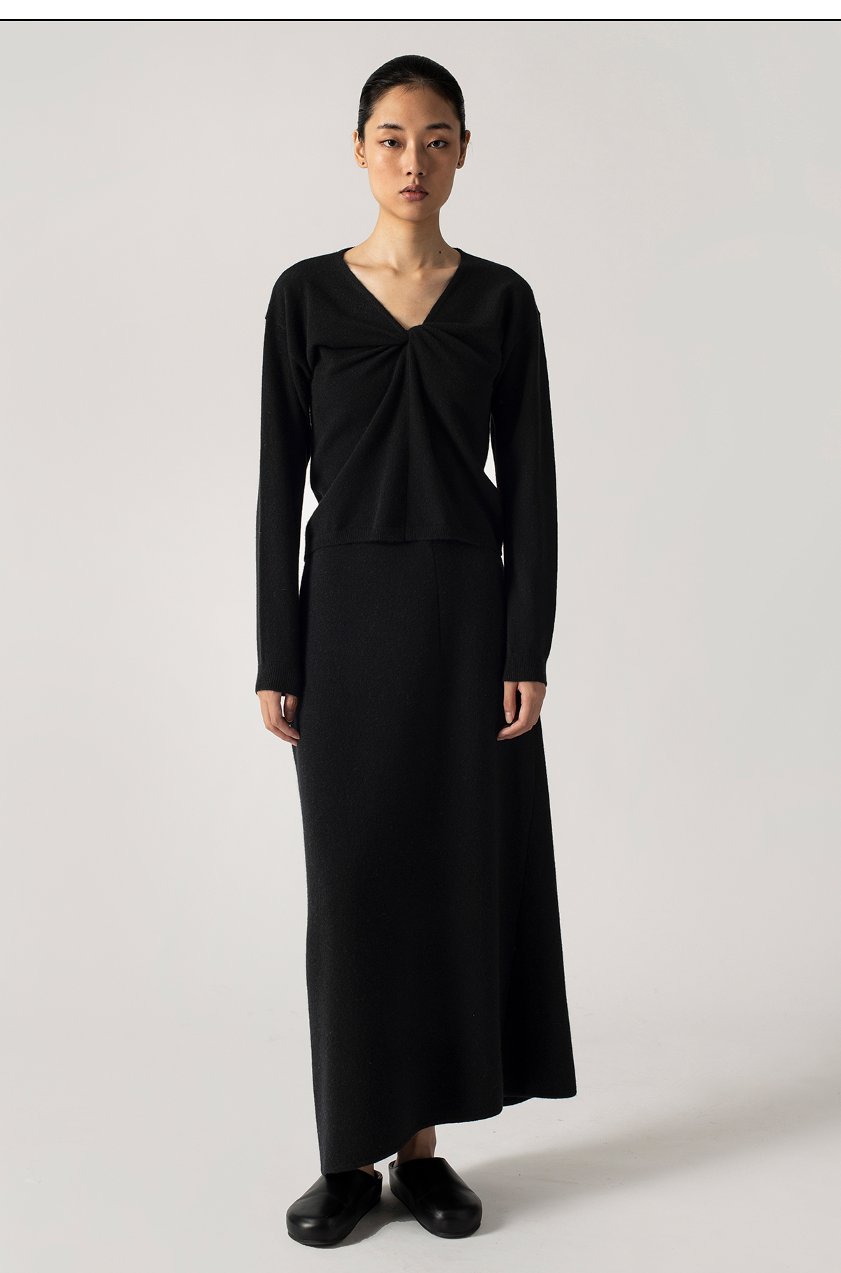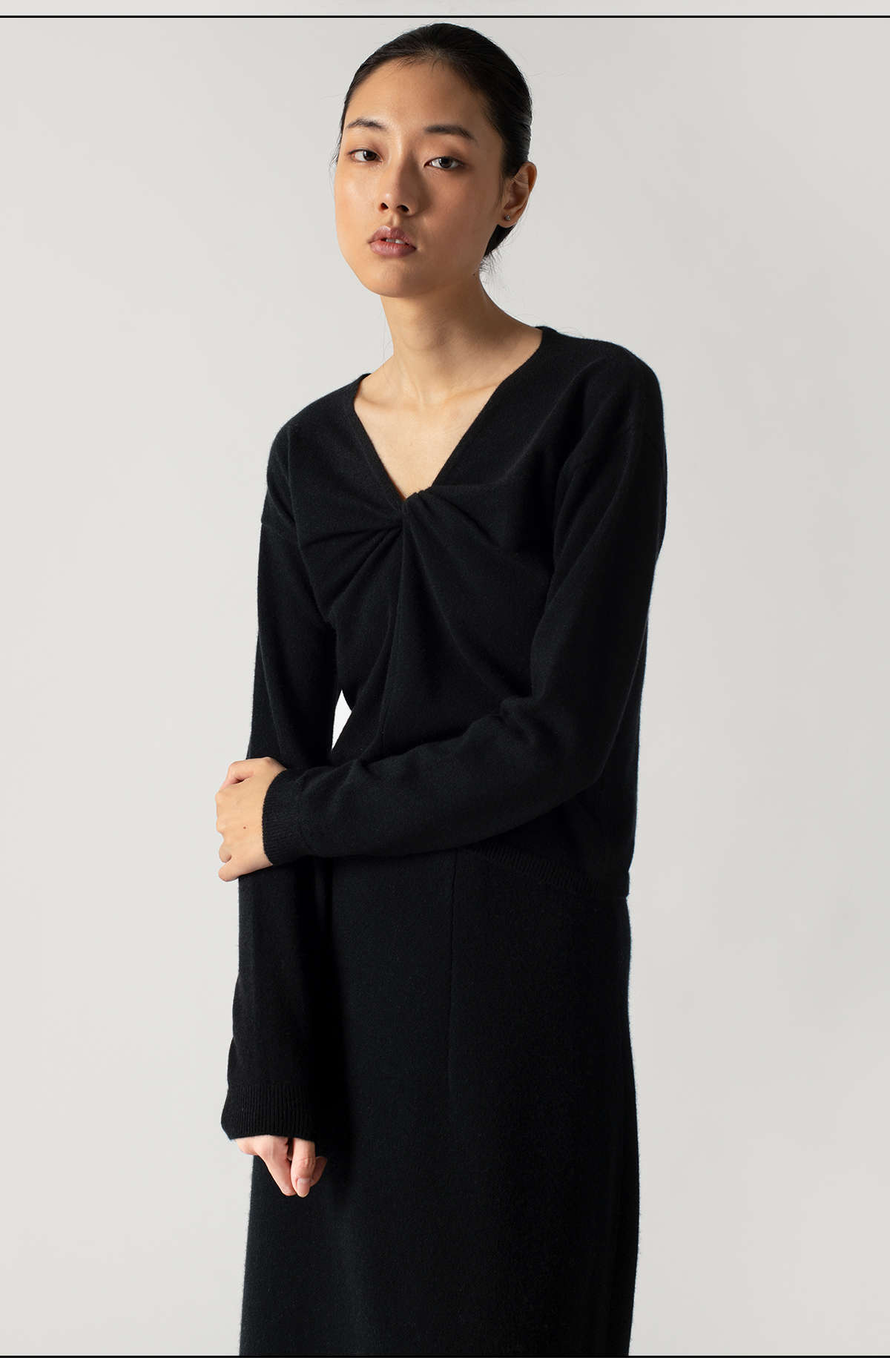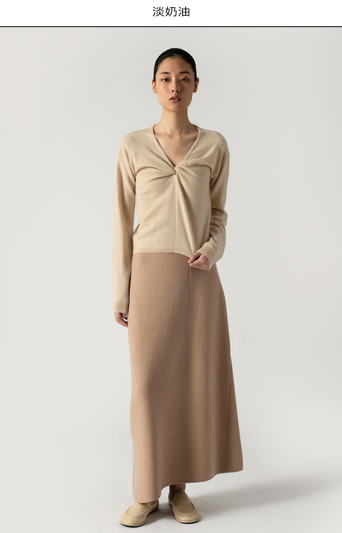 322工房扭结造型纯山羊绒长袖套头衫2022年秋冬款v领百搭针织上衣