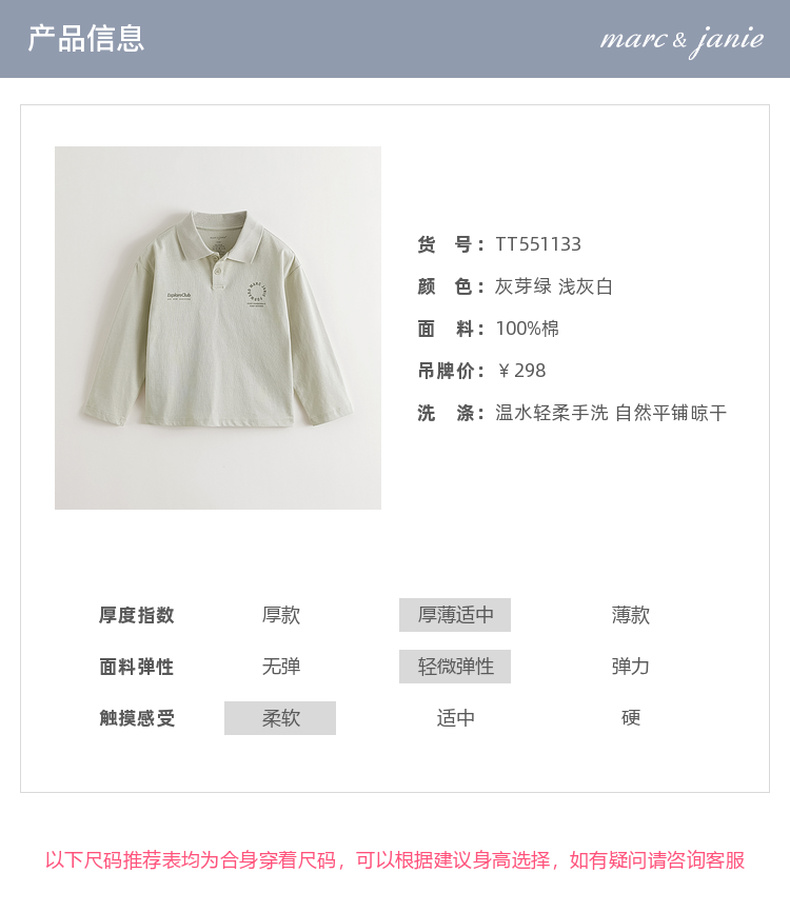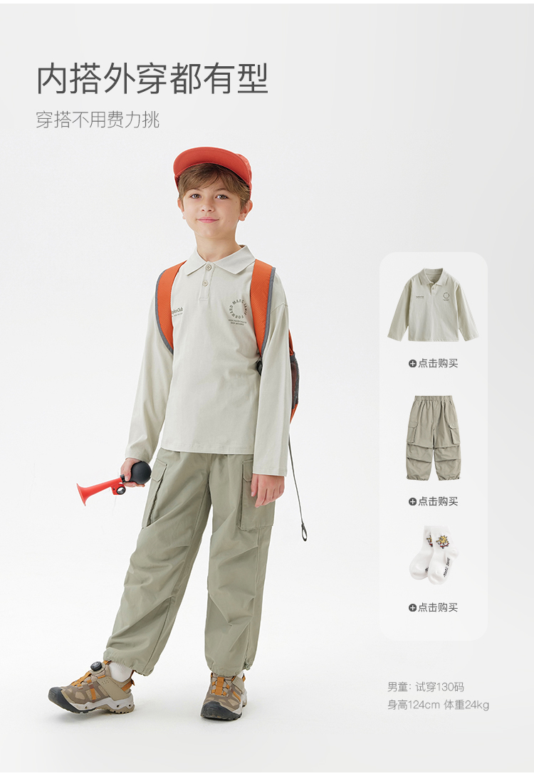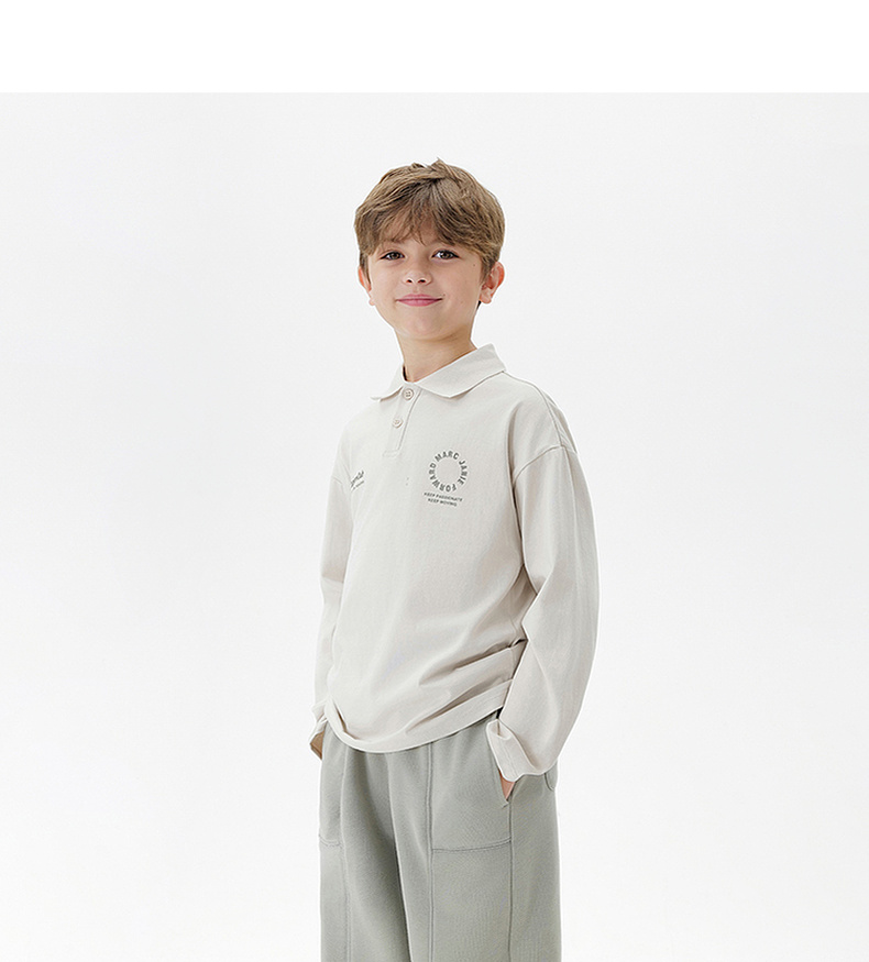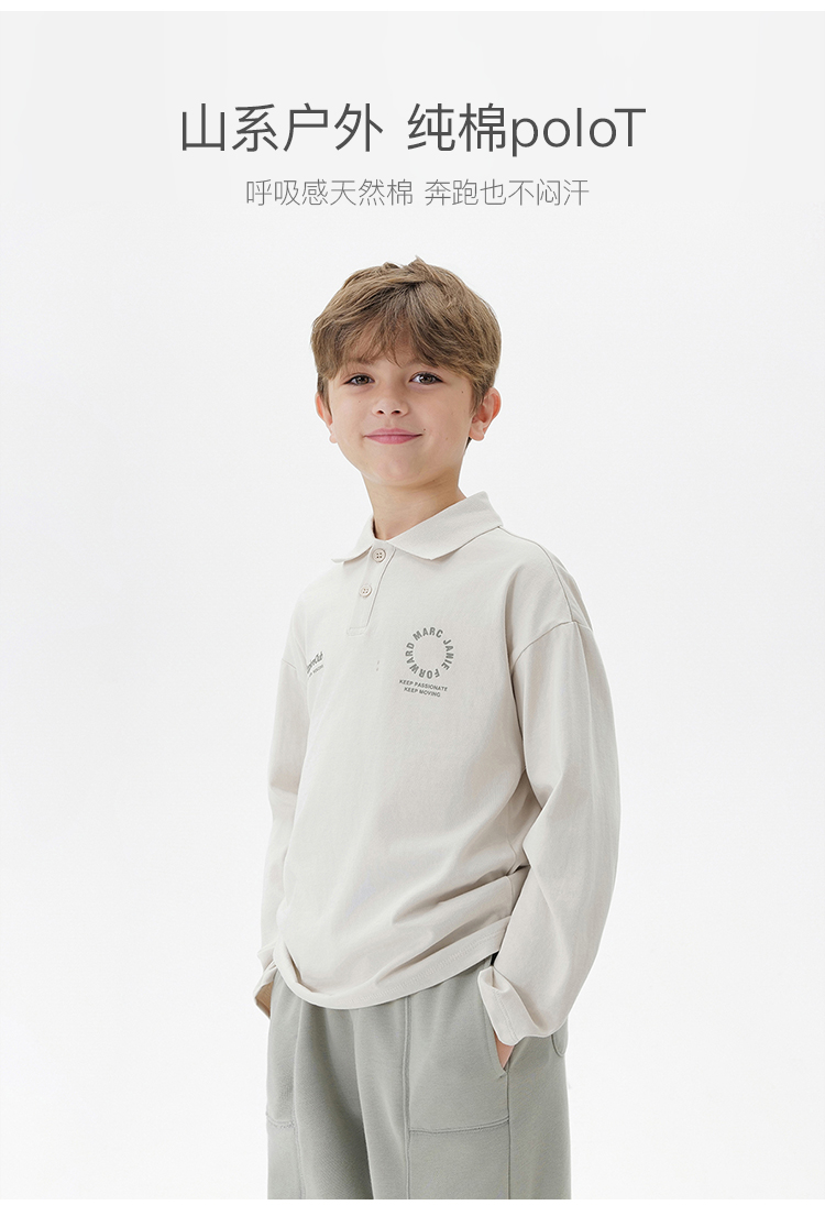 马克珍妮男童山系户外纯棉polo衫 儿童长袖T恤2025秋装新品551133