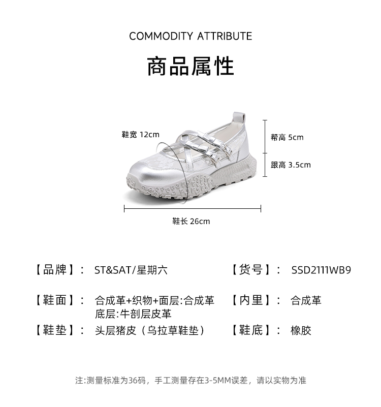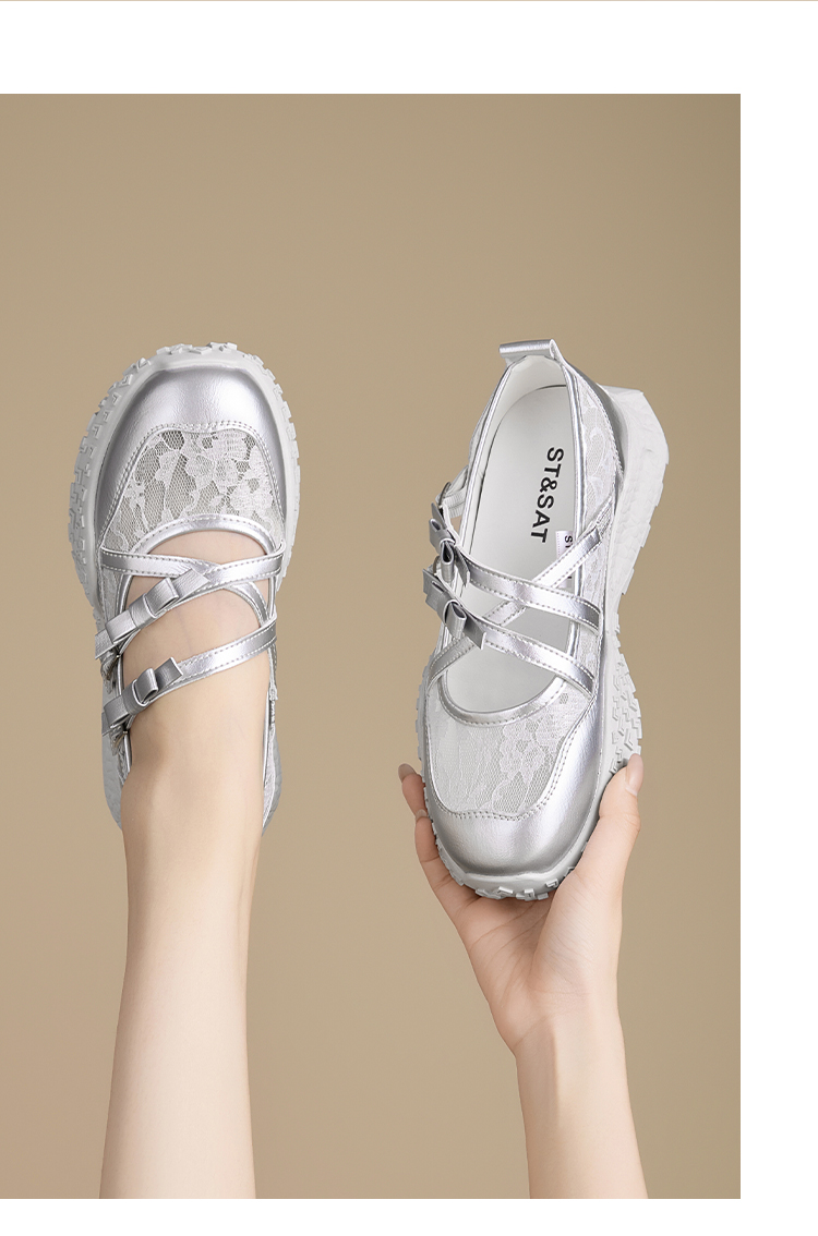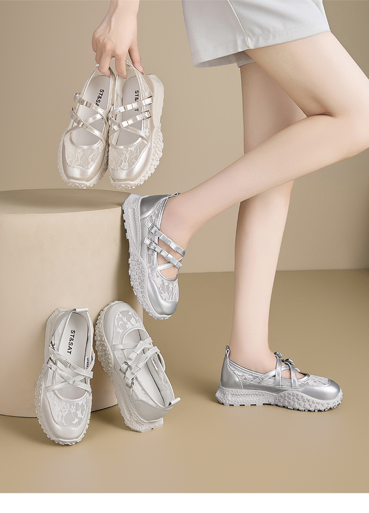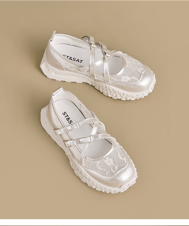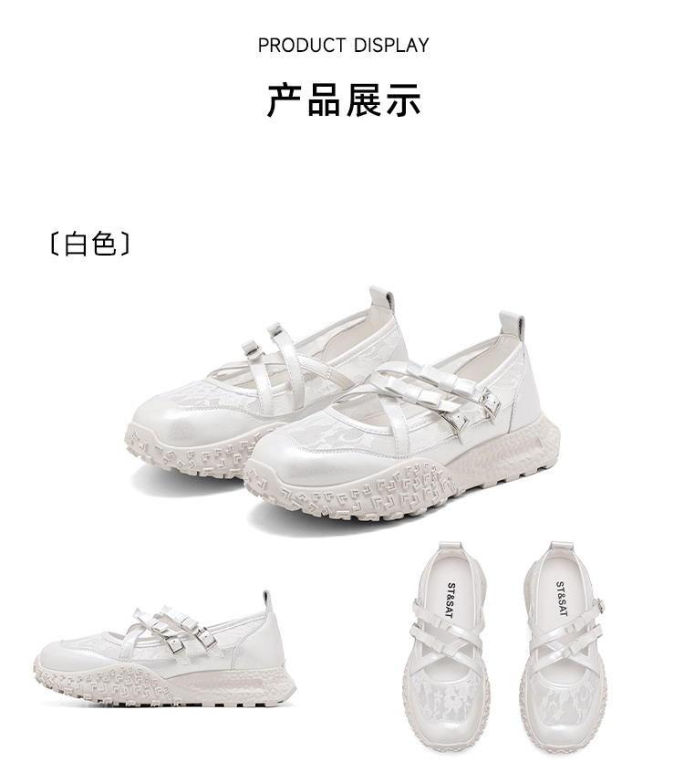 星期六网面蕾丝芭蕾厚底运动玛丽珍SSD2111WB9