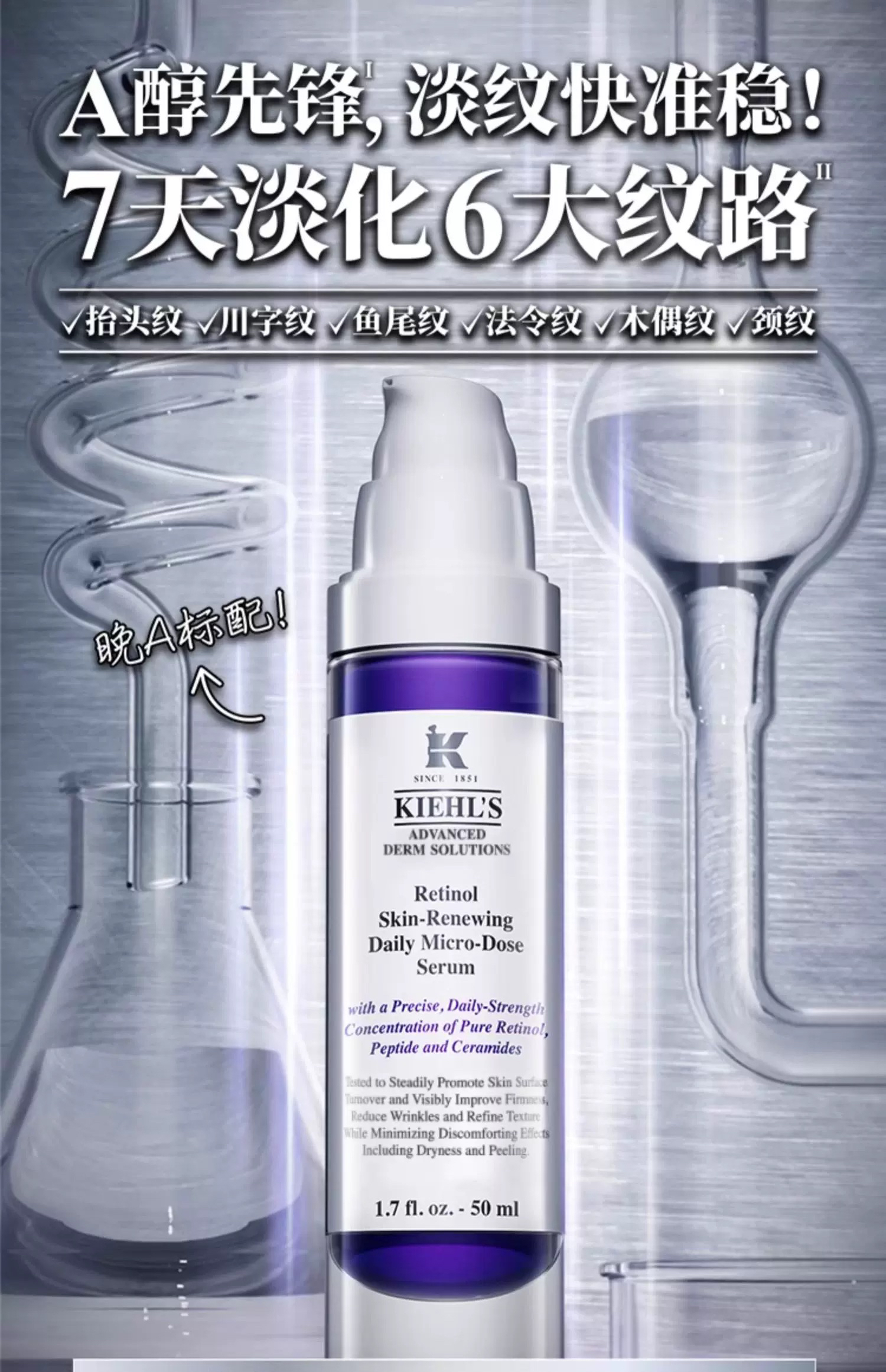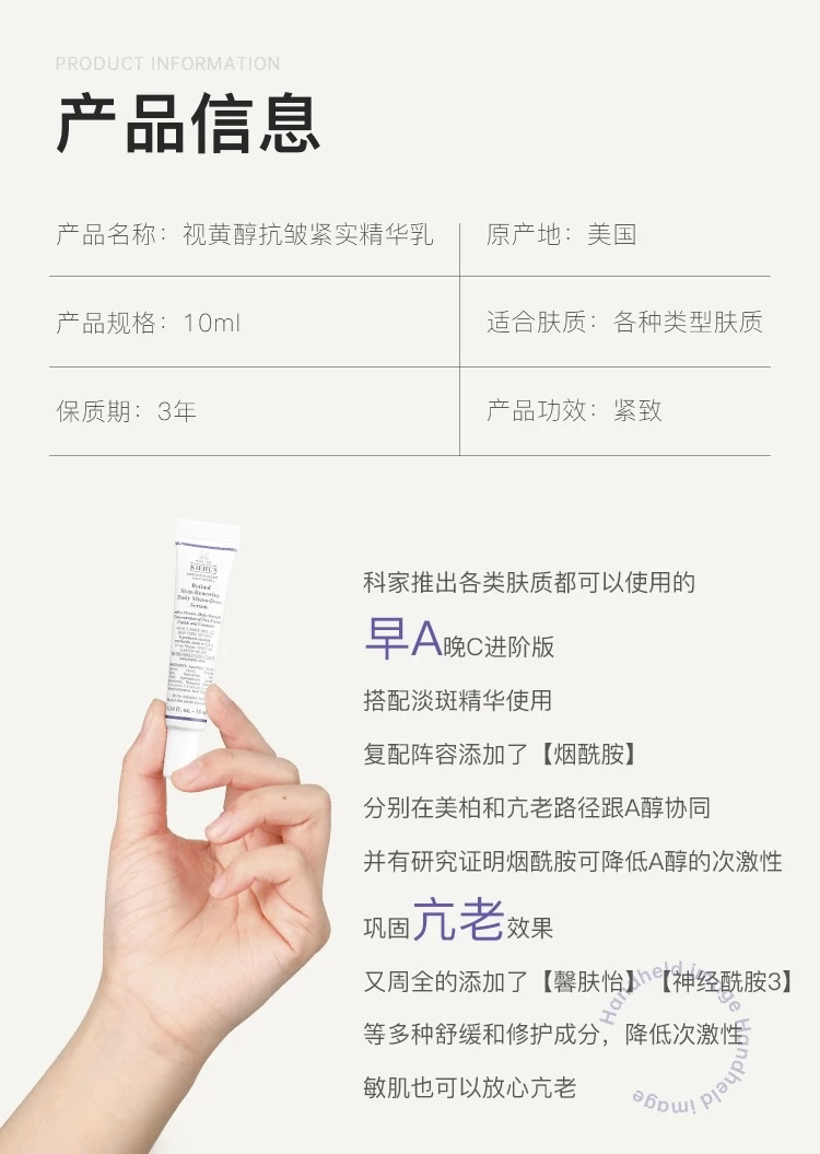 【专柜小样】美国 Kiehl's科颜氏 A醇精华 4ml