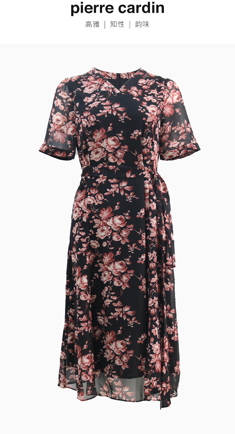 皮尔卡丹女装2024夏季新款花色短袖连衣裙C42DS28B4 商品图0