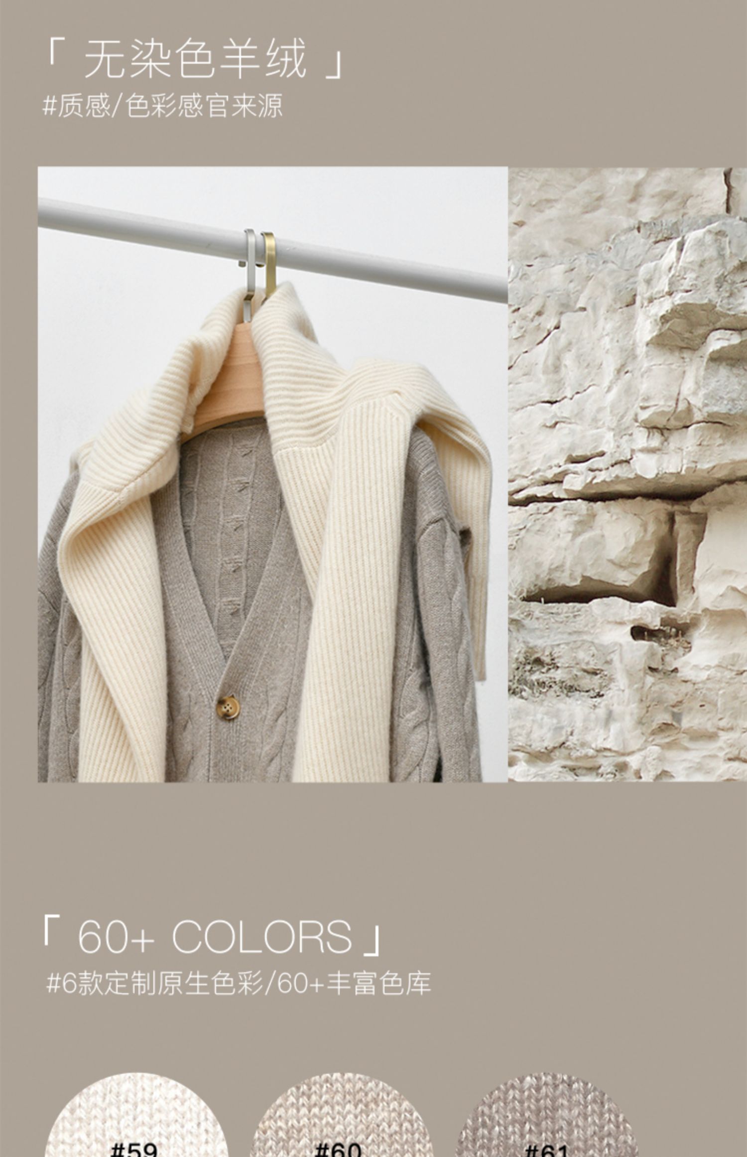 322工房圈圈纱美利奴羊毛衫2023年新款秋季长袖圆领纯色开衫外套