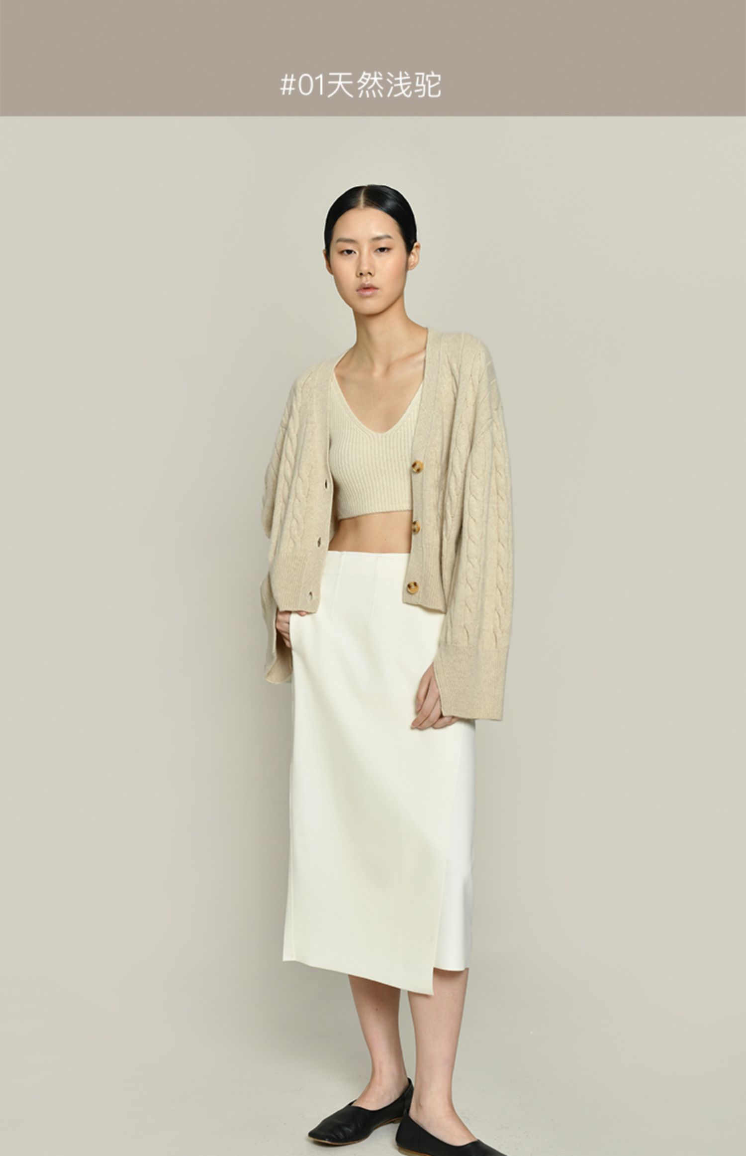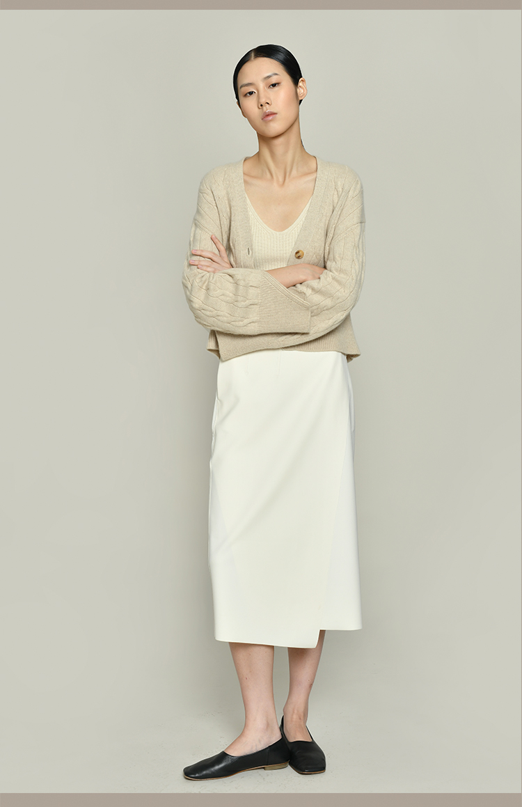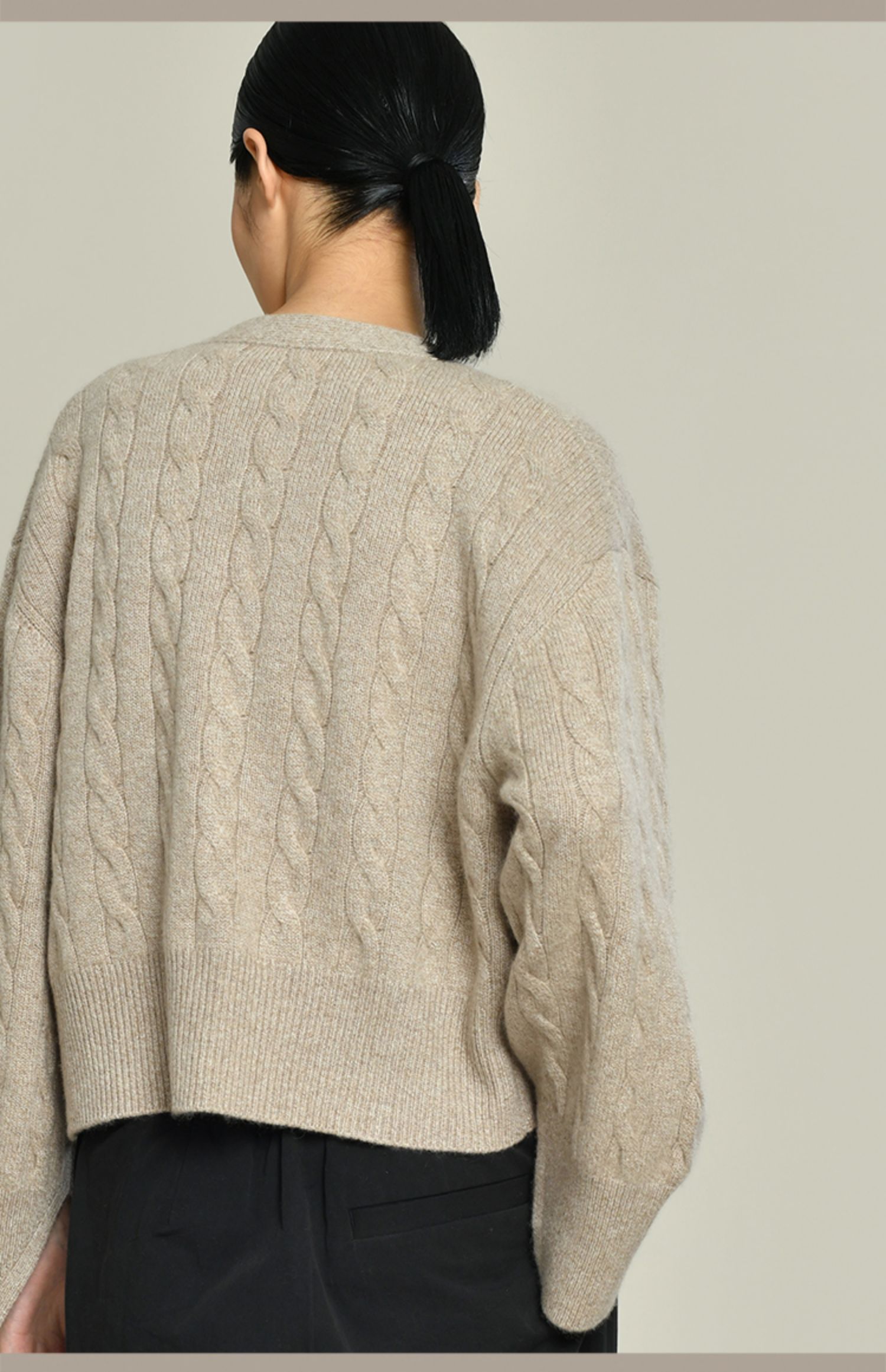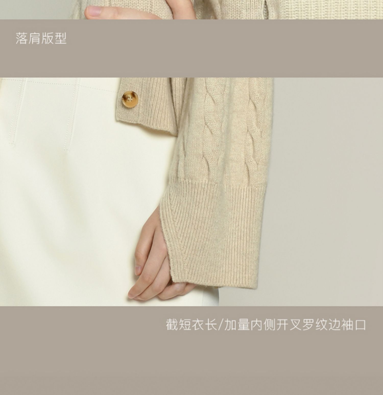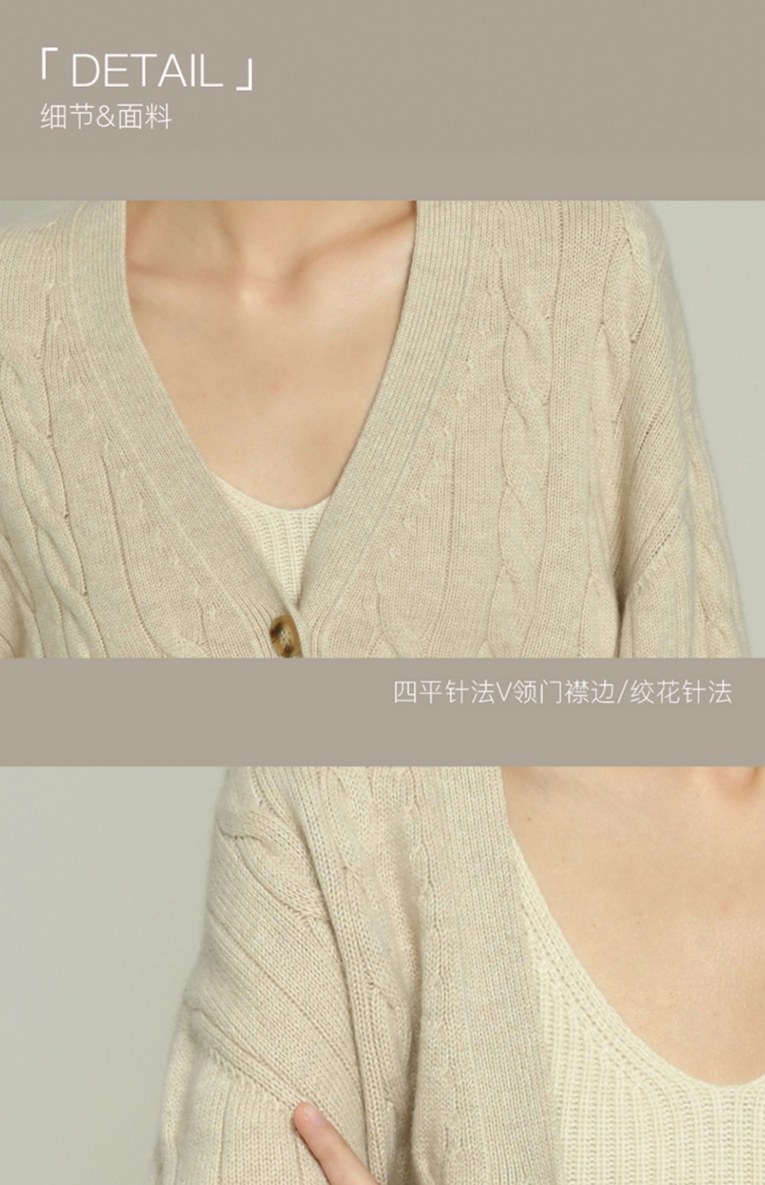 女士2021新款无染色羊绒长袖廓形V领绞花开衫