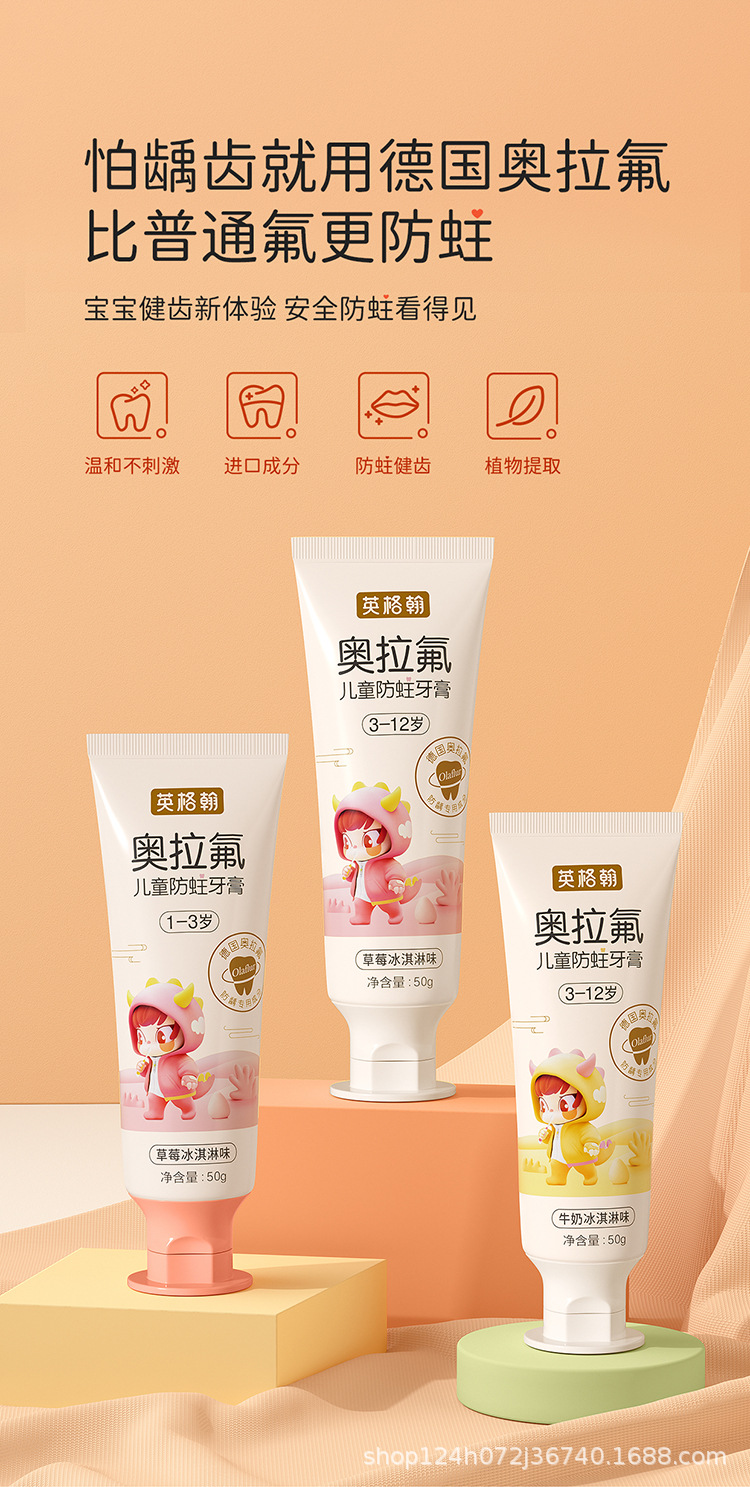 【2支装】英格翰 婴幼儿奥拉氟儿童牙膏木糖醇牙膏宝宝分龄1-3岁3-12岁含氟