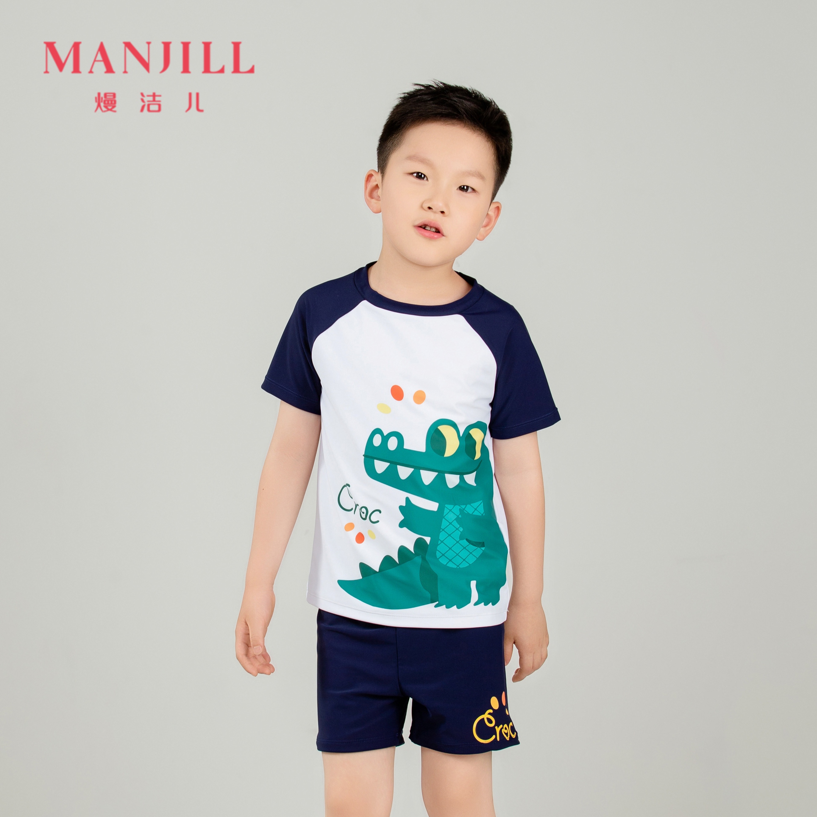 【商场同款】【赠泳帽】熳洁儿 男童泳装短袖分体泳衣可爱恐龙25206606