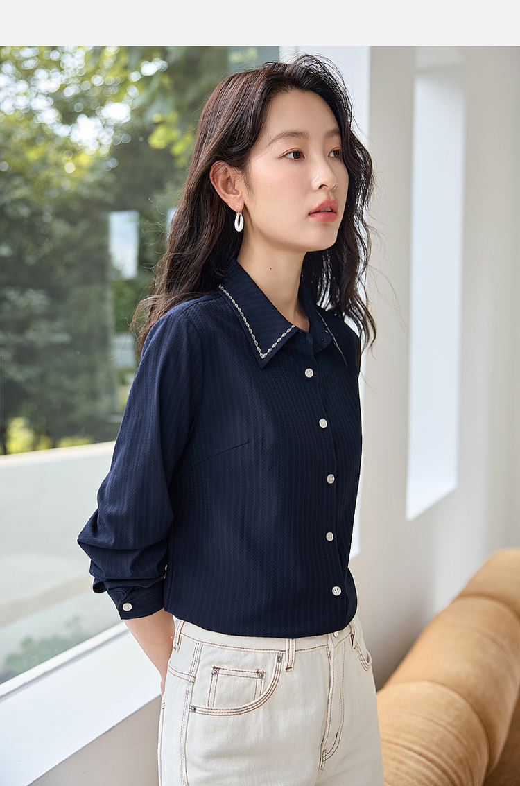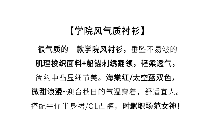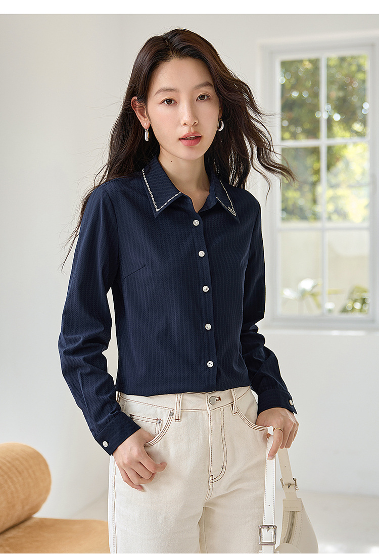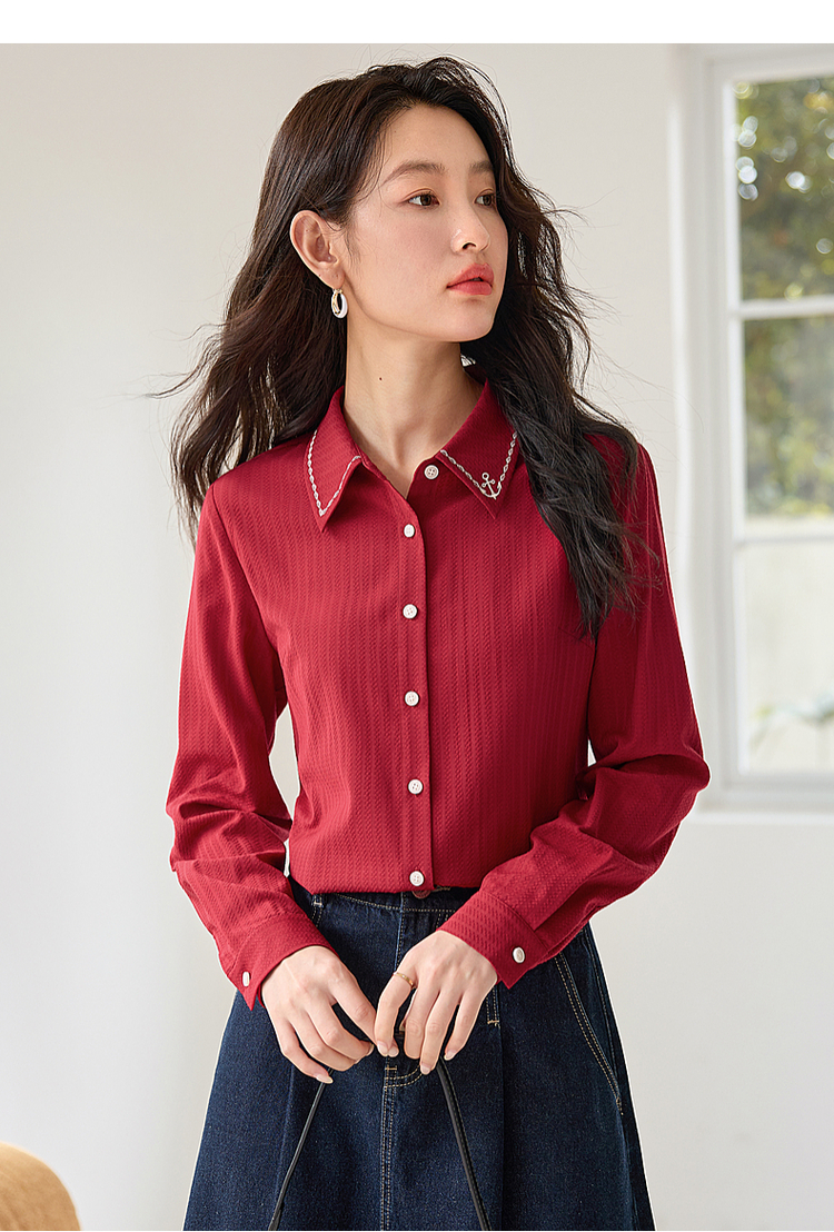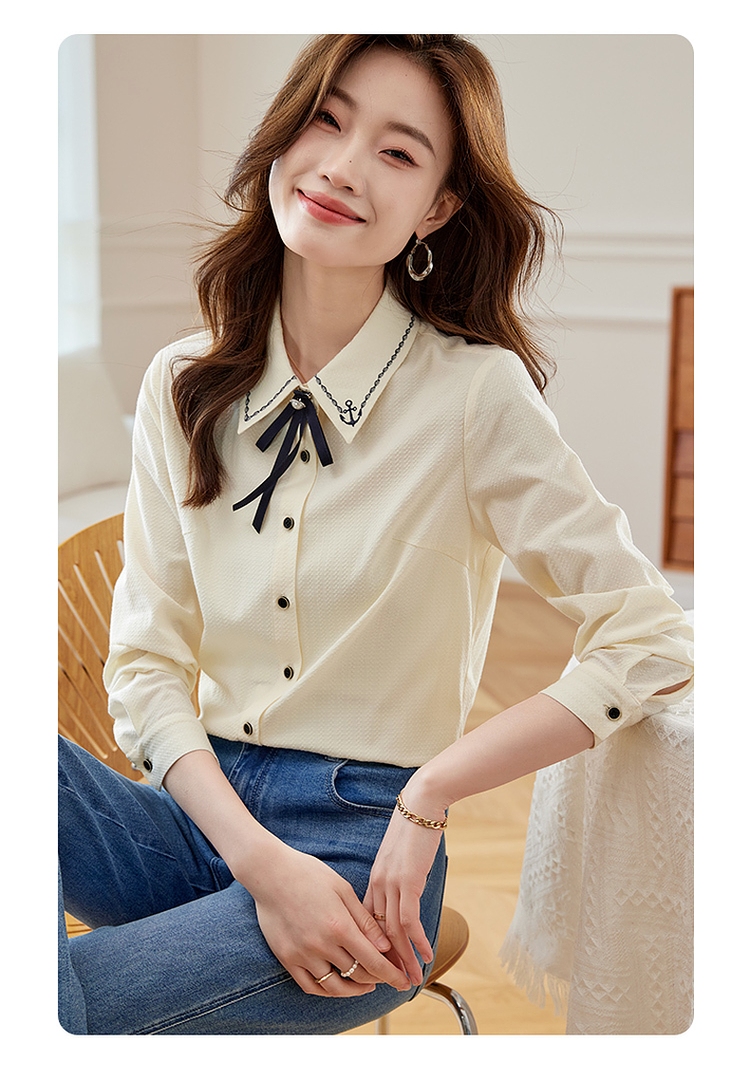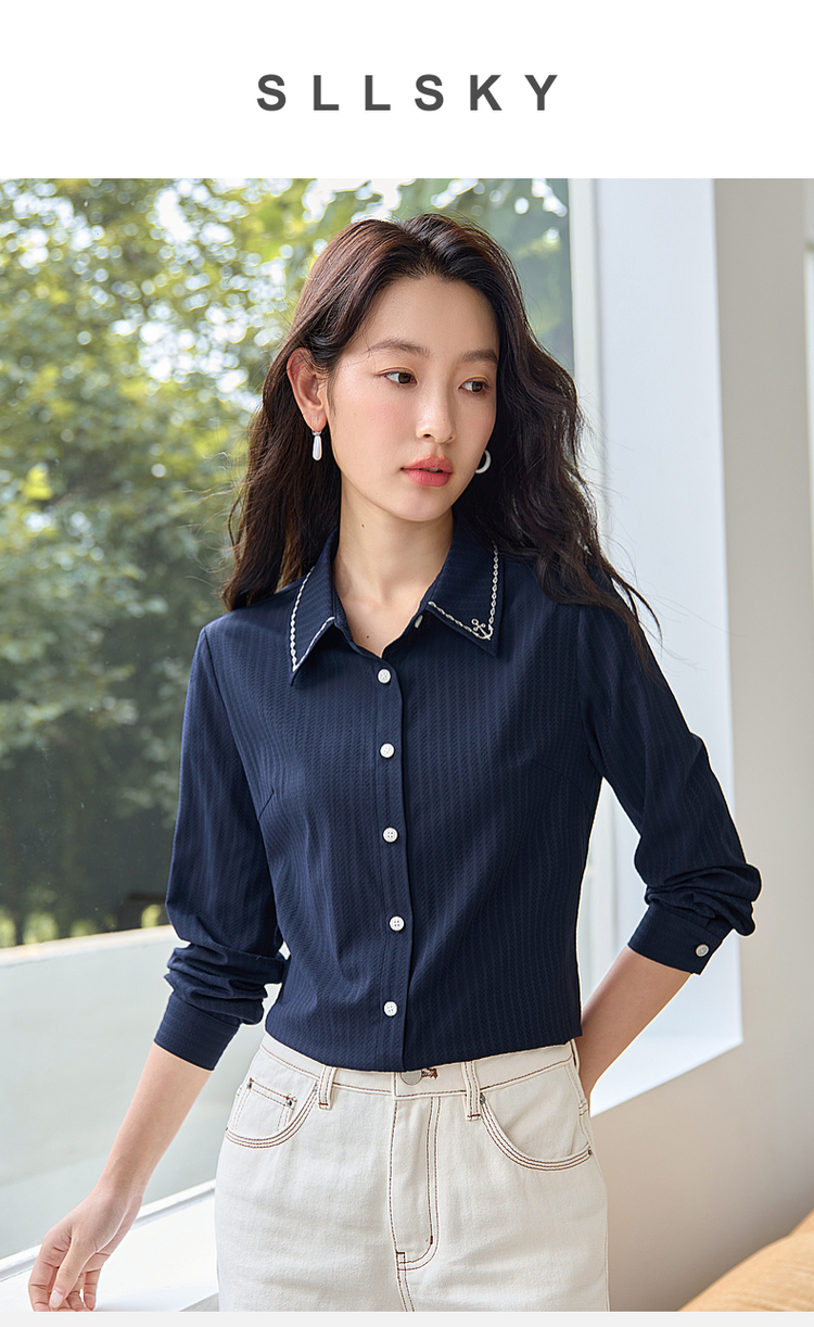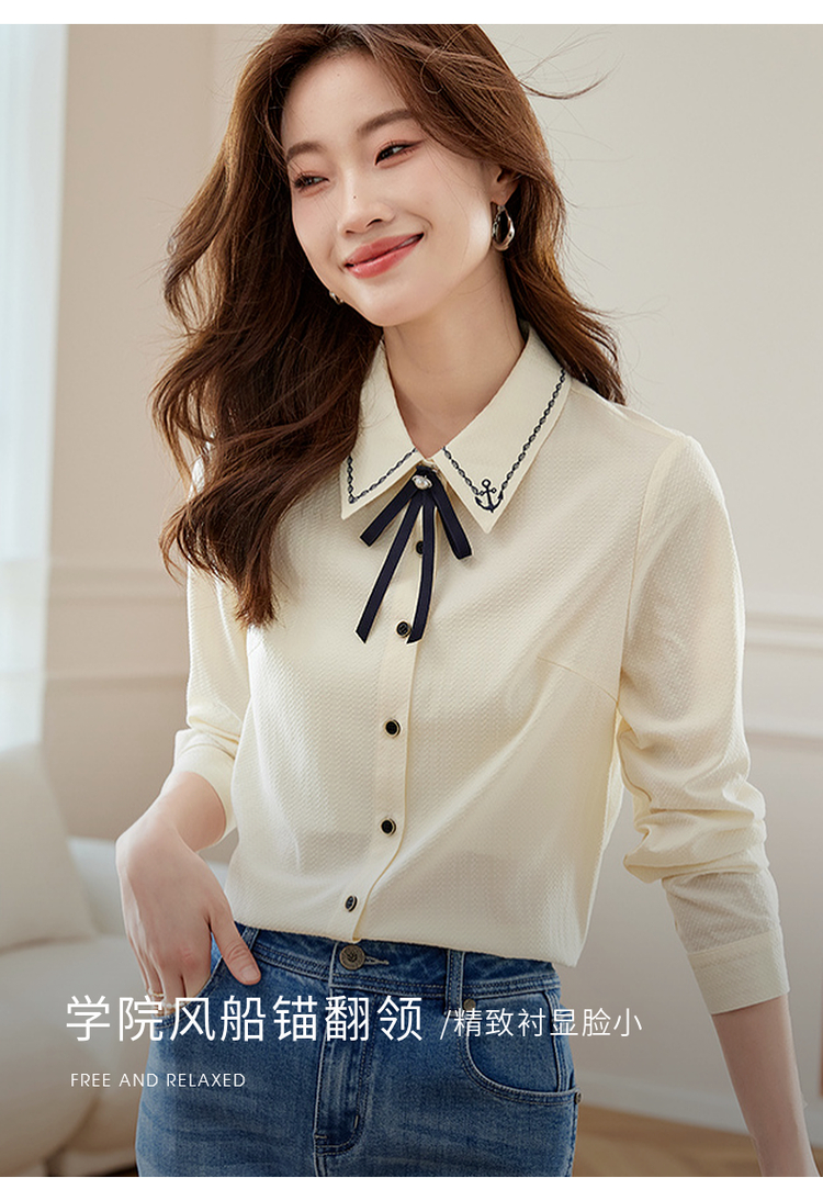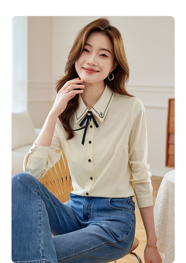 【专属特价】熙世界学院风气质长袖衬衫2025秋装新款高级感洋气刺绣翻领衬衣