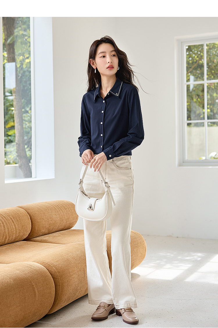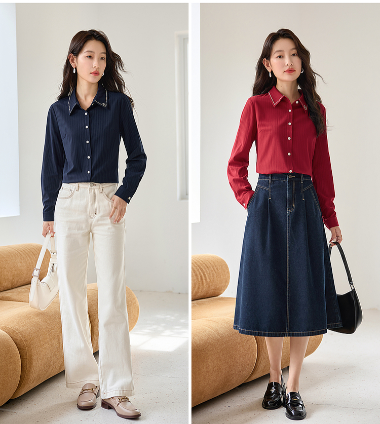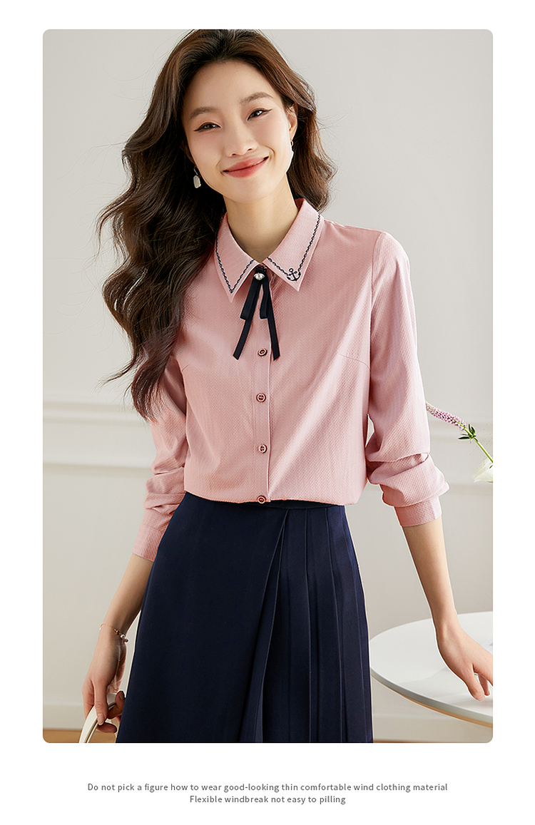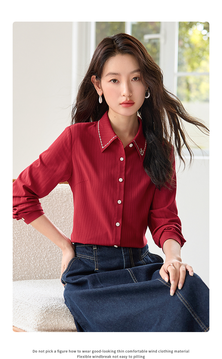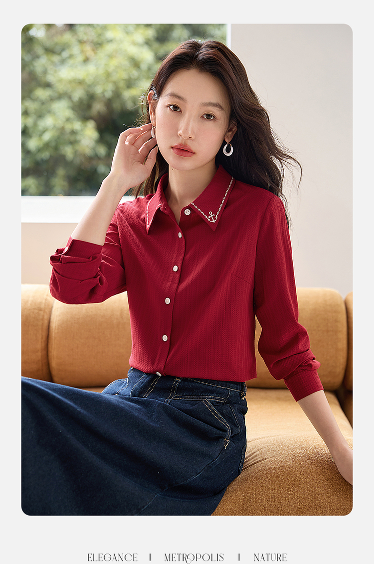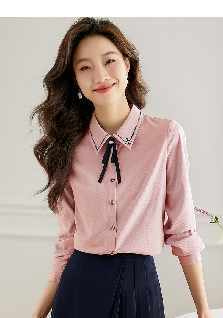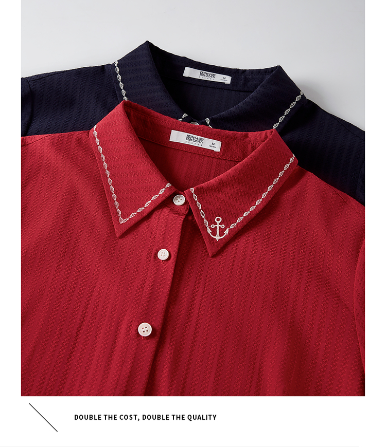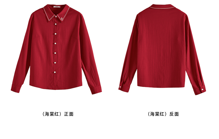 【专属特价】熙世界学院风气质长袖衬衫2025秋装新款高级感洋气刺绣翻领衬衣