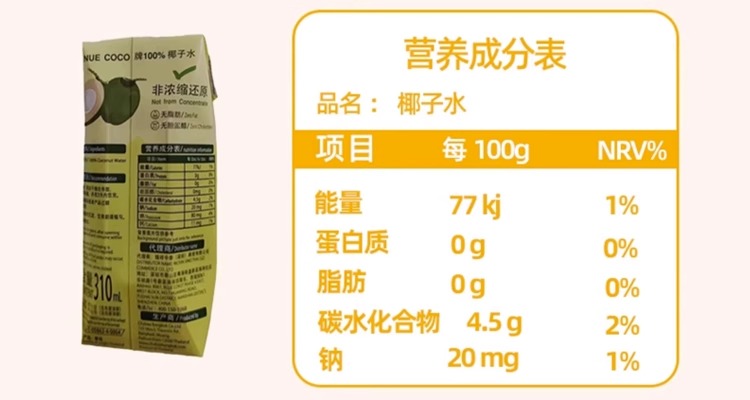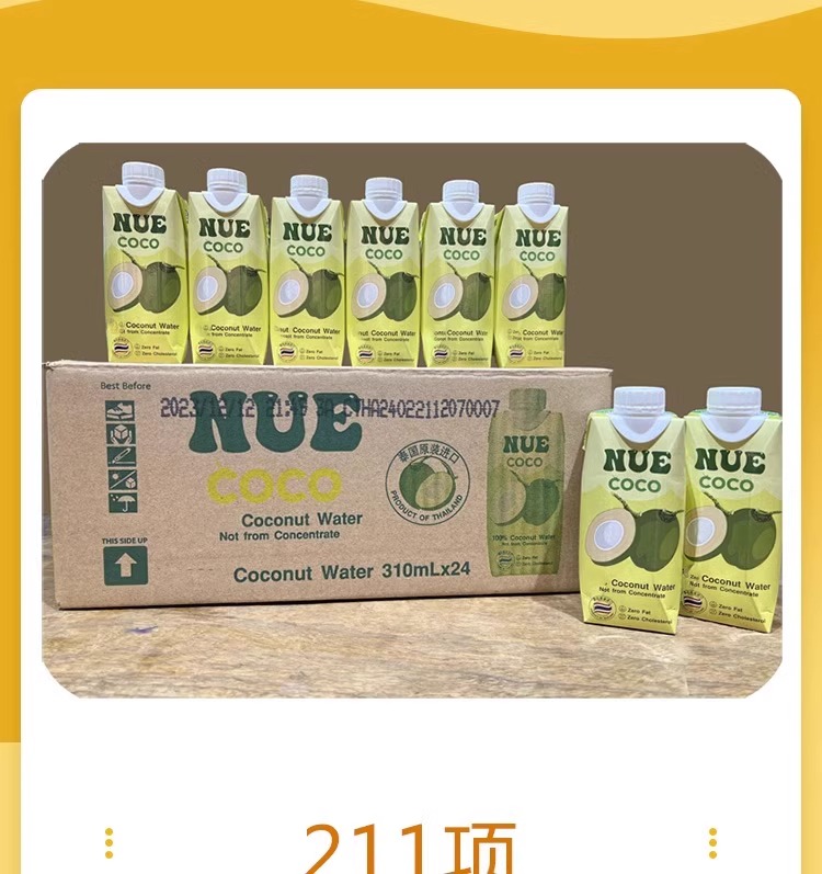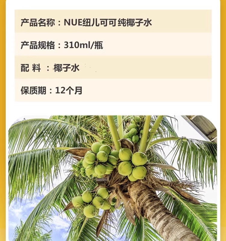 NUEcoco椰子水纽尔可可泰国进口100%纯椰汁饮料香椰水富含电解质