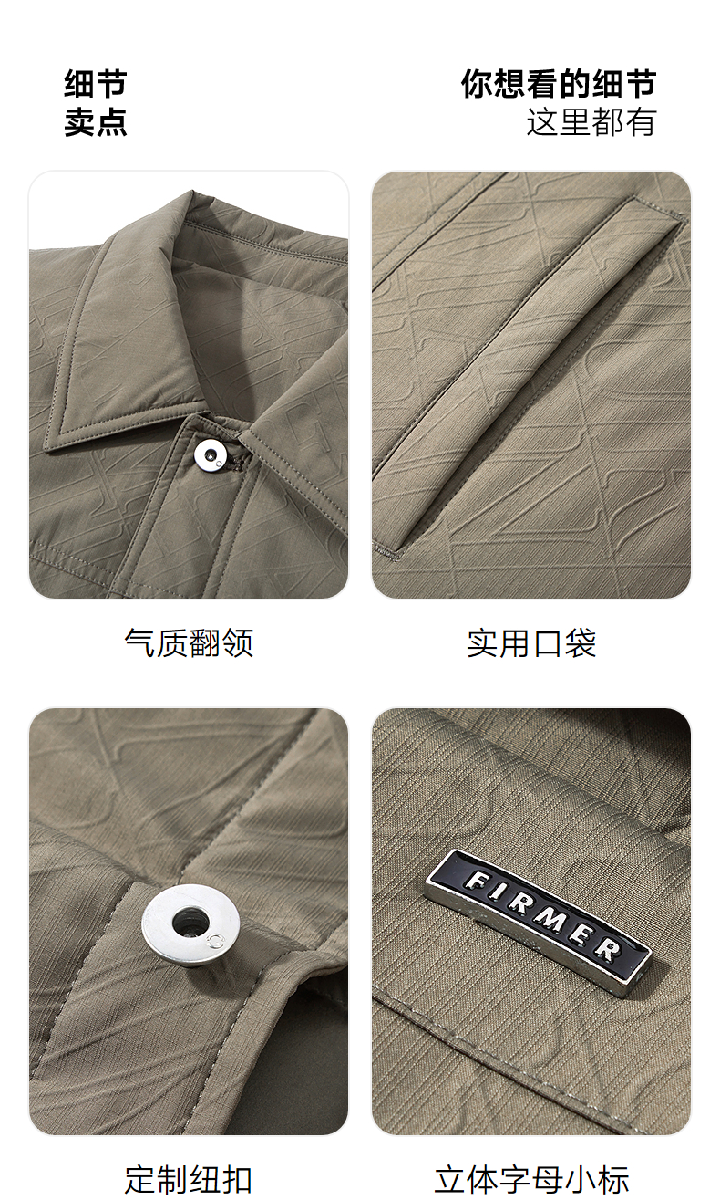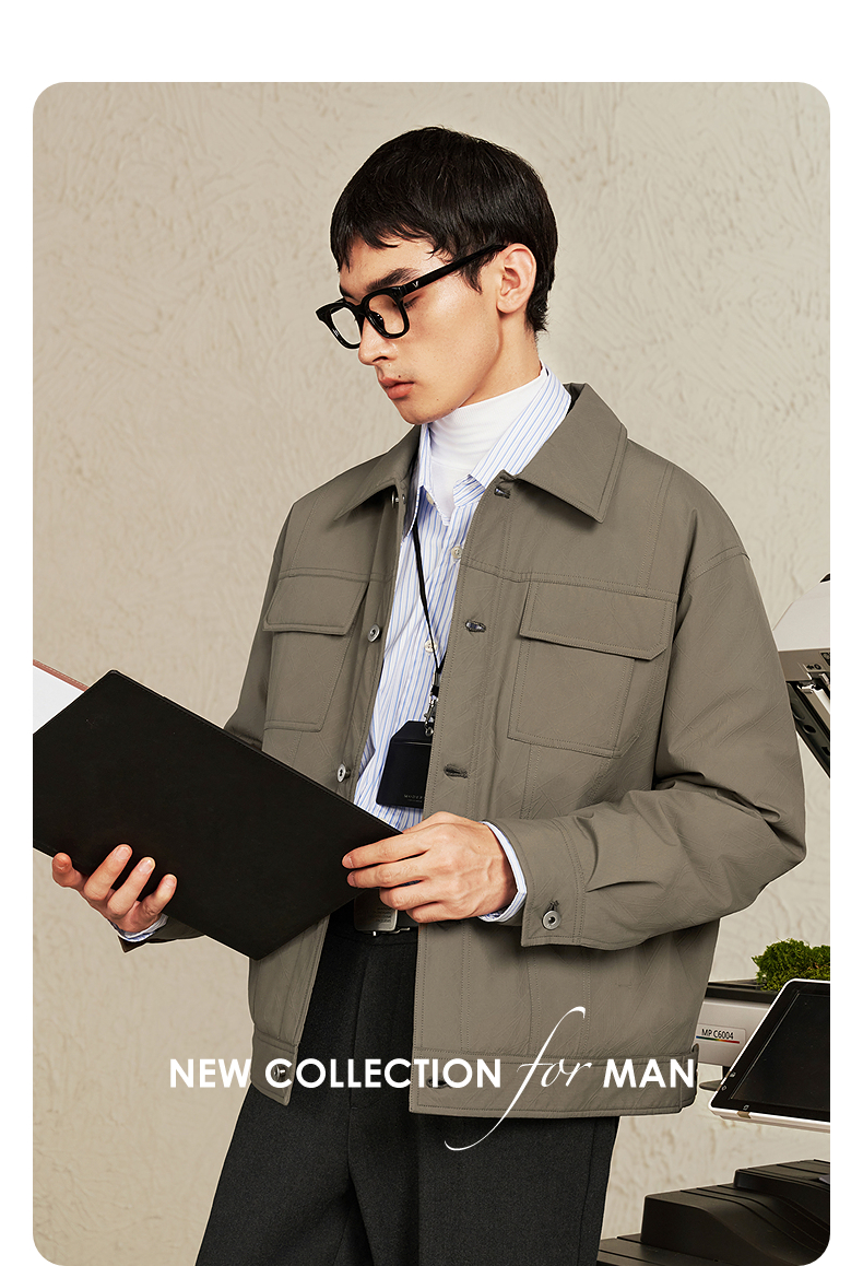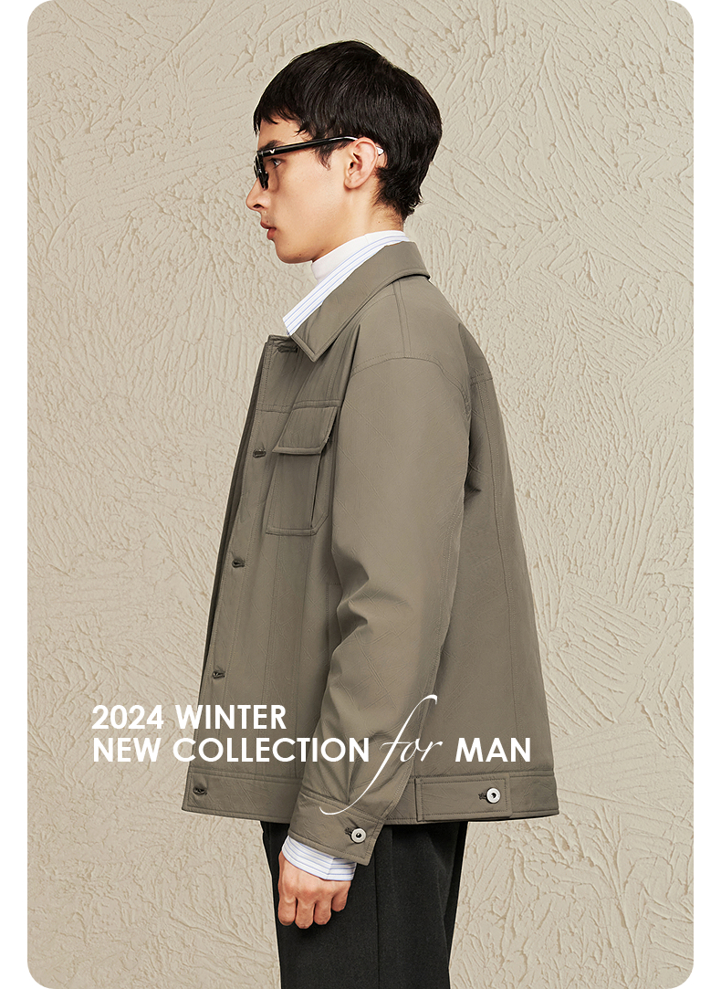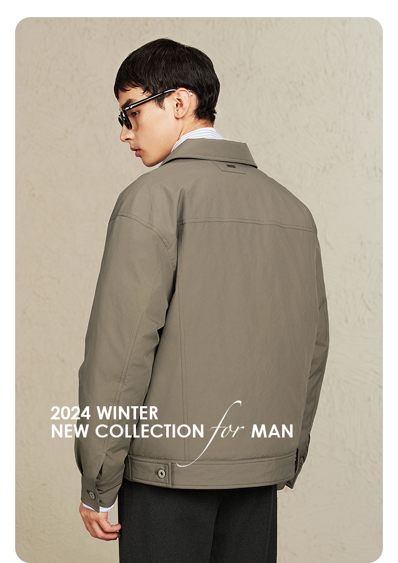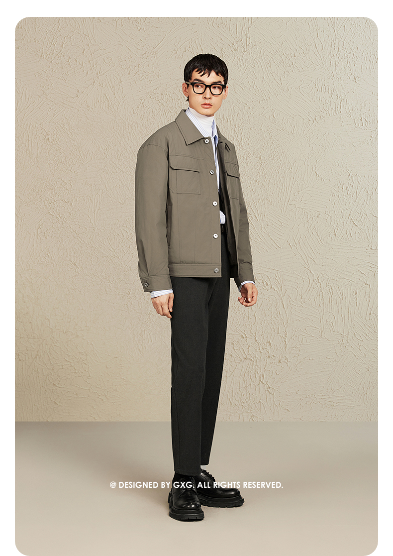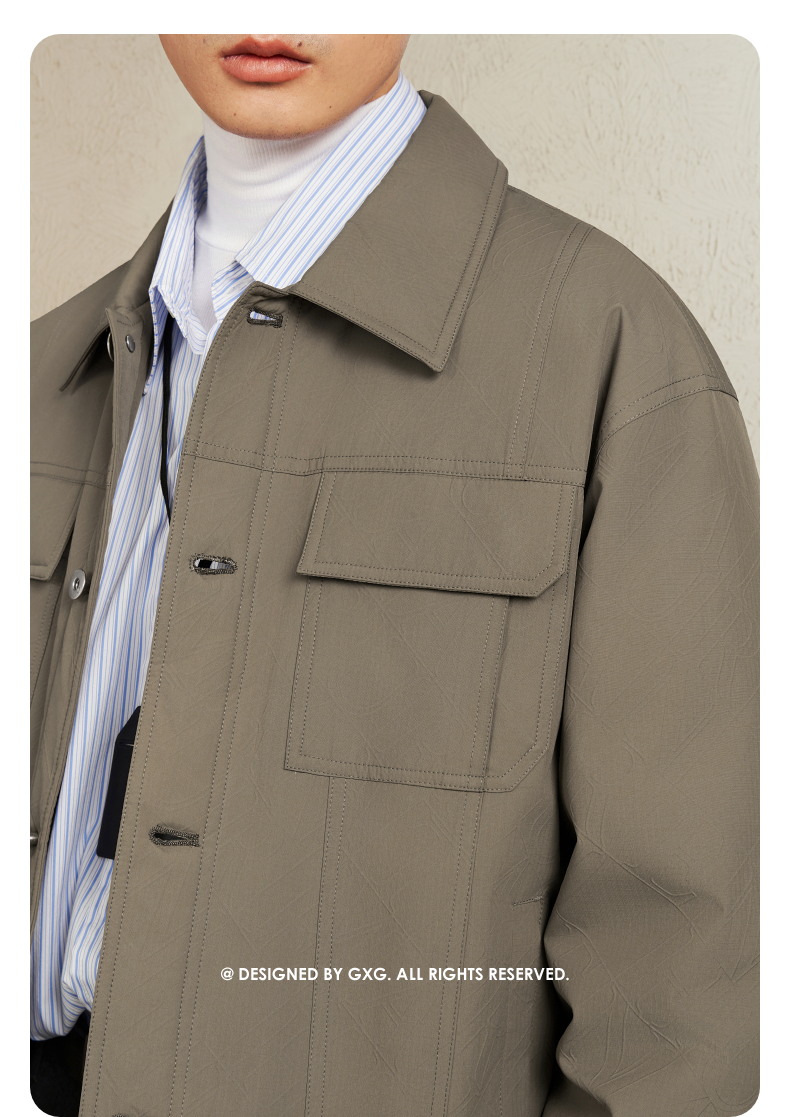 【衬衫式】GXG男装 满版压花工装轻薄羽绒服男通勤外套24冬季热卖