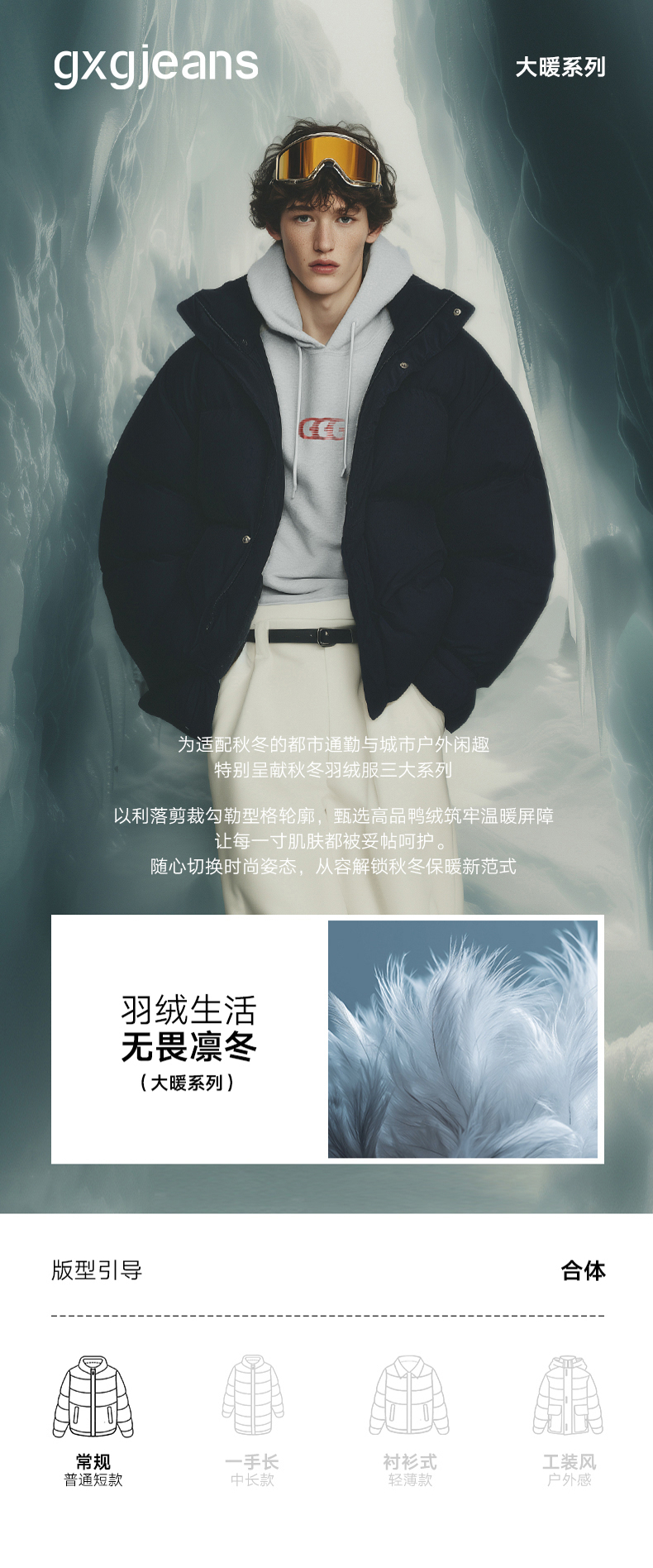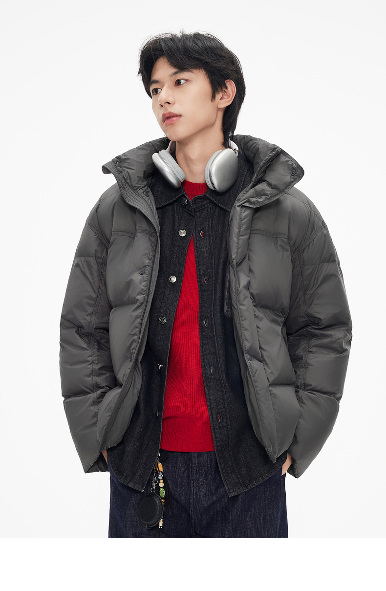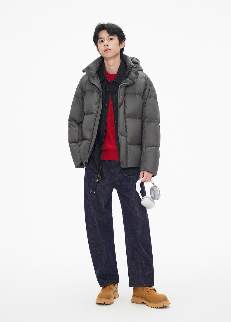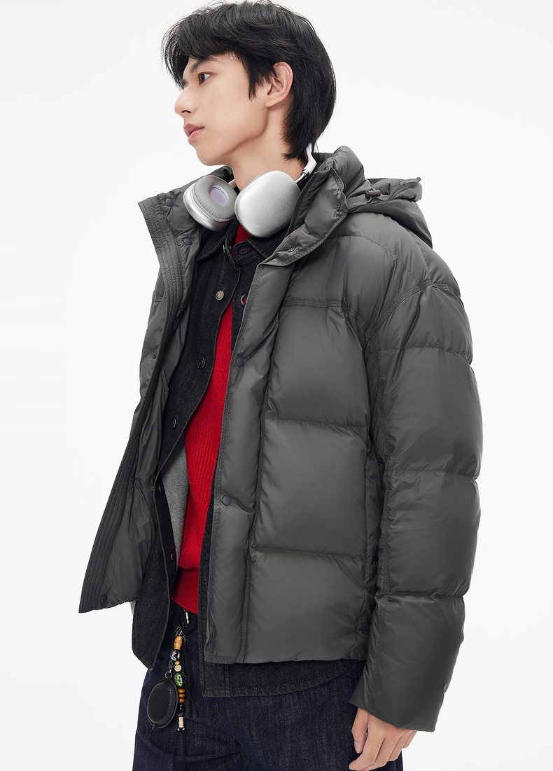 gxg.jeans男装 灰色简约休闲保暖面包服羽绒服外套男 25年冬
