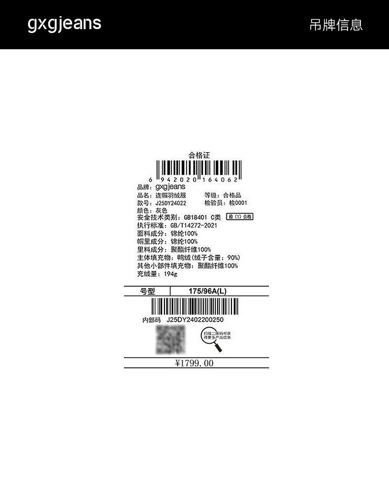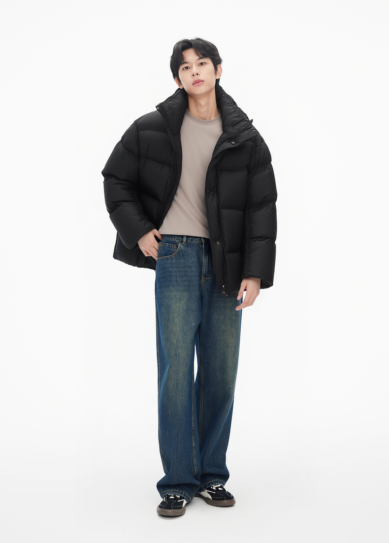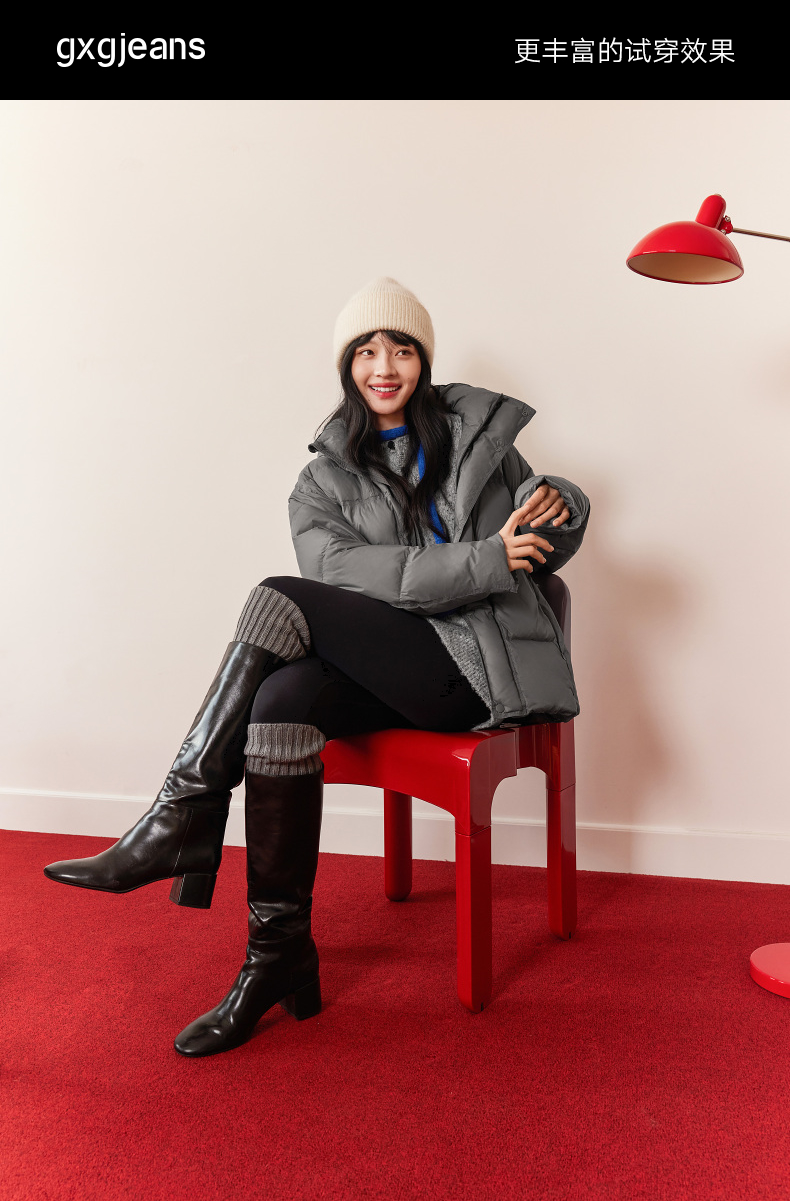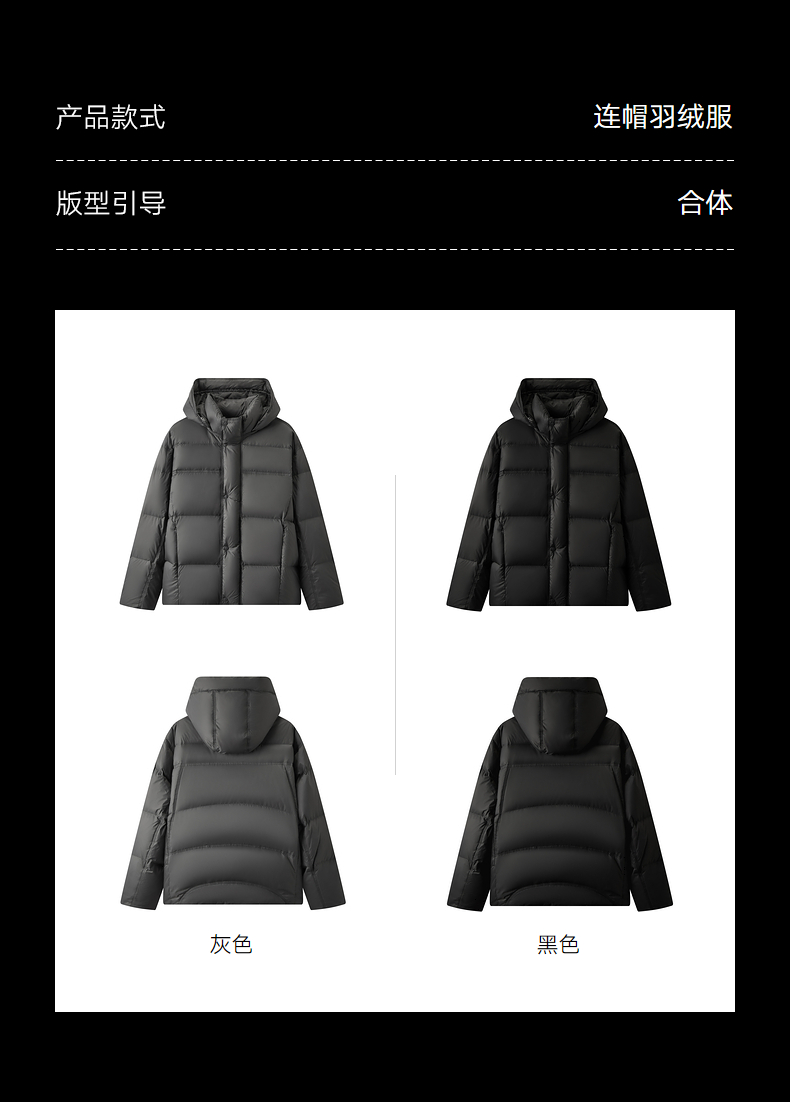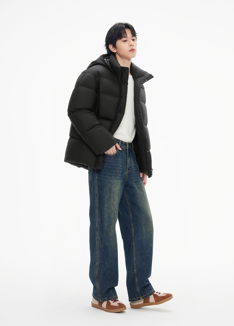 gxg.jeans男装 灰色简约休闲保暖面包服羽绒服外套男 25年冬