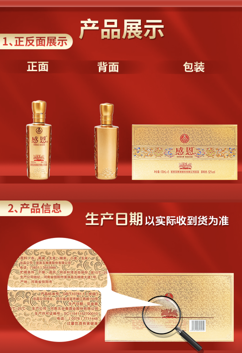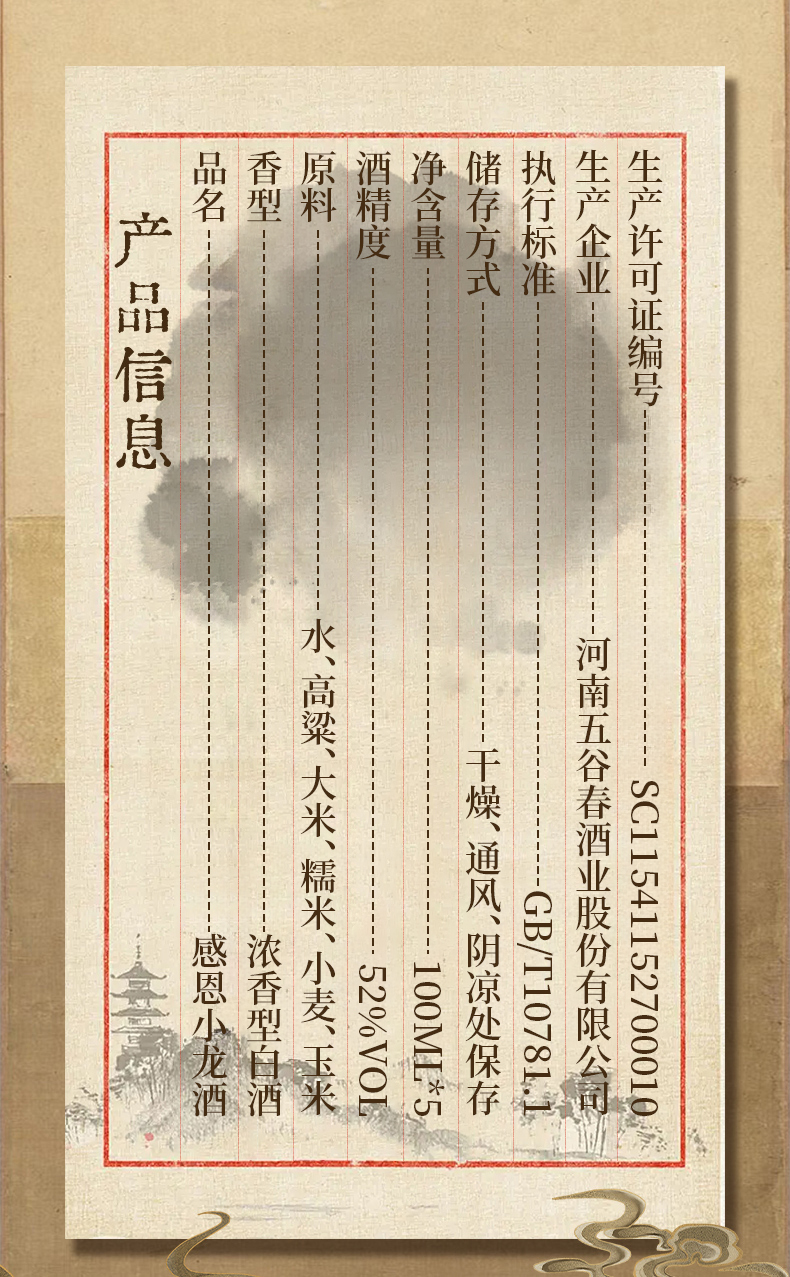 【小来】粉丝专享特价🧧五粮液股份公司出品 感恩⼩⻰酒礼盒5瓶 52度浓香型白酒