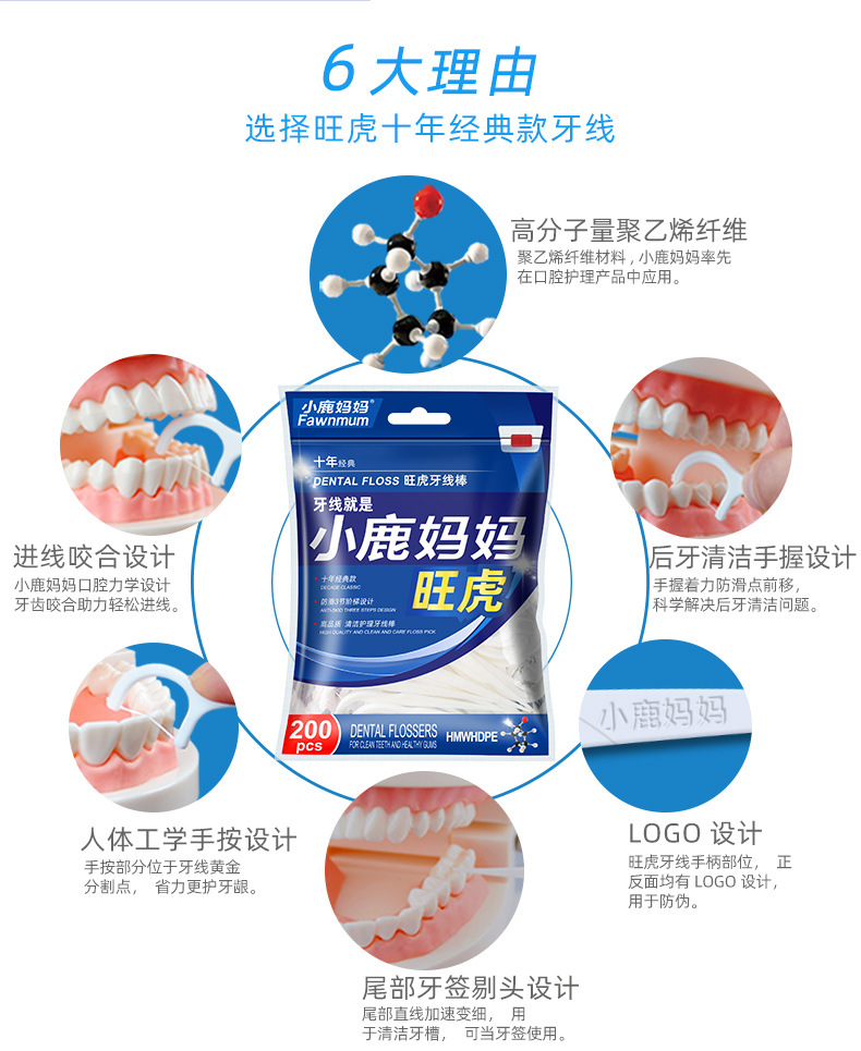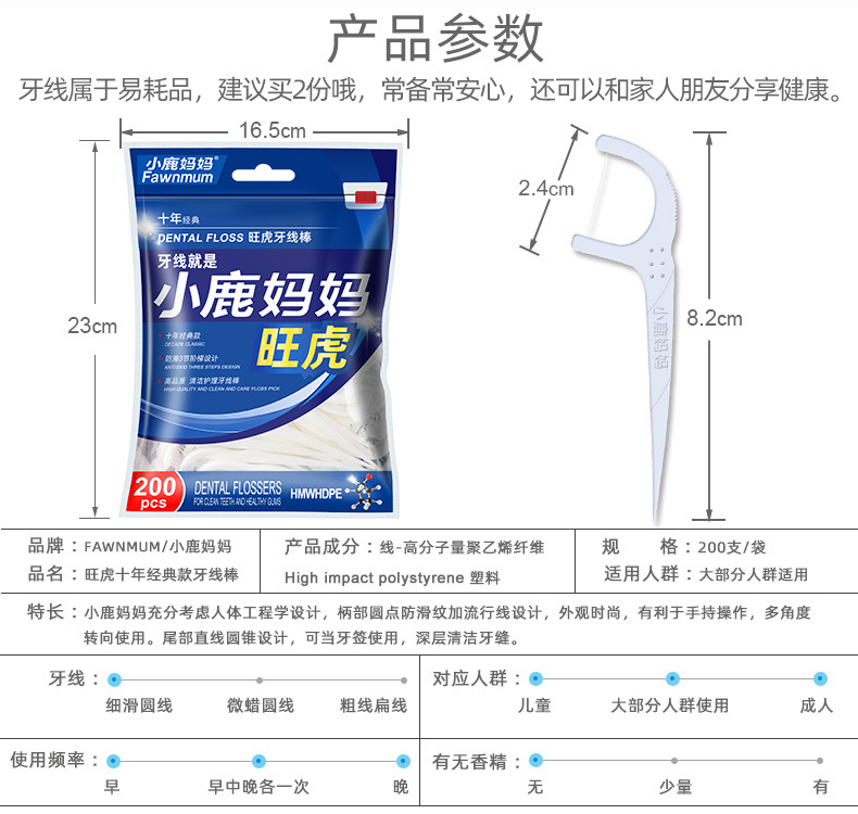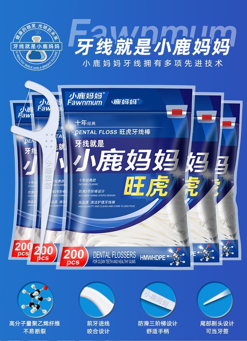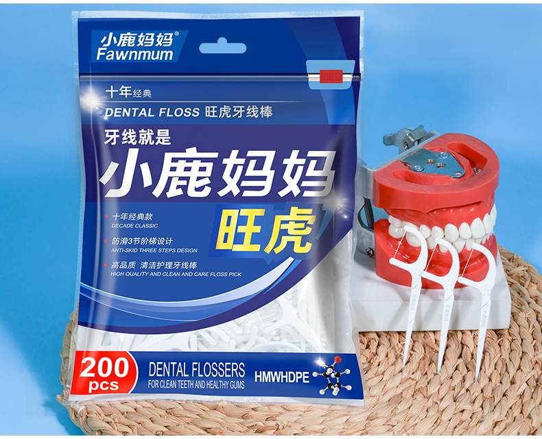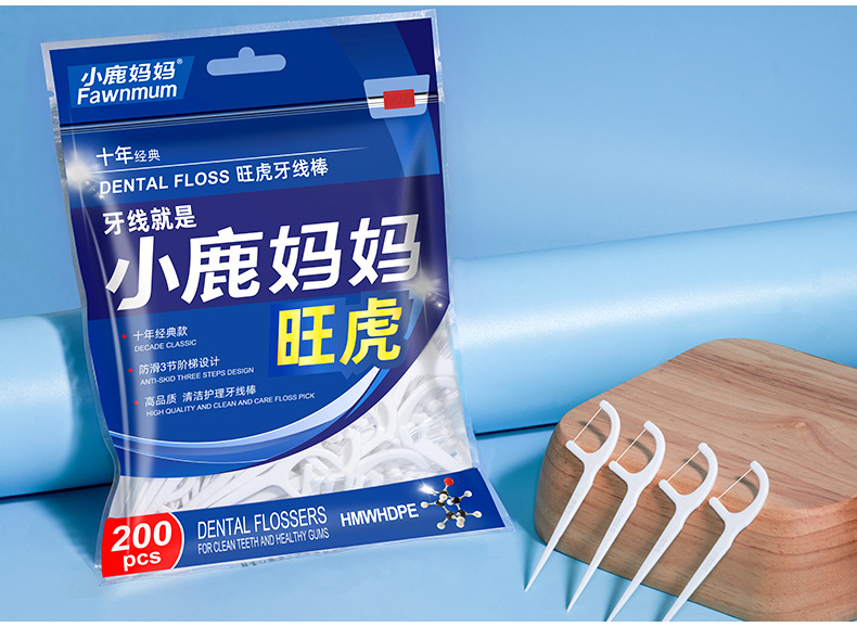 小鹿妈妈洁齿护理旺虎牙线棒200支/袋*3 (共600支)