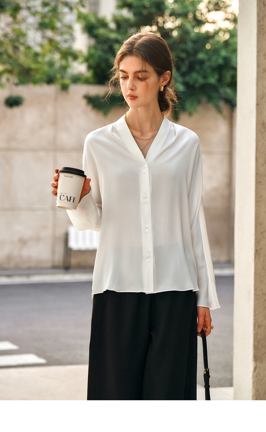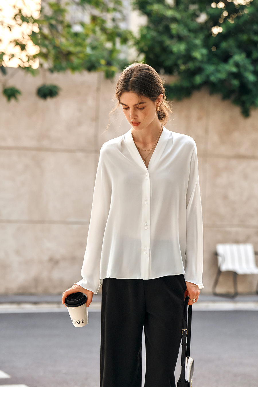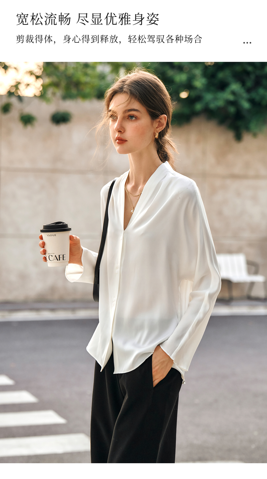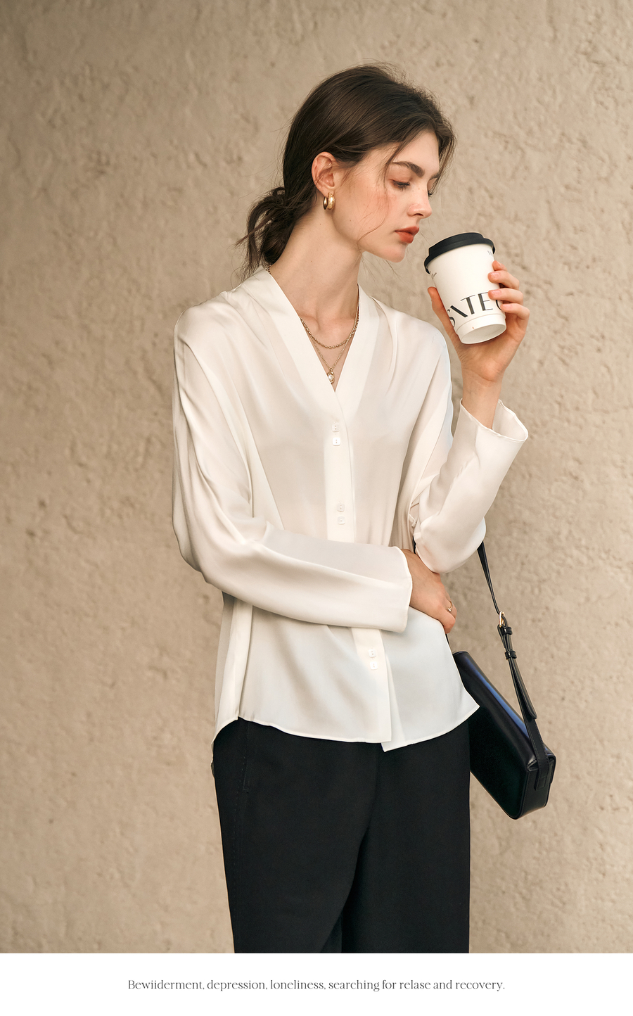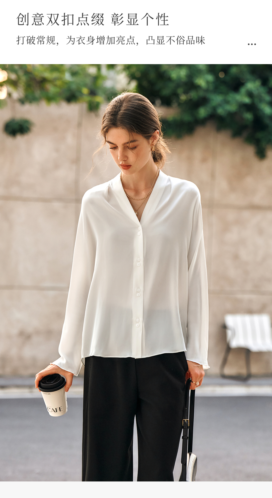 OLrain欧芮儿米白色V领衬衫女春季2025年新款简约通勤长袖衬衣