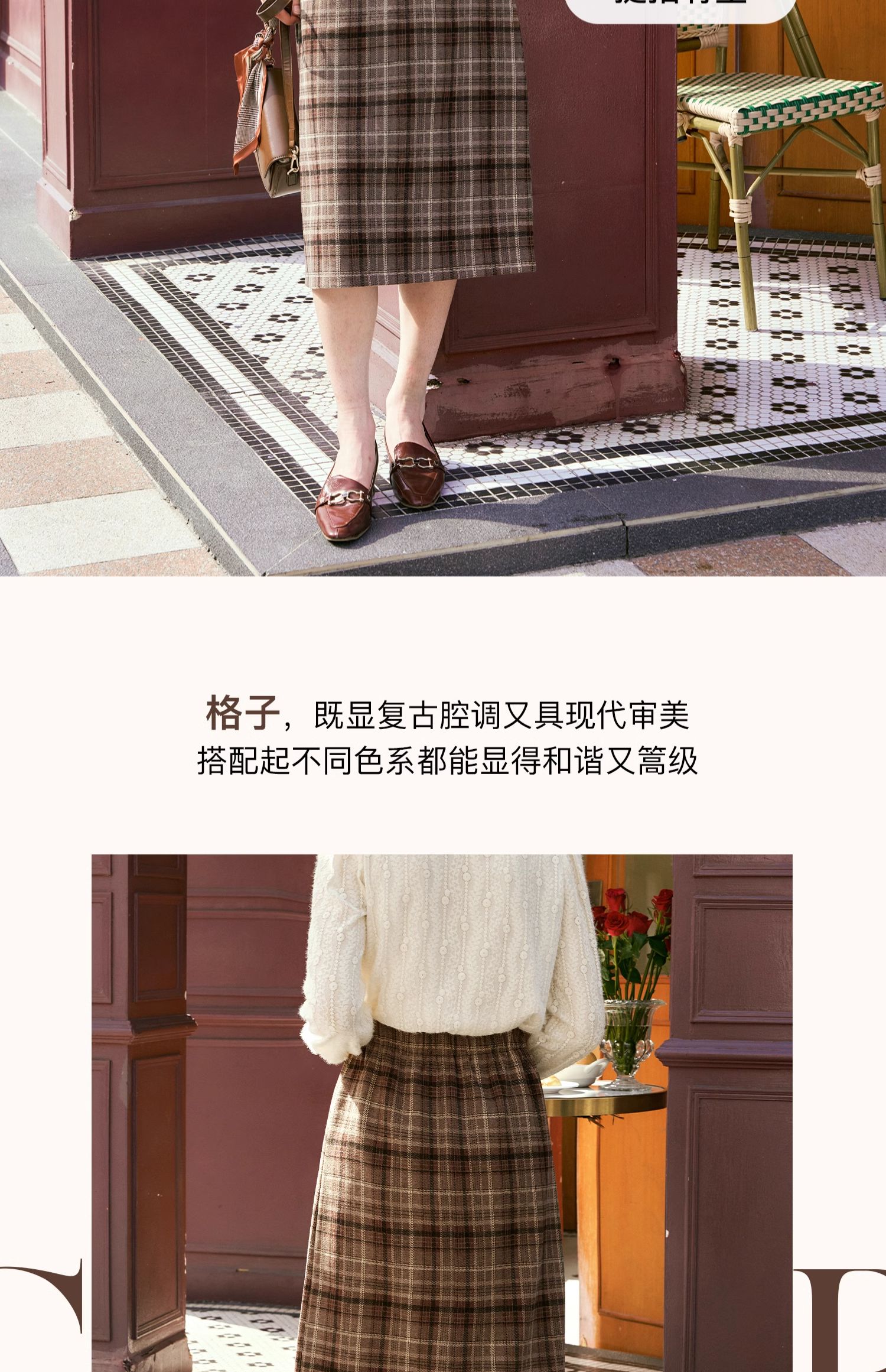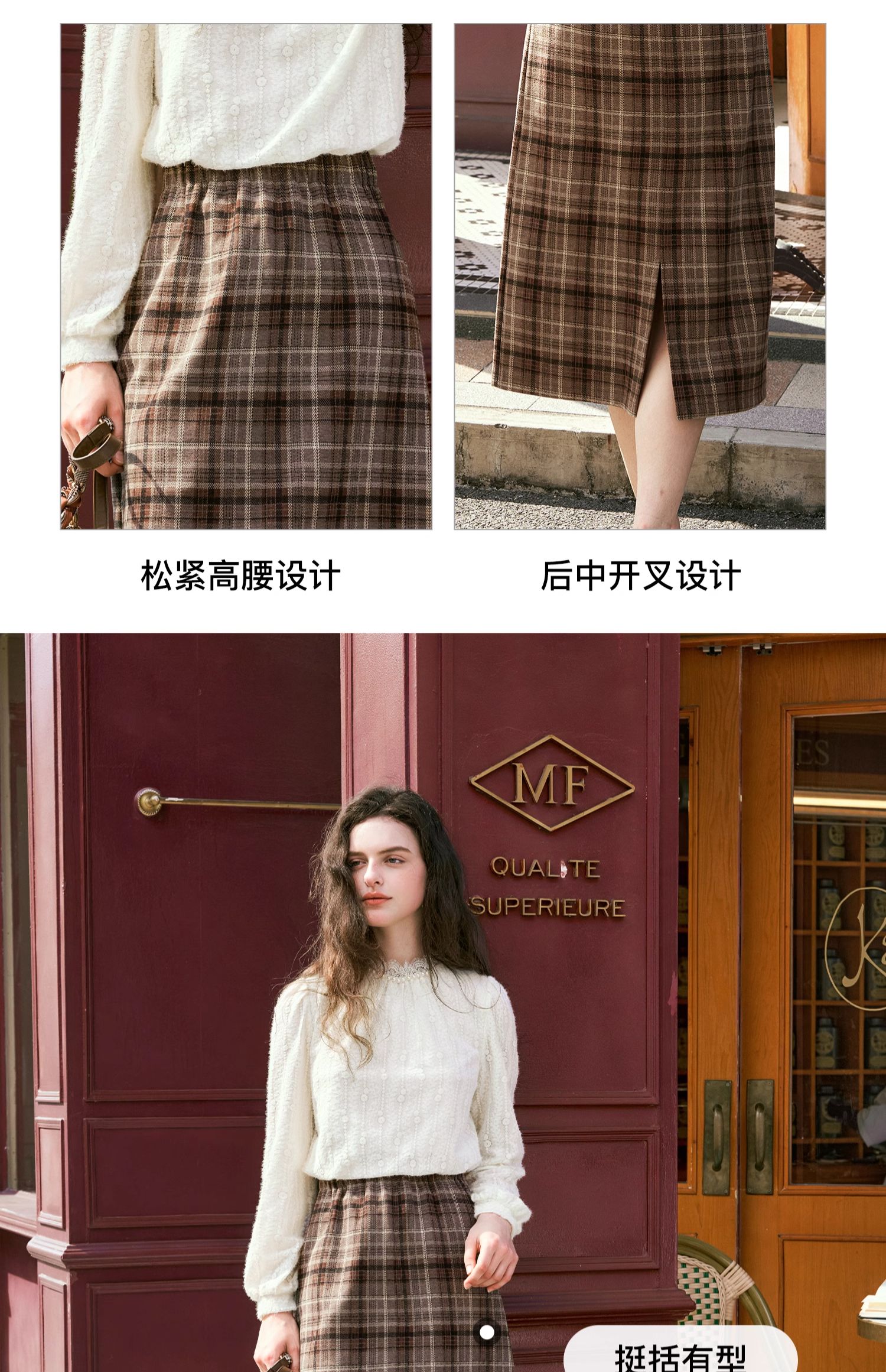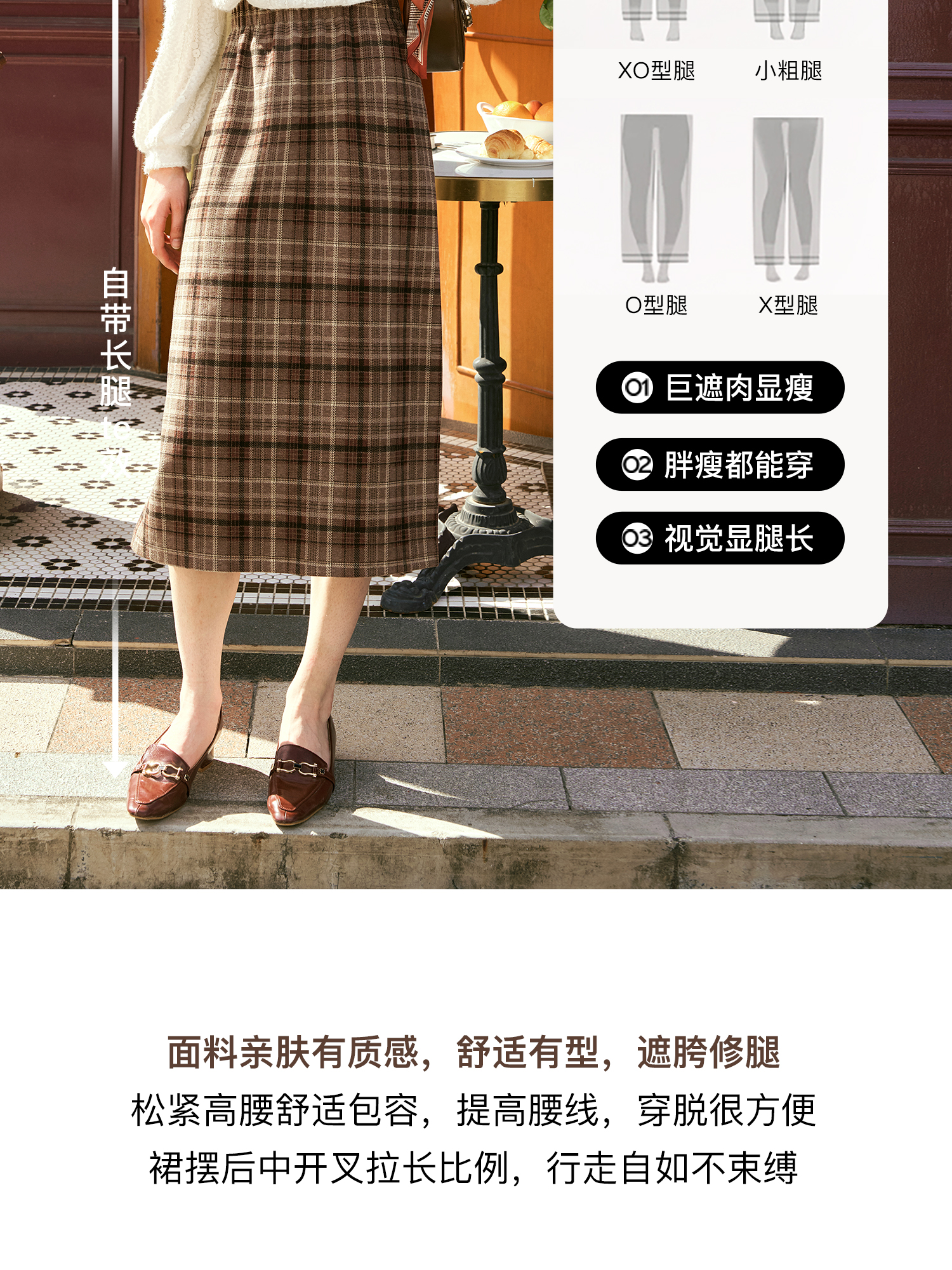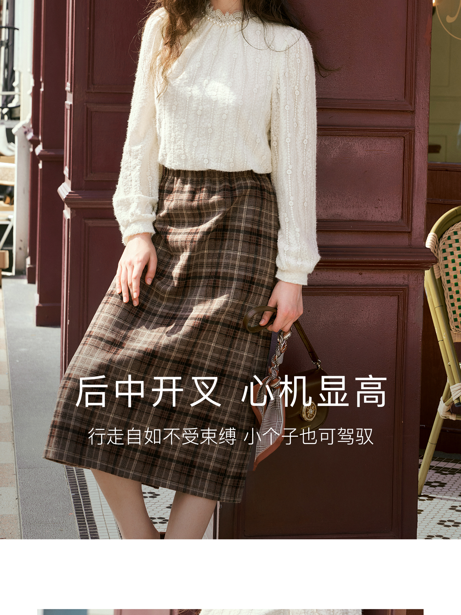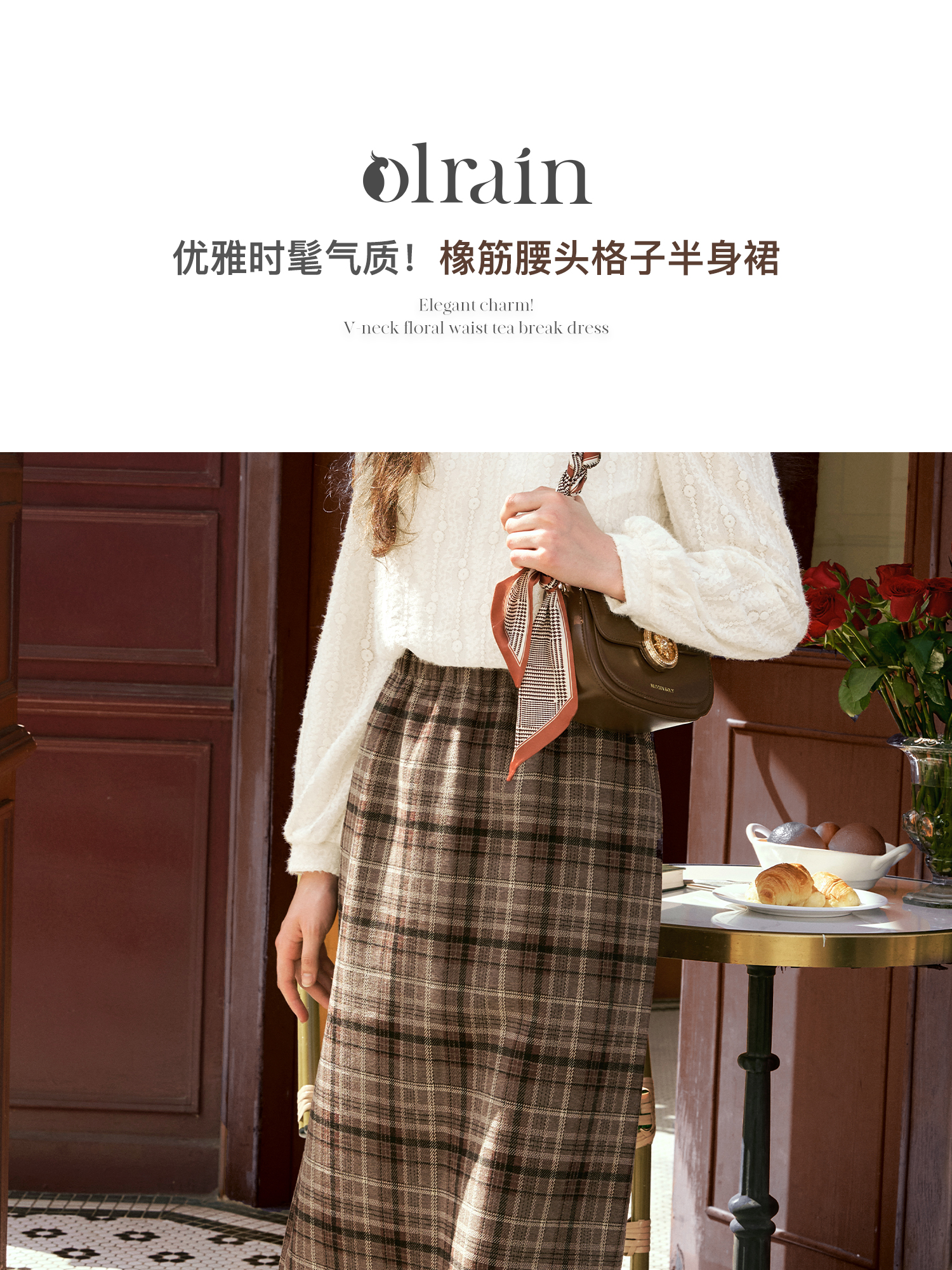 OLrain欧芮儿咖色格子半裙女秋季2024年新款百搭显瘦通勤半身裙