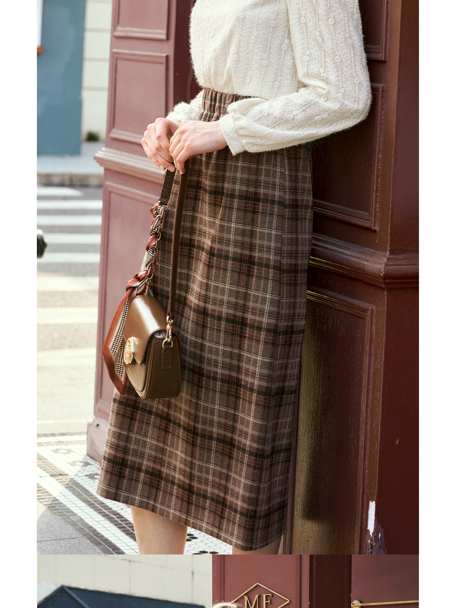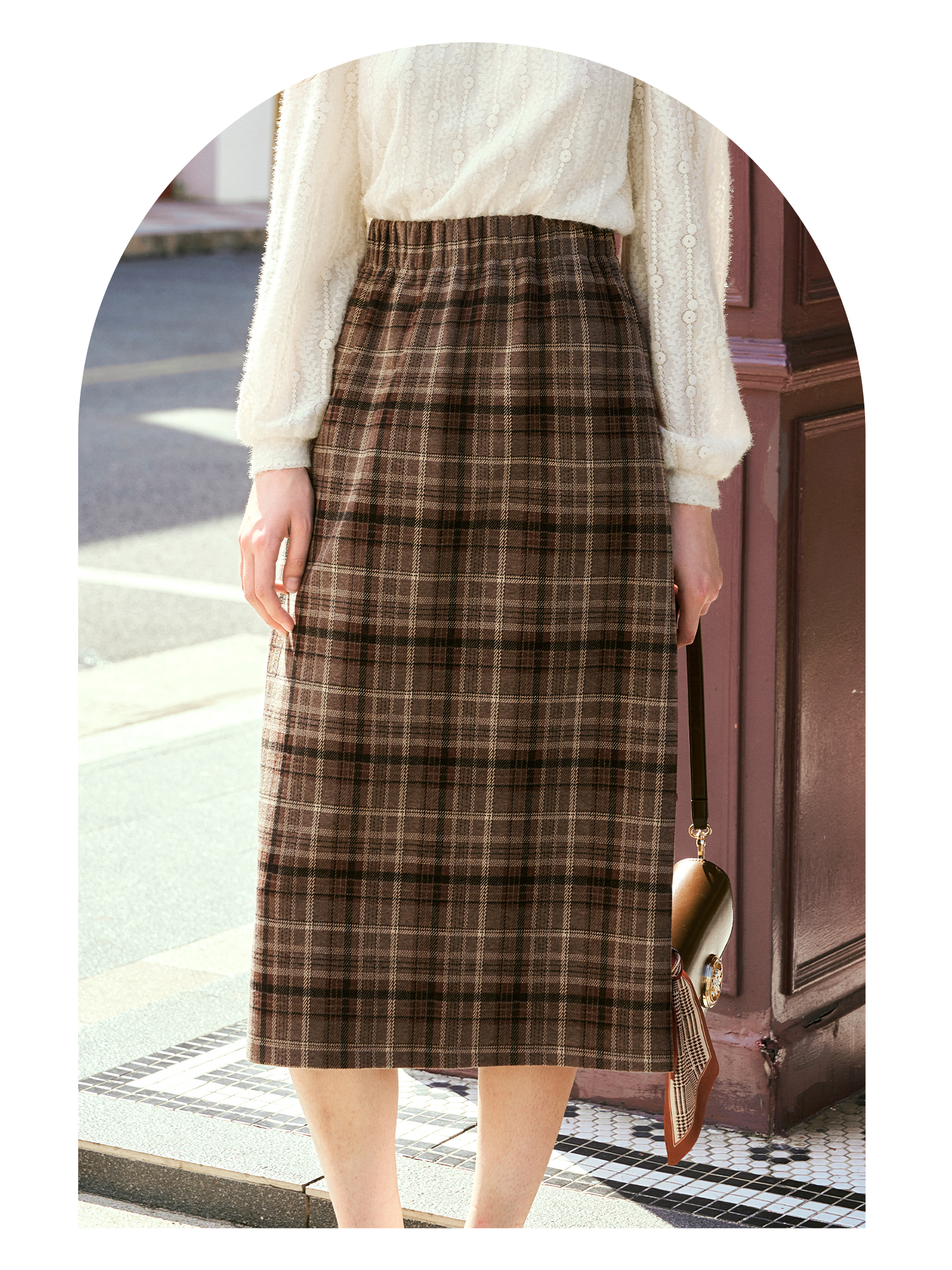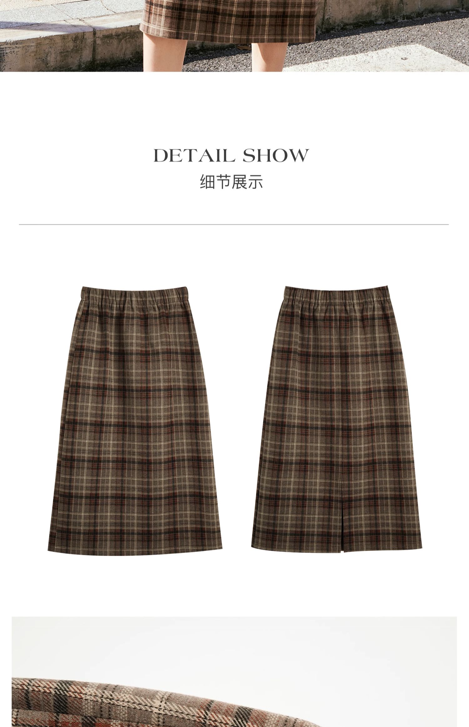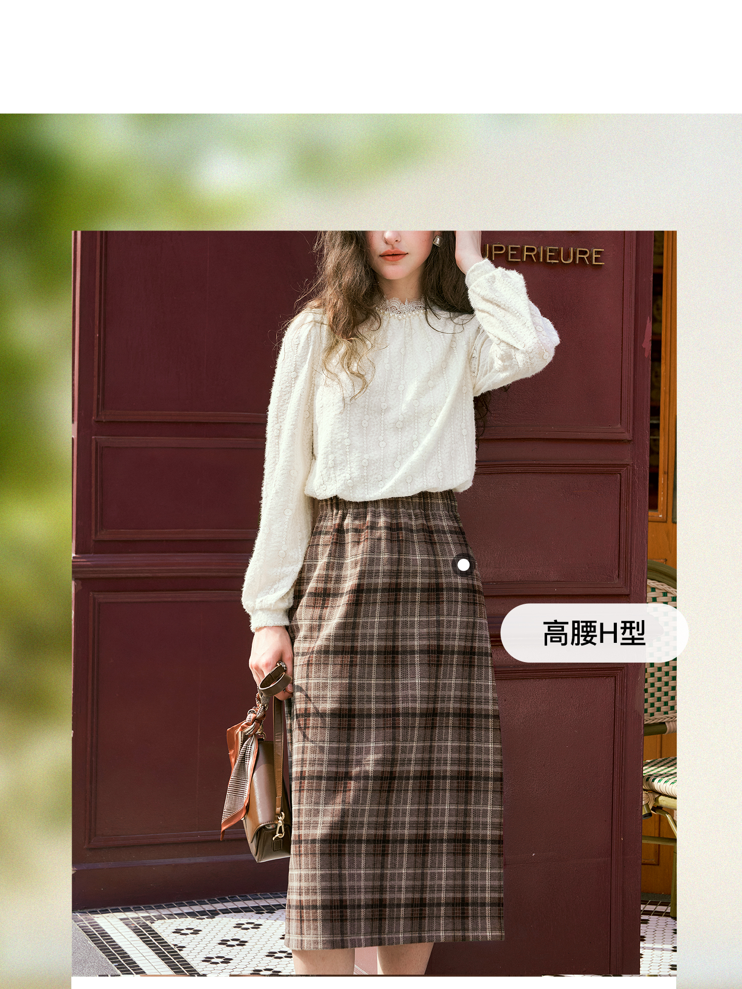 OLrain欧芮儿咖色格子半裙女秋季2024年新款百搭显瘦通勤半身裙