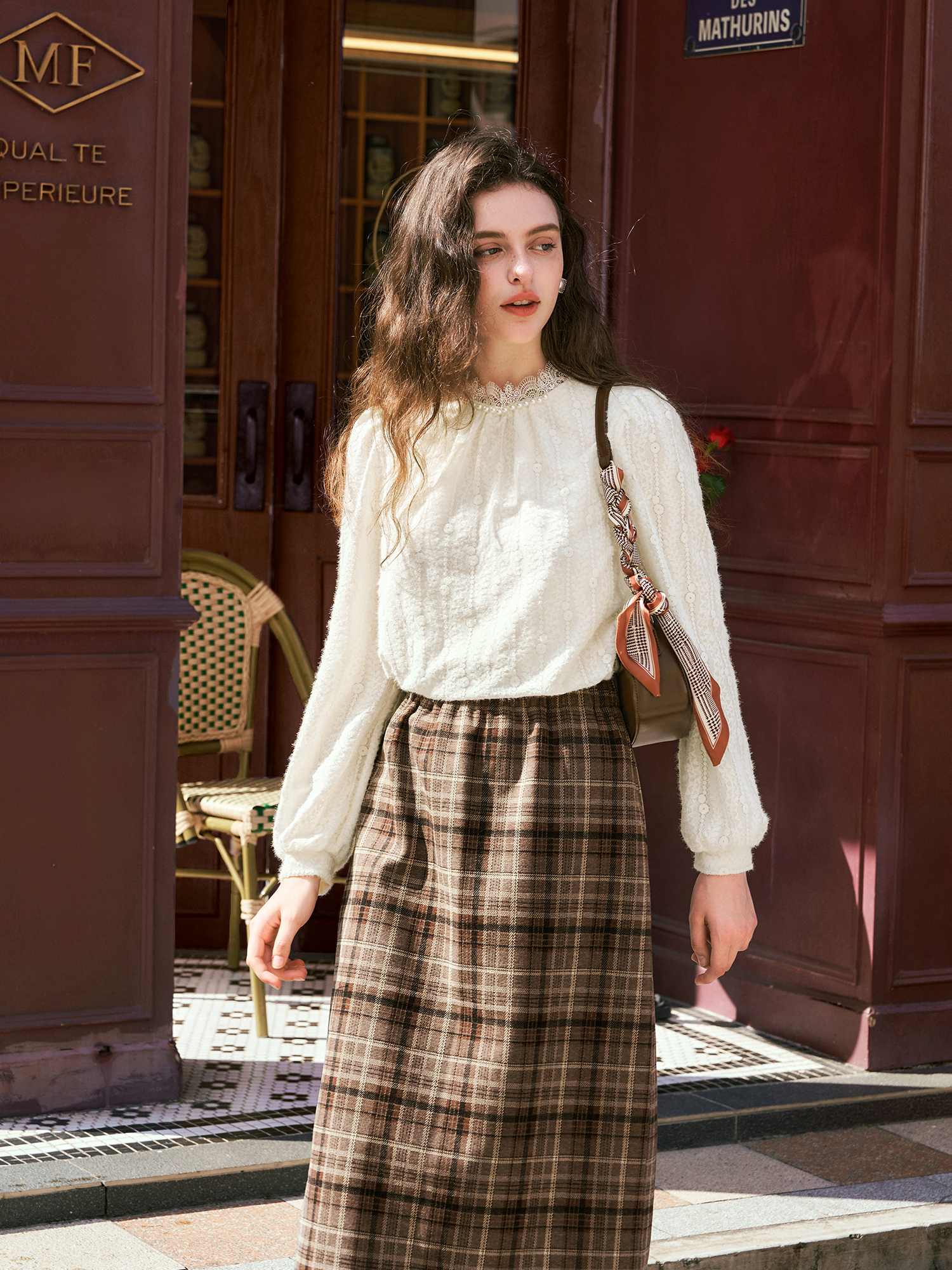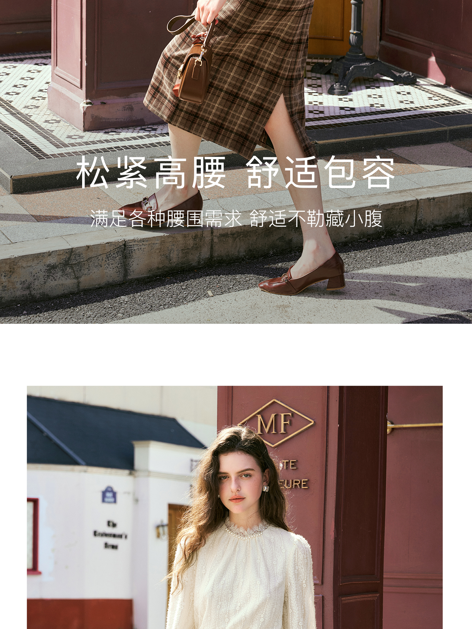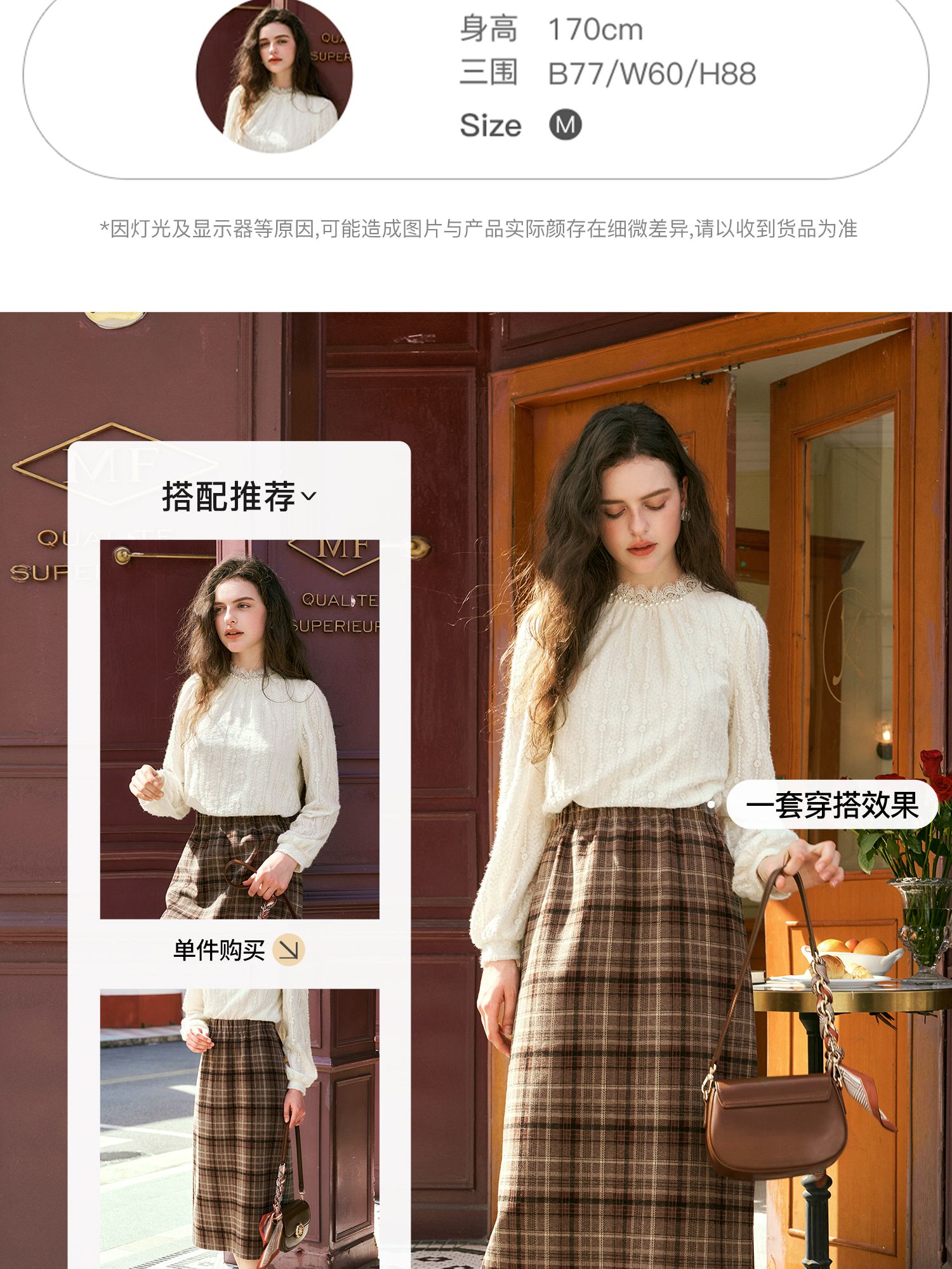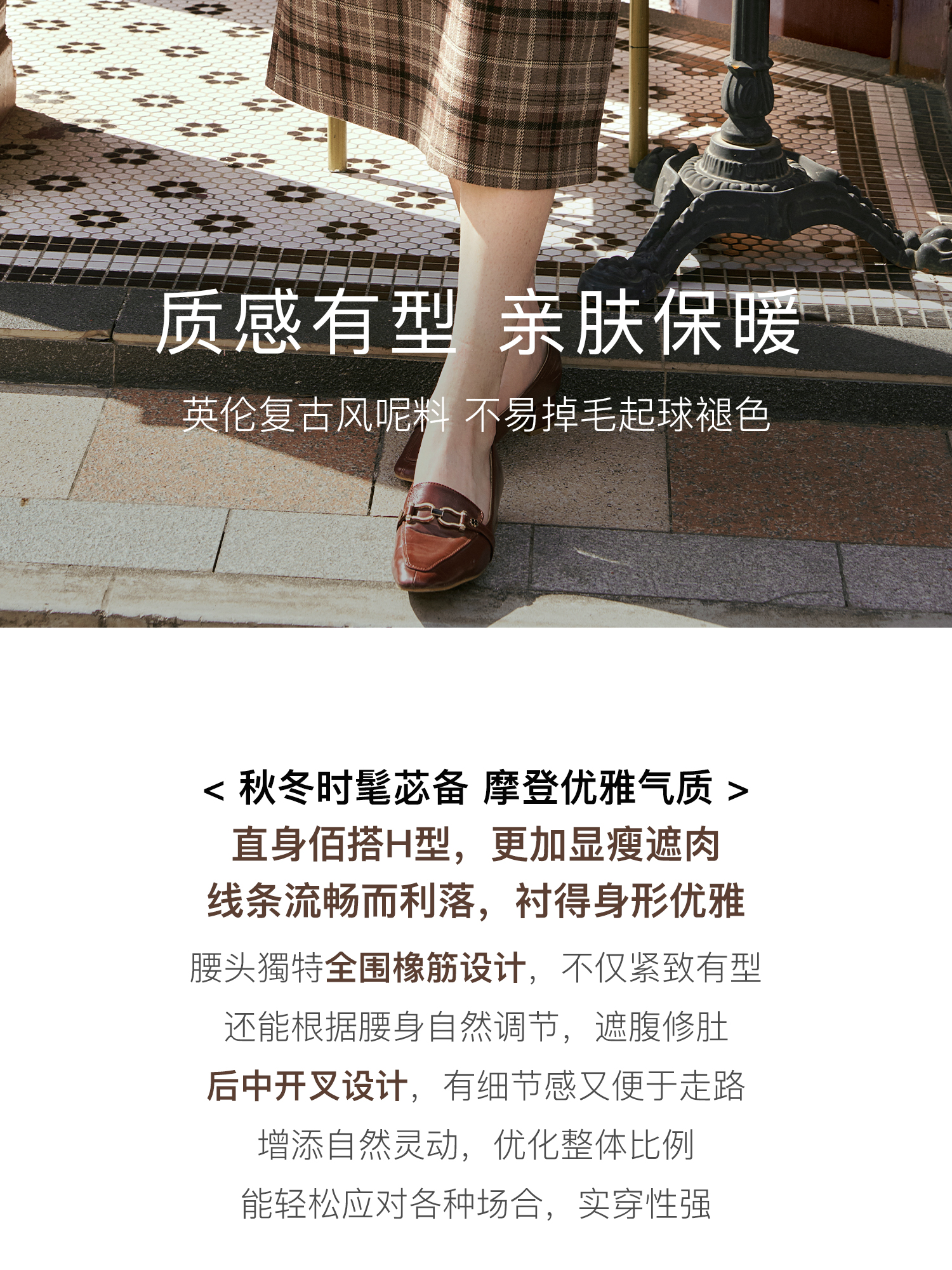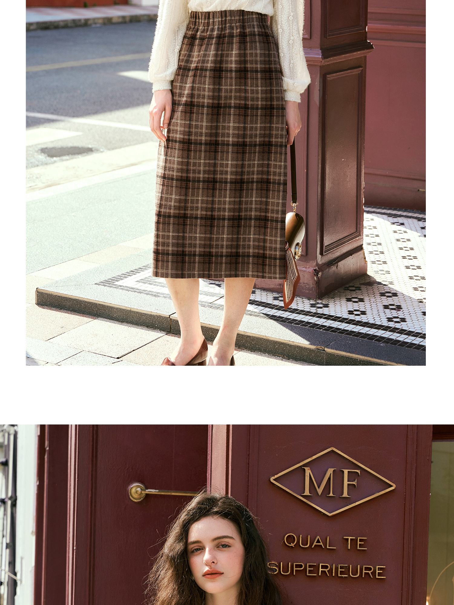OLrain欧芮儿咖色格子半裙女秋季2024年新款百搭显瘦通勤半身裙