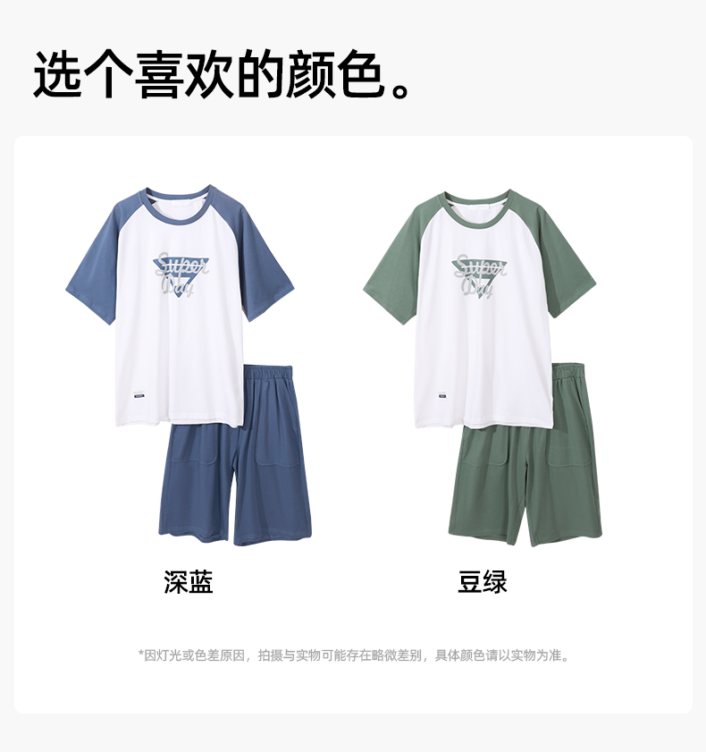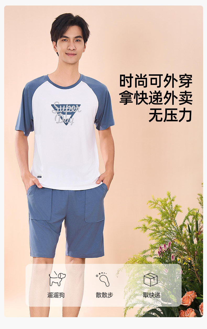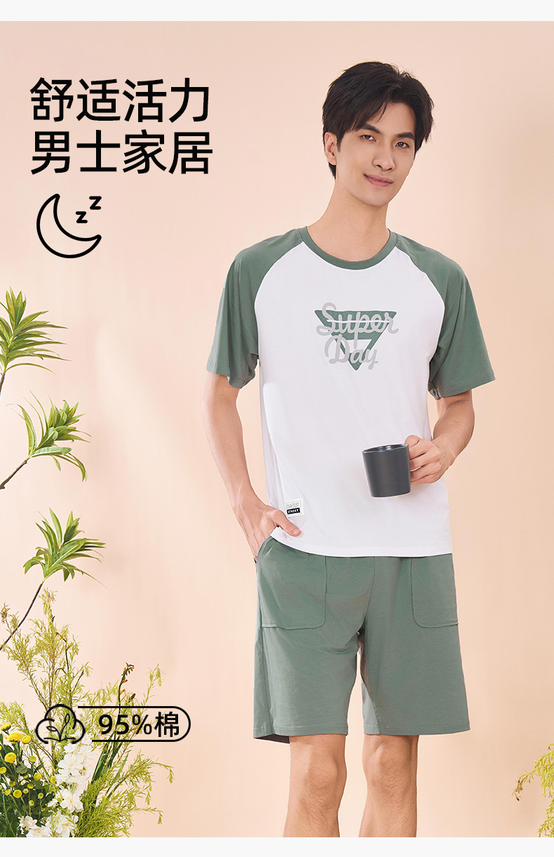 【商场同款】熳洁儿 男士家居服95棉男士短袖短裤套装休闲可外穿24203901