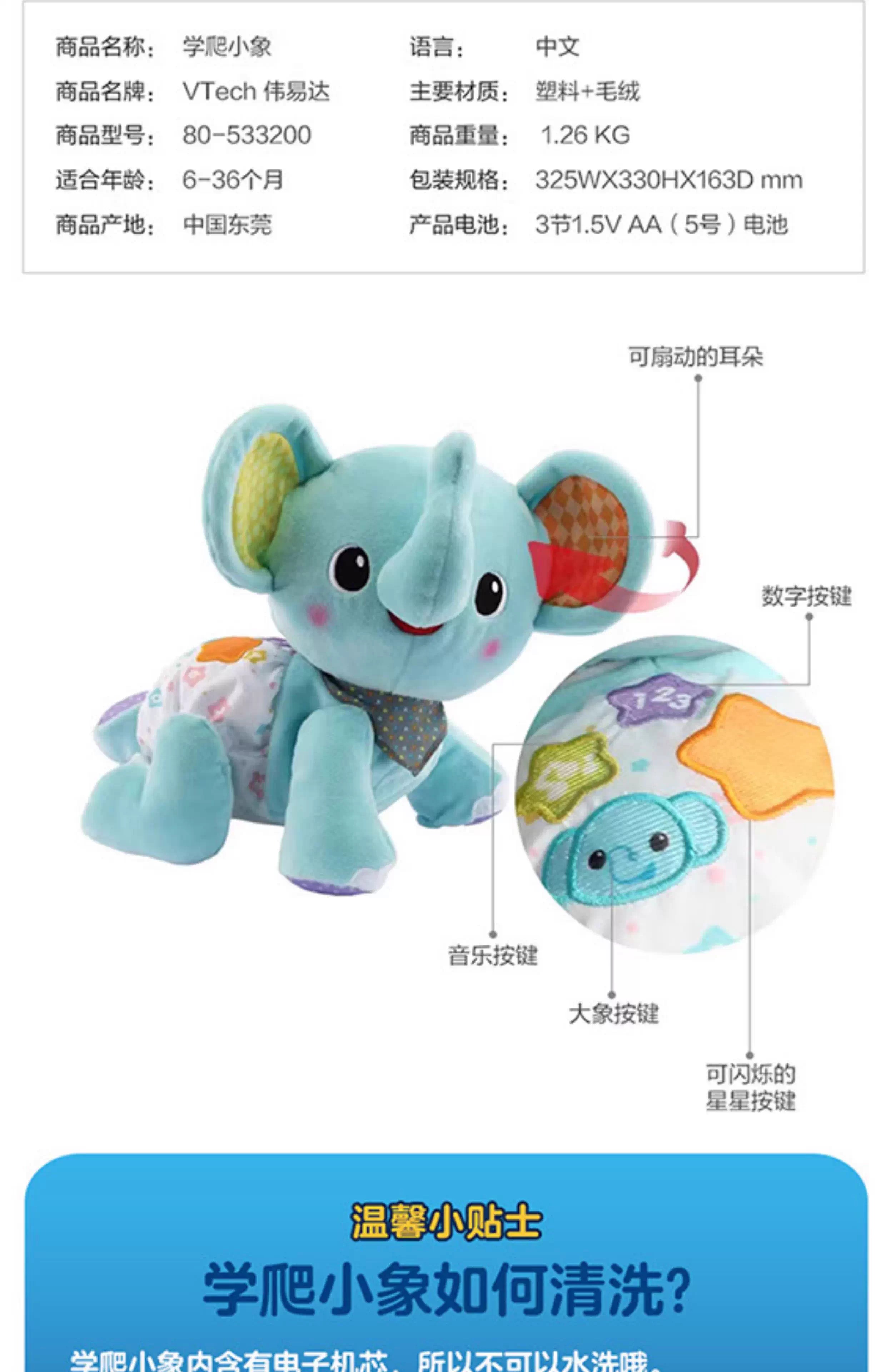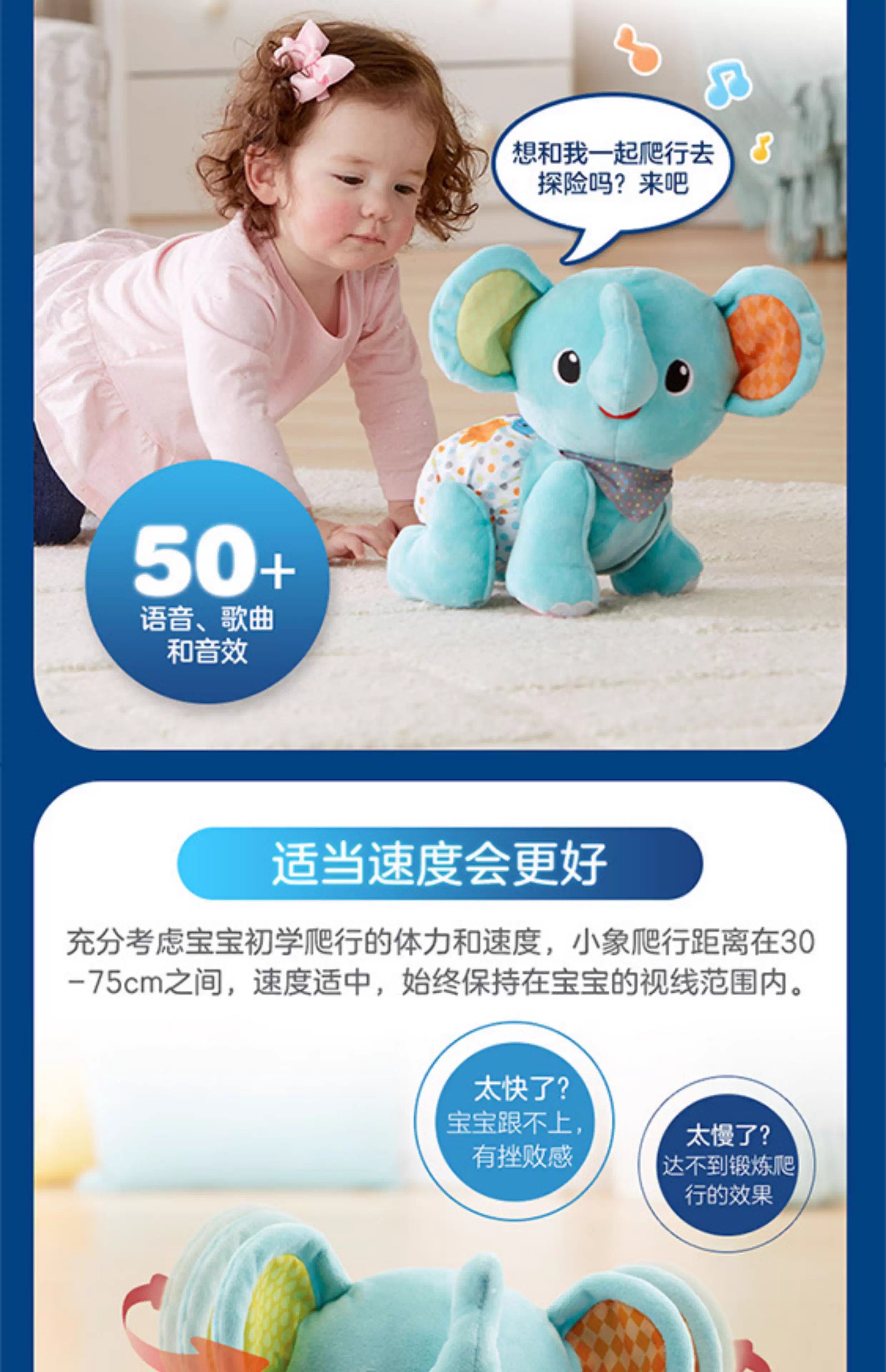 伟易达学爬小象婴幼学爬行引导玩具宝宝玩偶早教音乐知识语音互动
